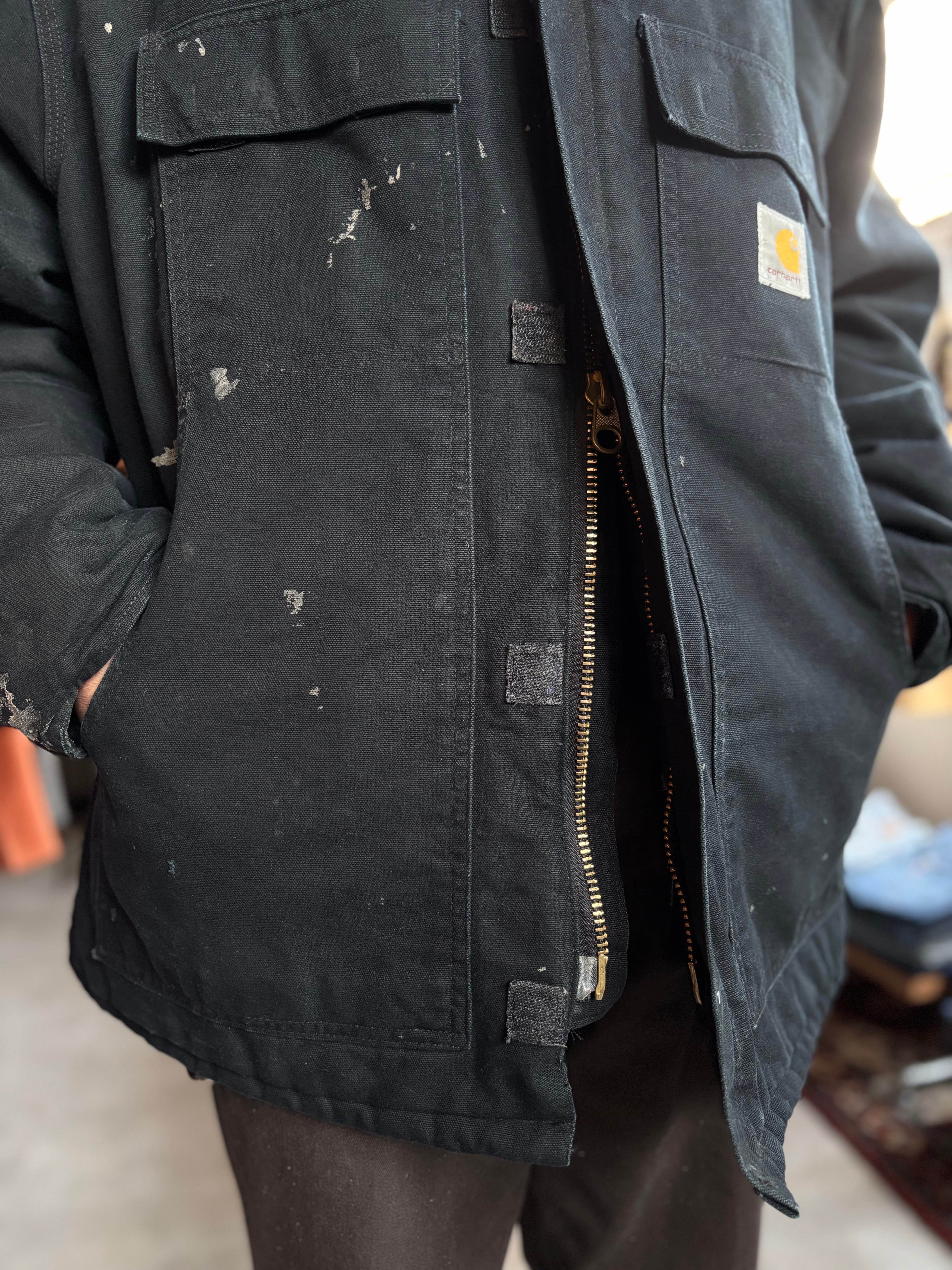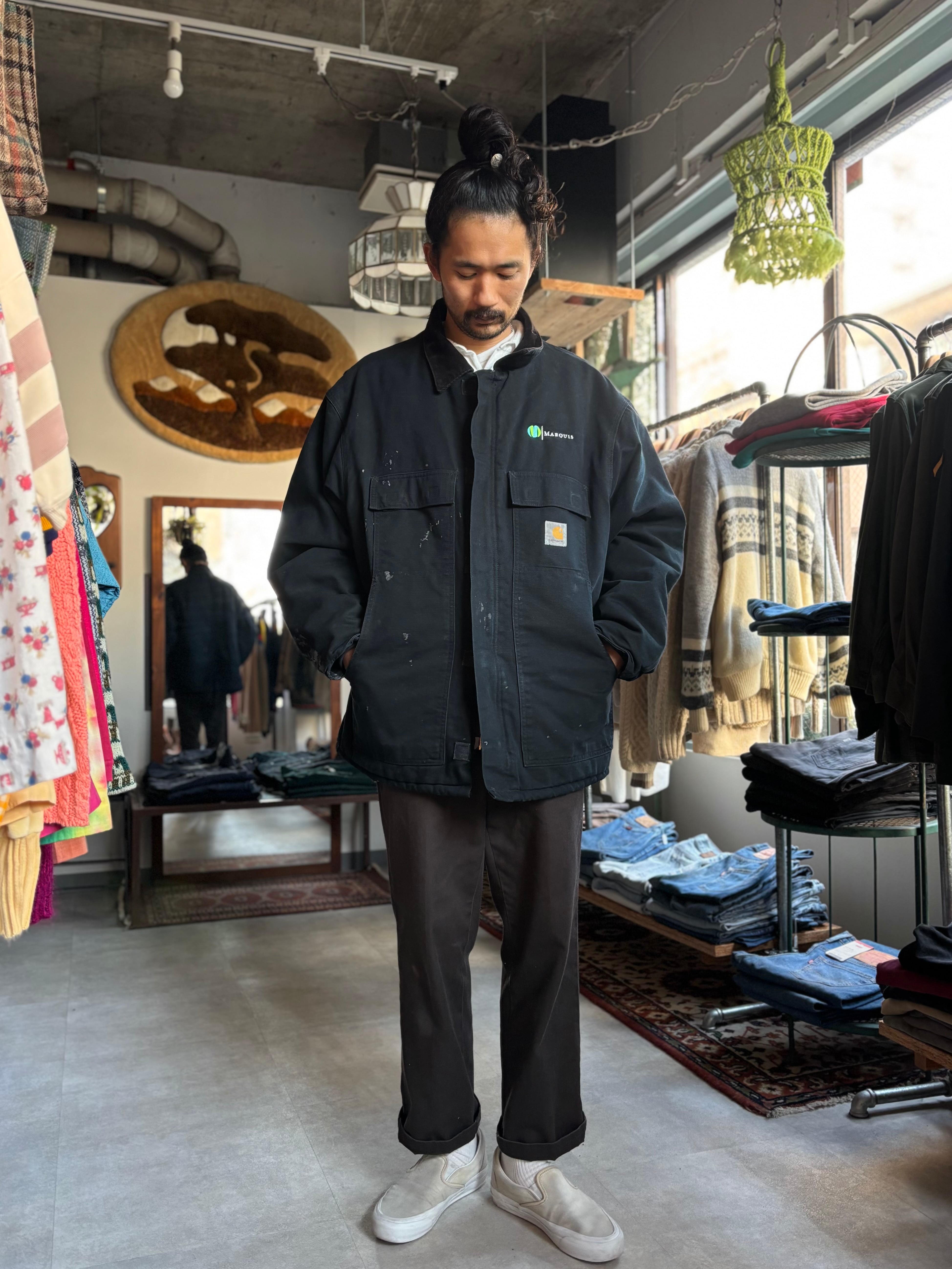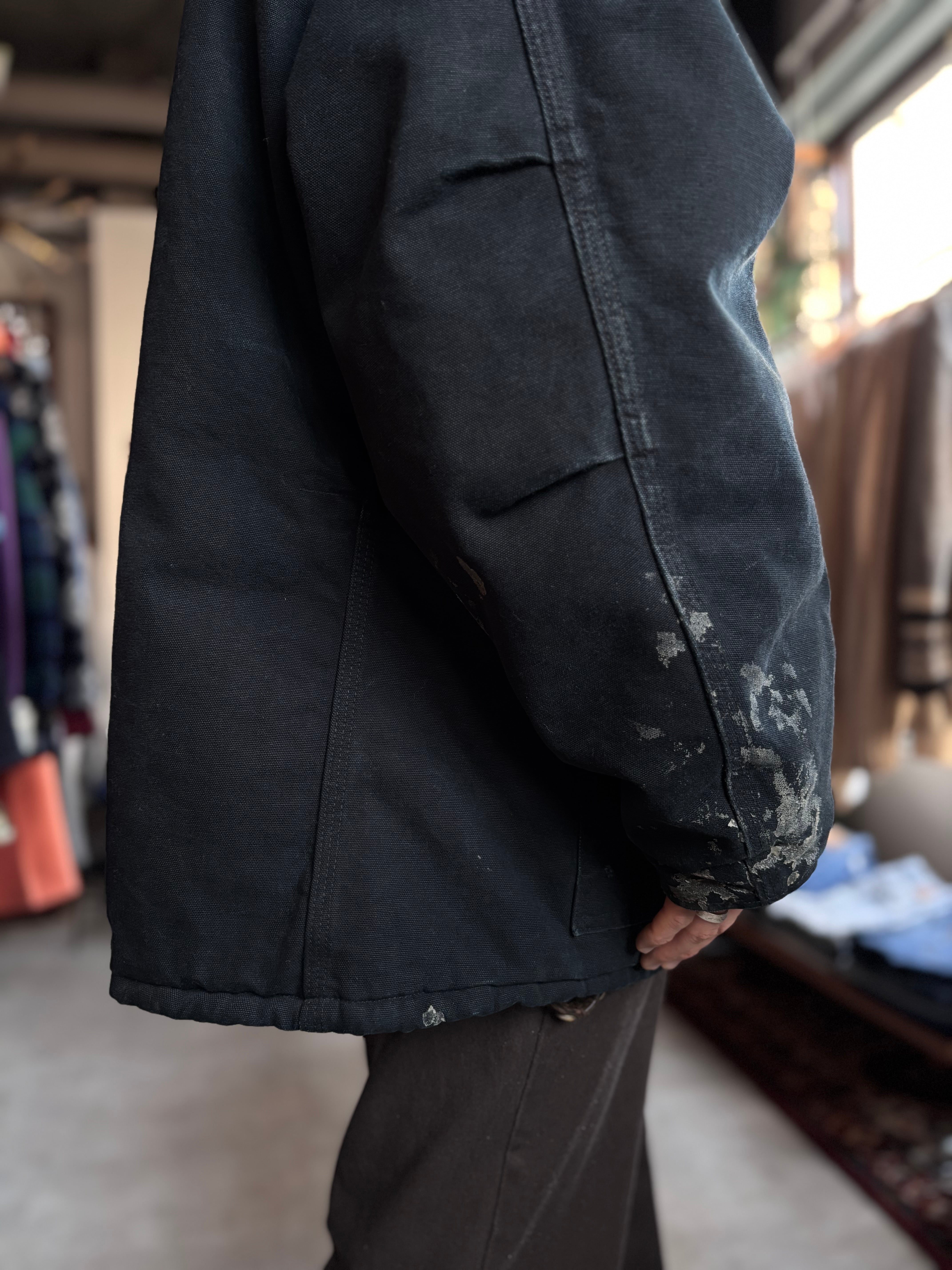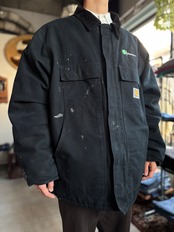 厚手のダック素材。リラックスフィット。00s USA製 2XLのトラディショナルコート。企業ロゴに、塗料飛びなどカーハートらしさの詰まった良い仕上がりです。