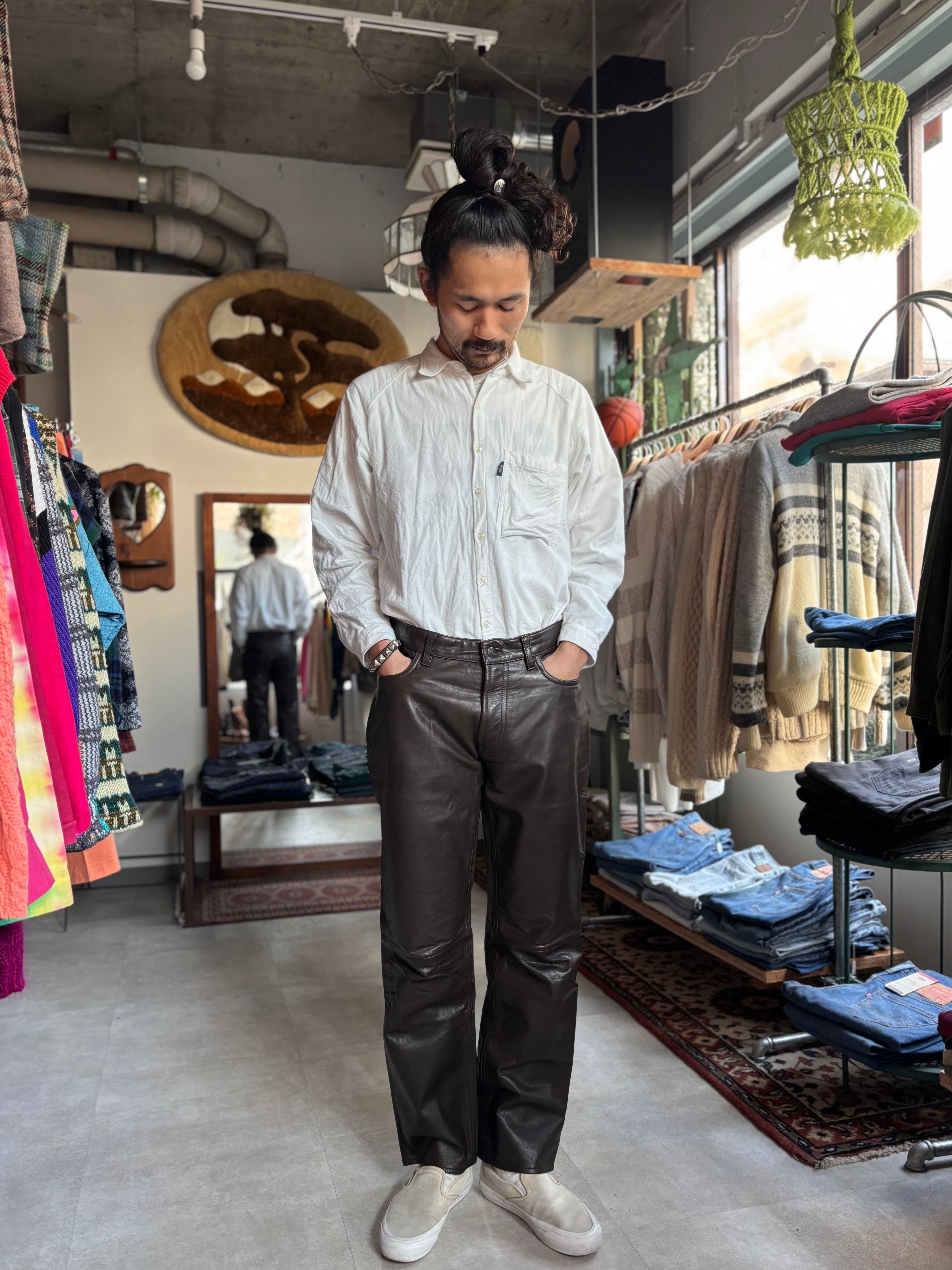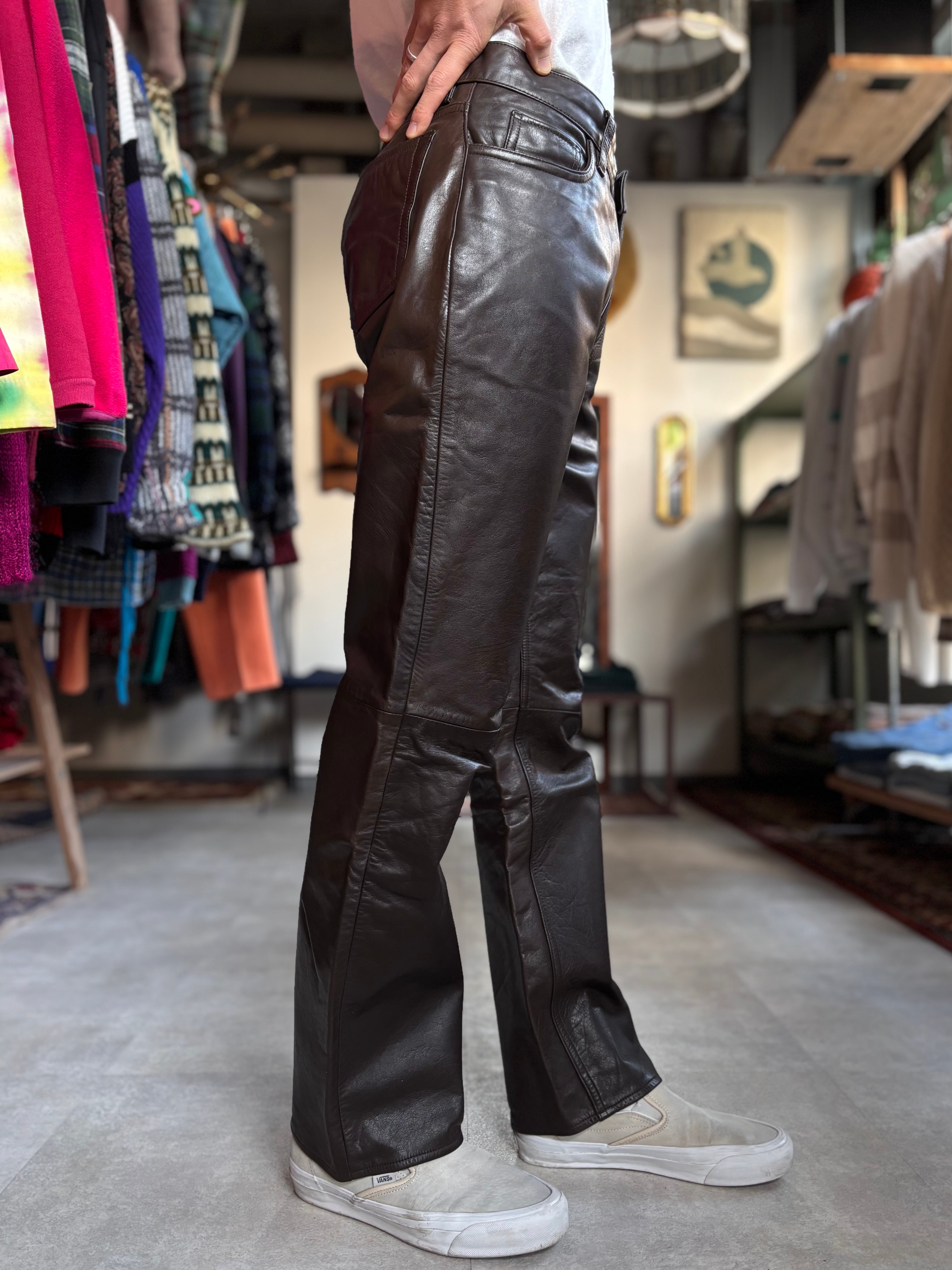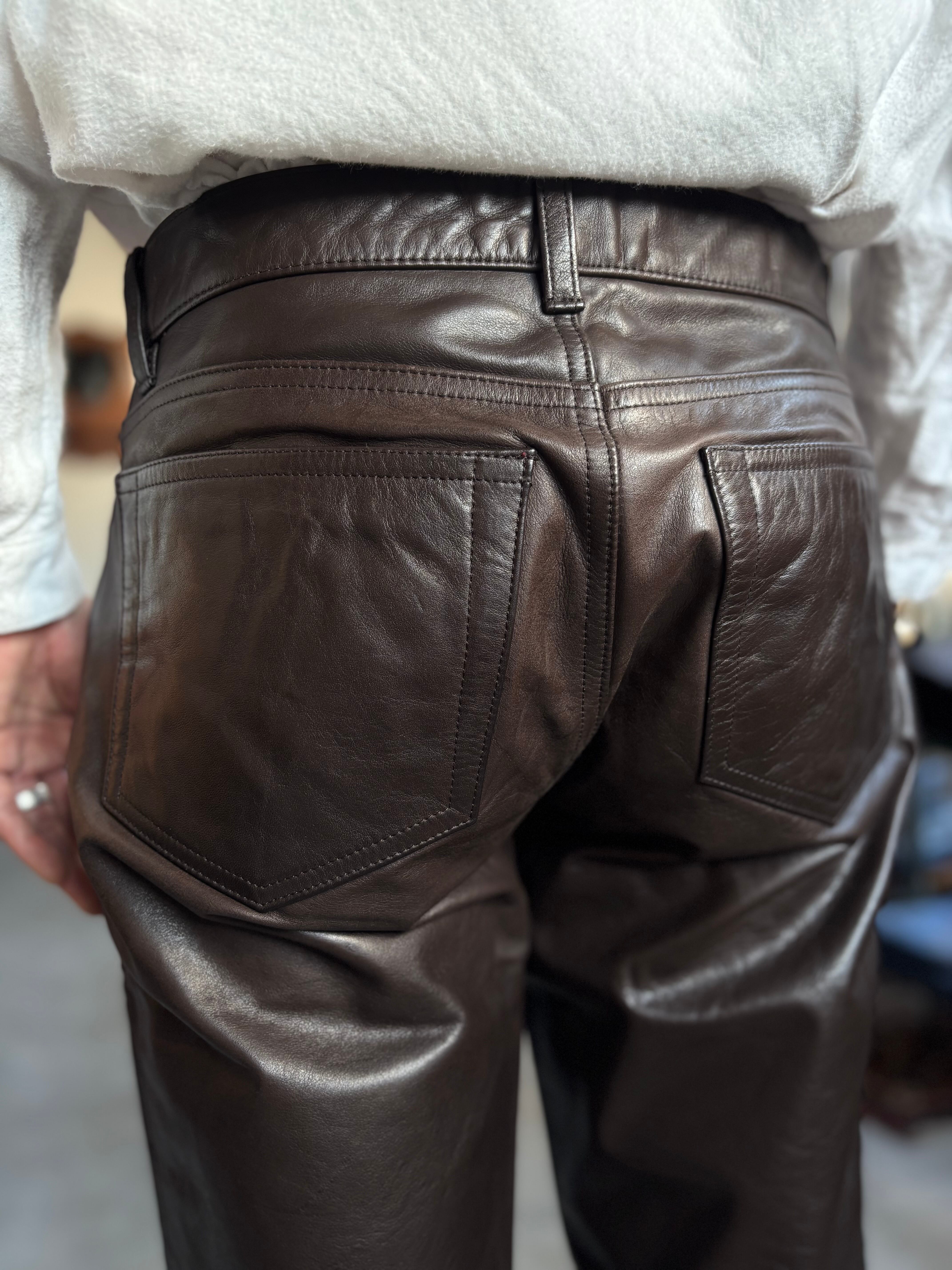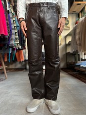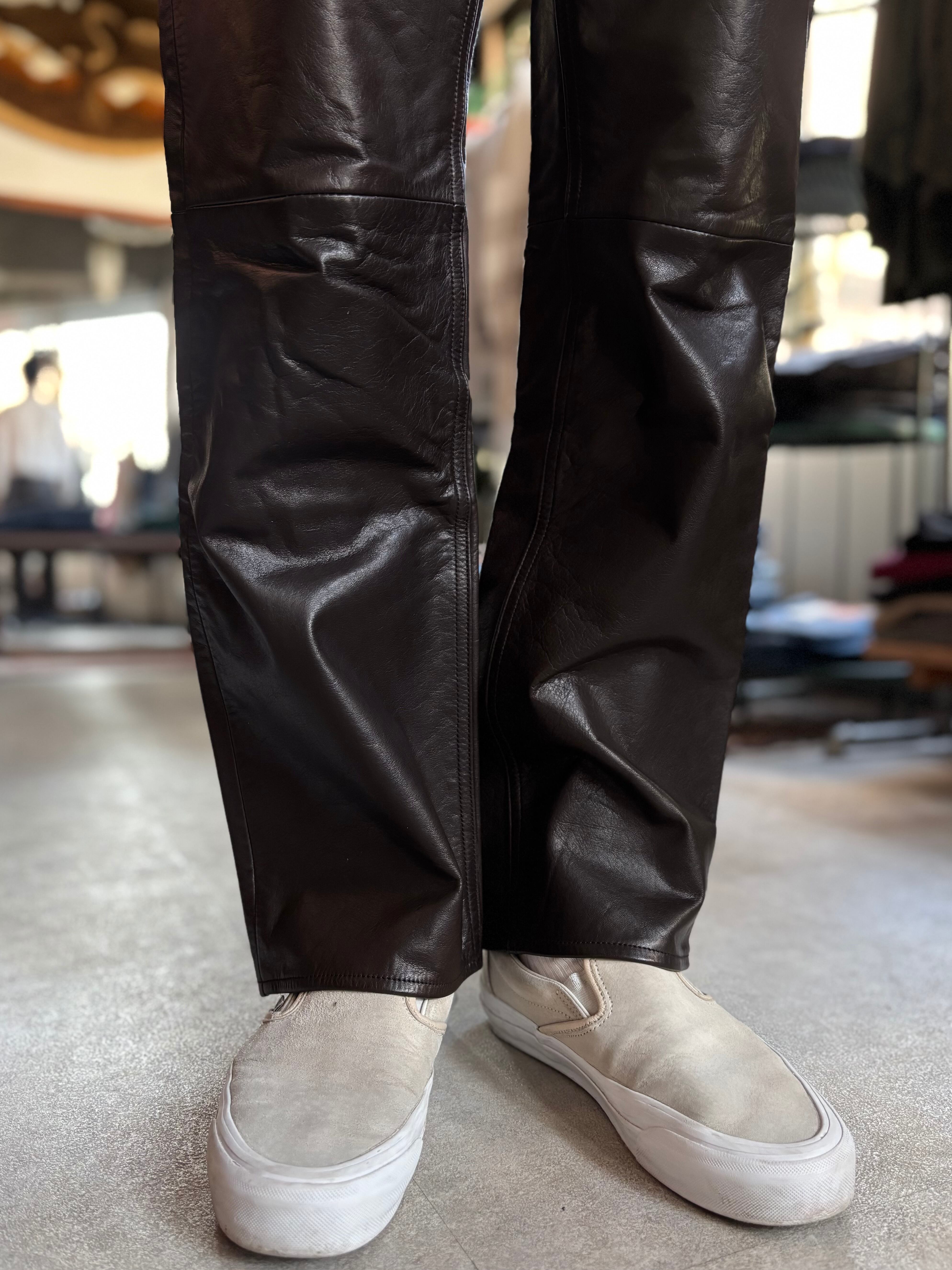 上質なブラウンレザー。中太ストレートシルエット。カジュアルに使い易いレザーパンツです。