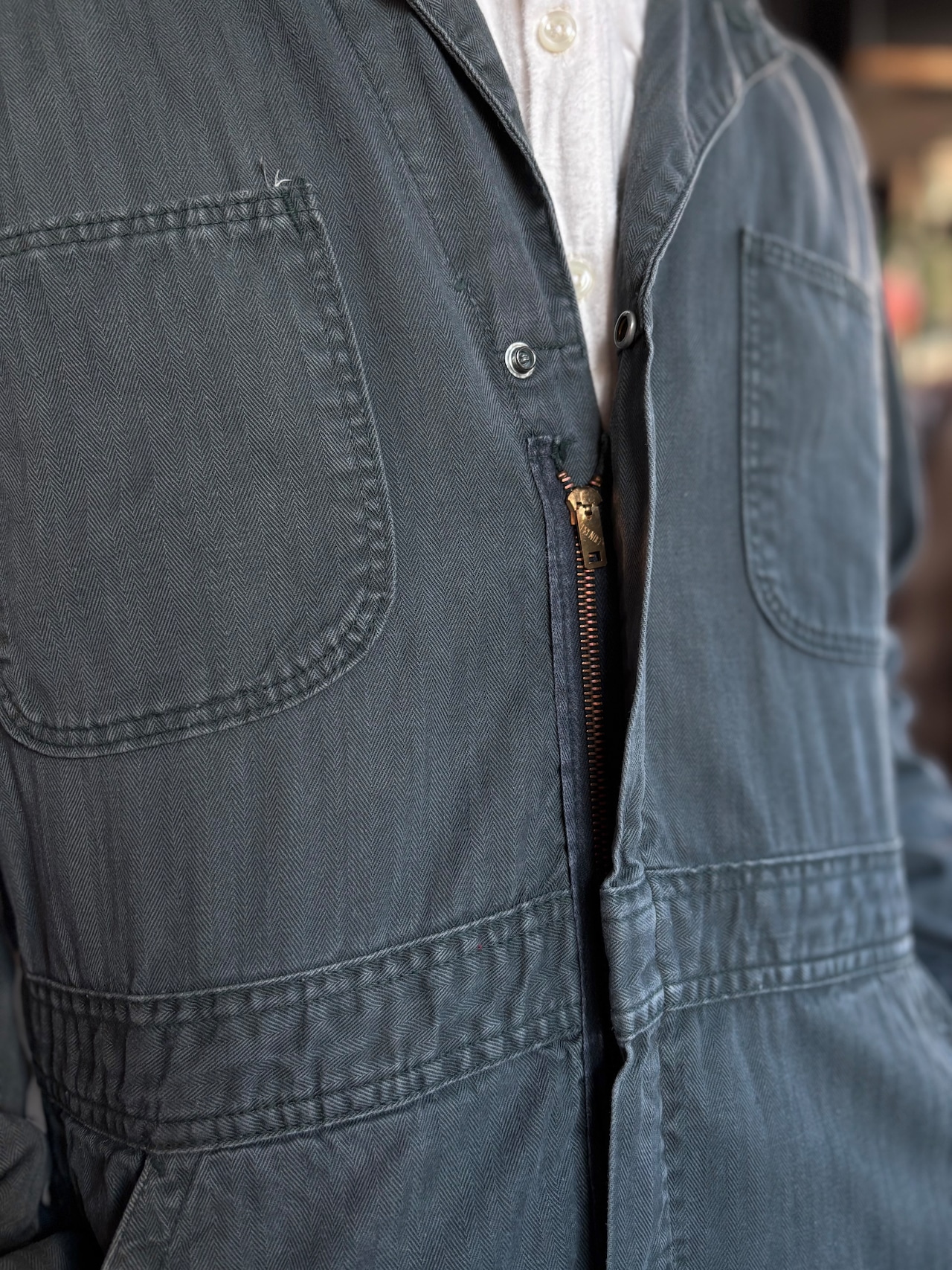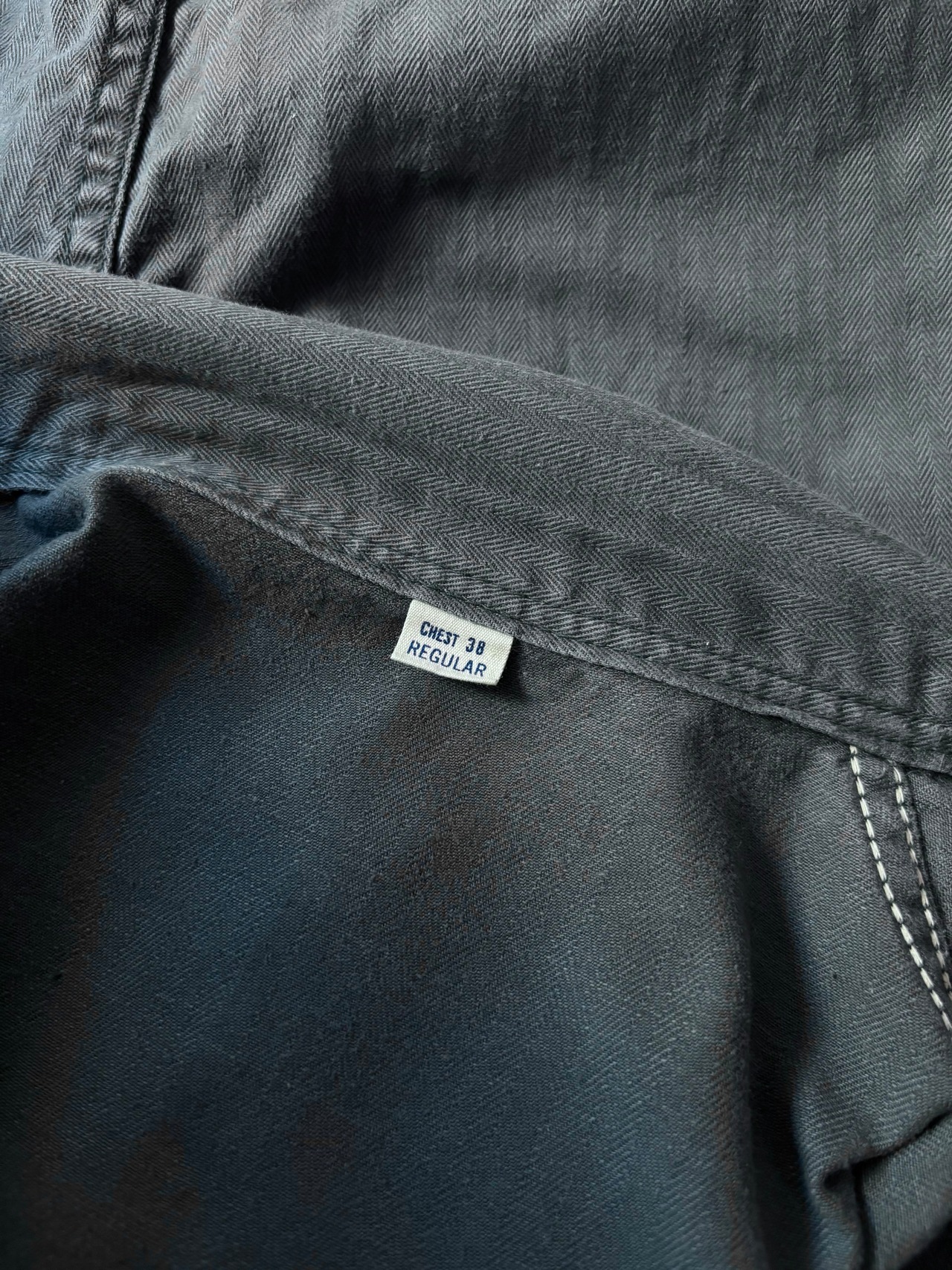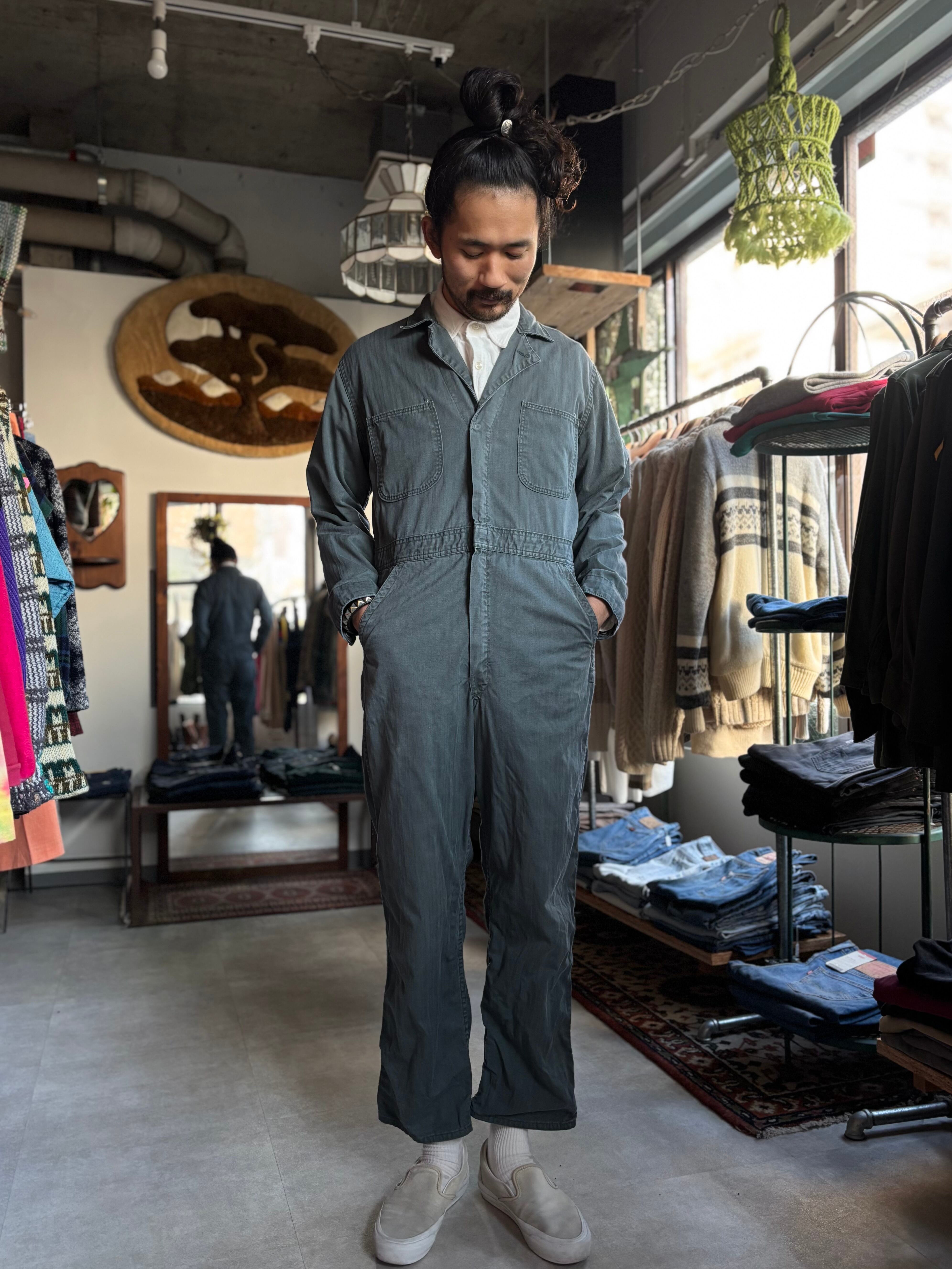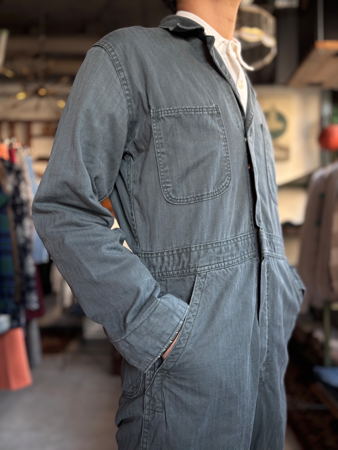 厚手のヘリンボーンツイル素材。ジャストめのフィット。60s~early 70sモデル。体感ですが、175cmまでの方に適正サイズです。