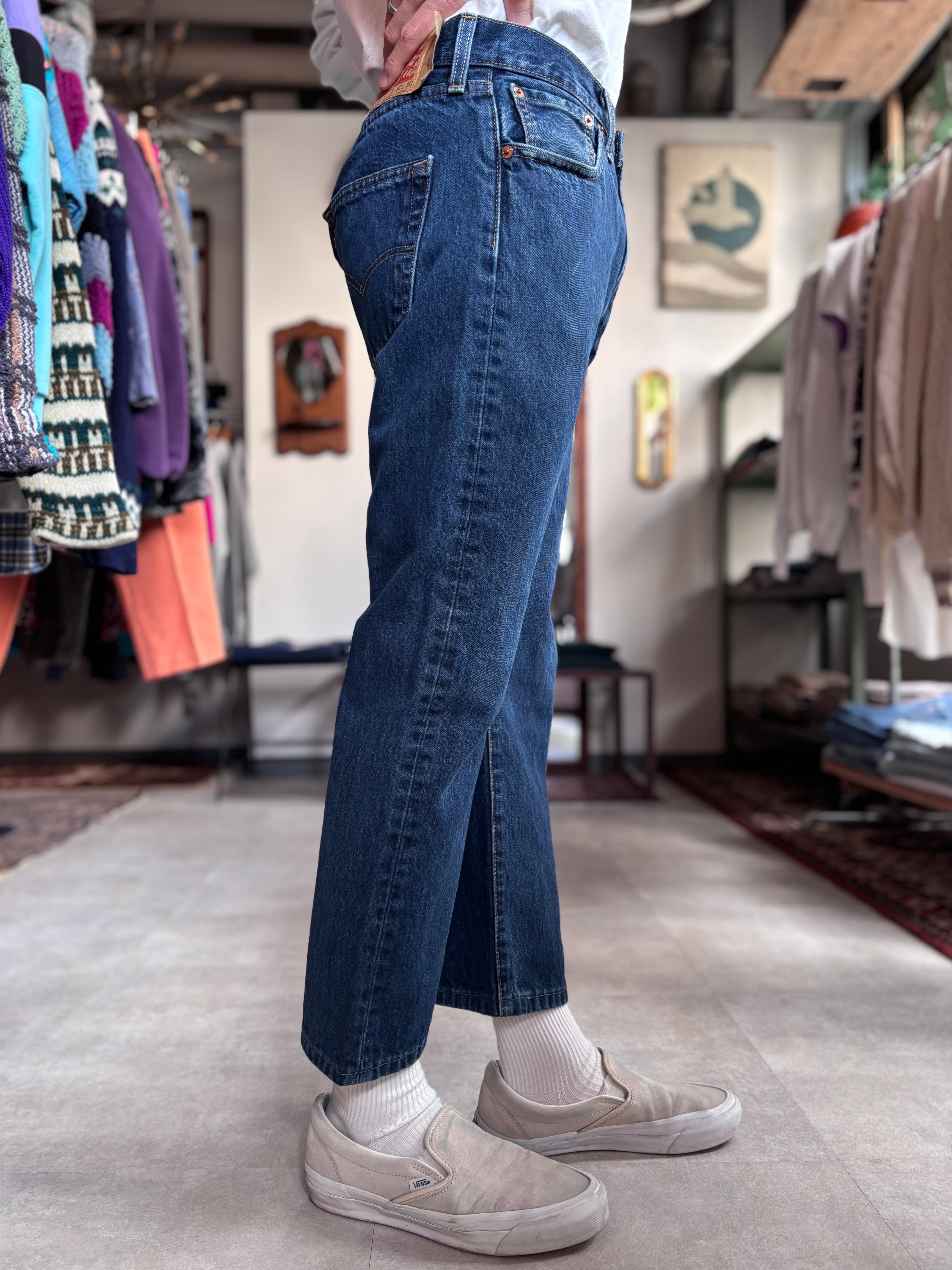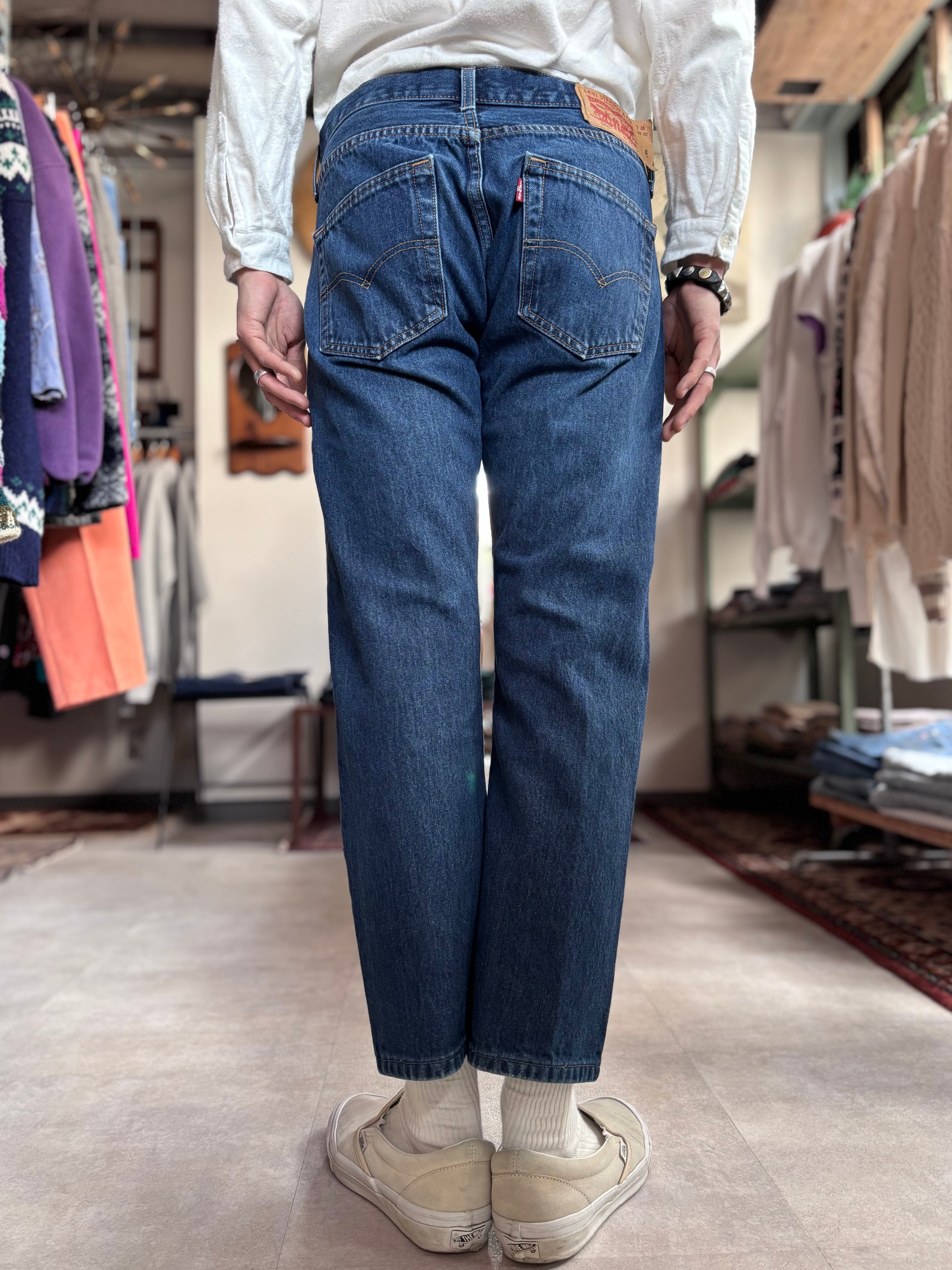 ブルーデニムカラー。股上、シルエット共に補正されています。独特のお洒落感があり、いつもと違った着こなしを楽しめると思います。