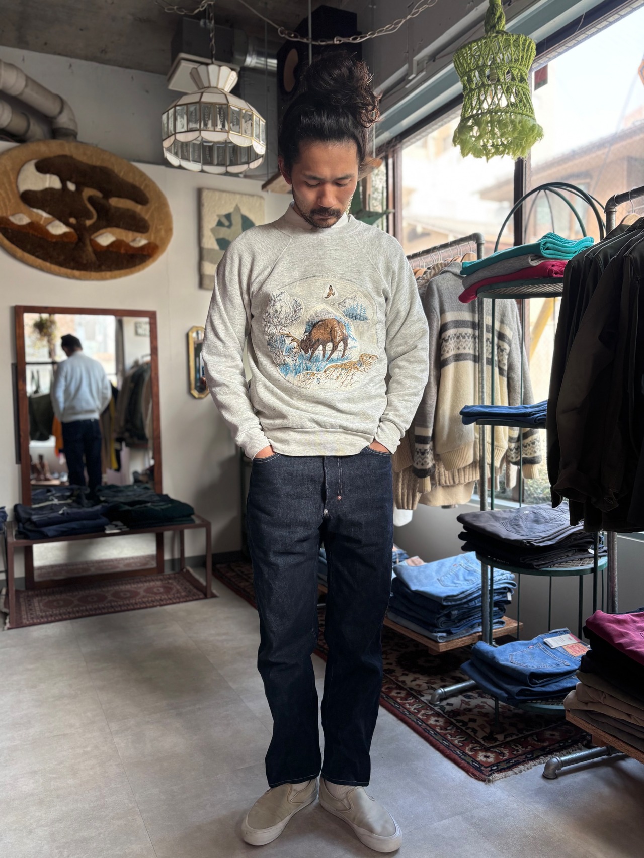 (あくまで中古衣料ですので、記載していない小穴や小傷などがある場合がございますが、ヴィンテージ衣料の風合いとして捉えて頂ける方のご購入をお願い致します。)