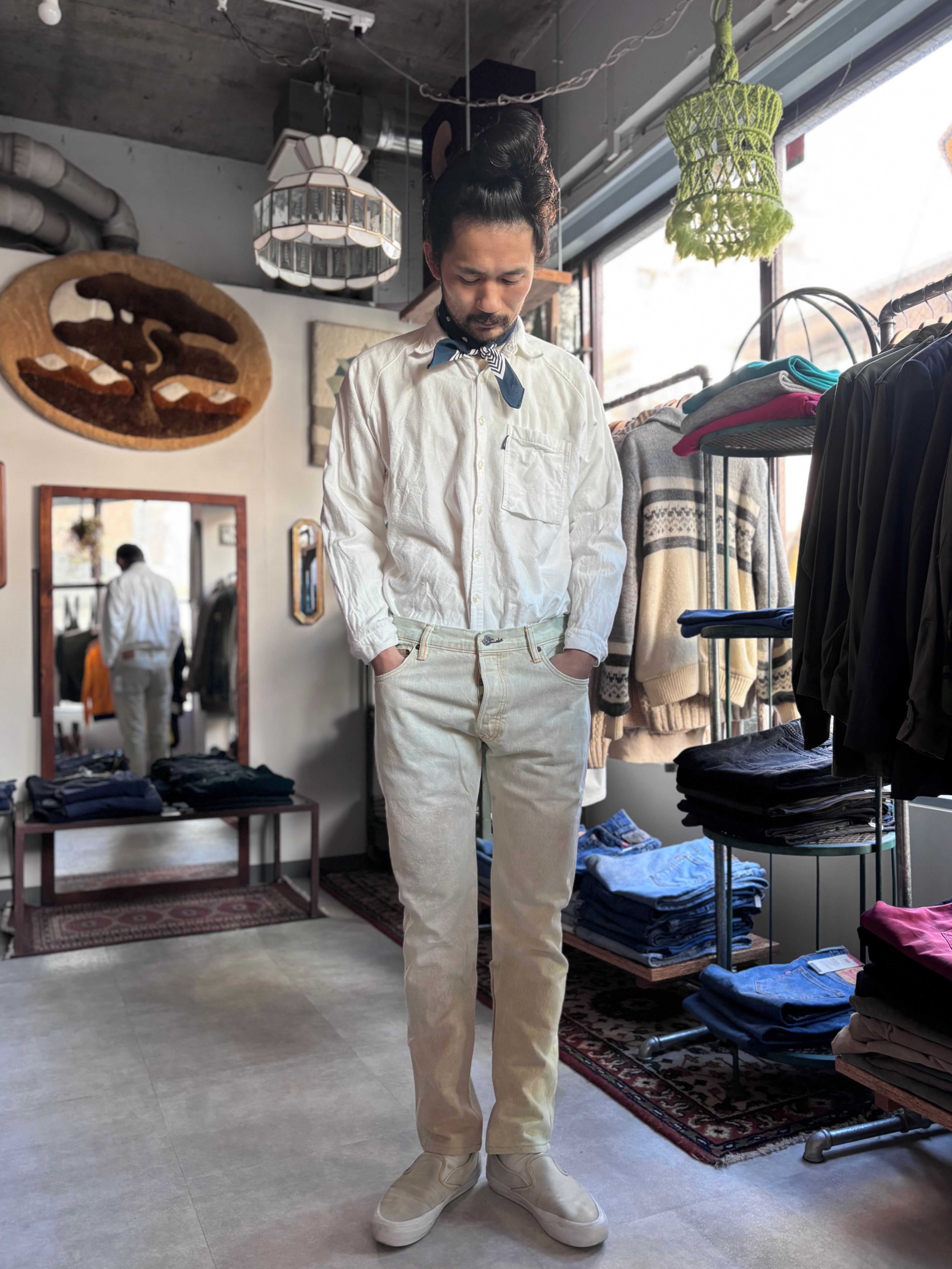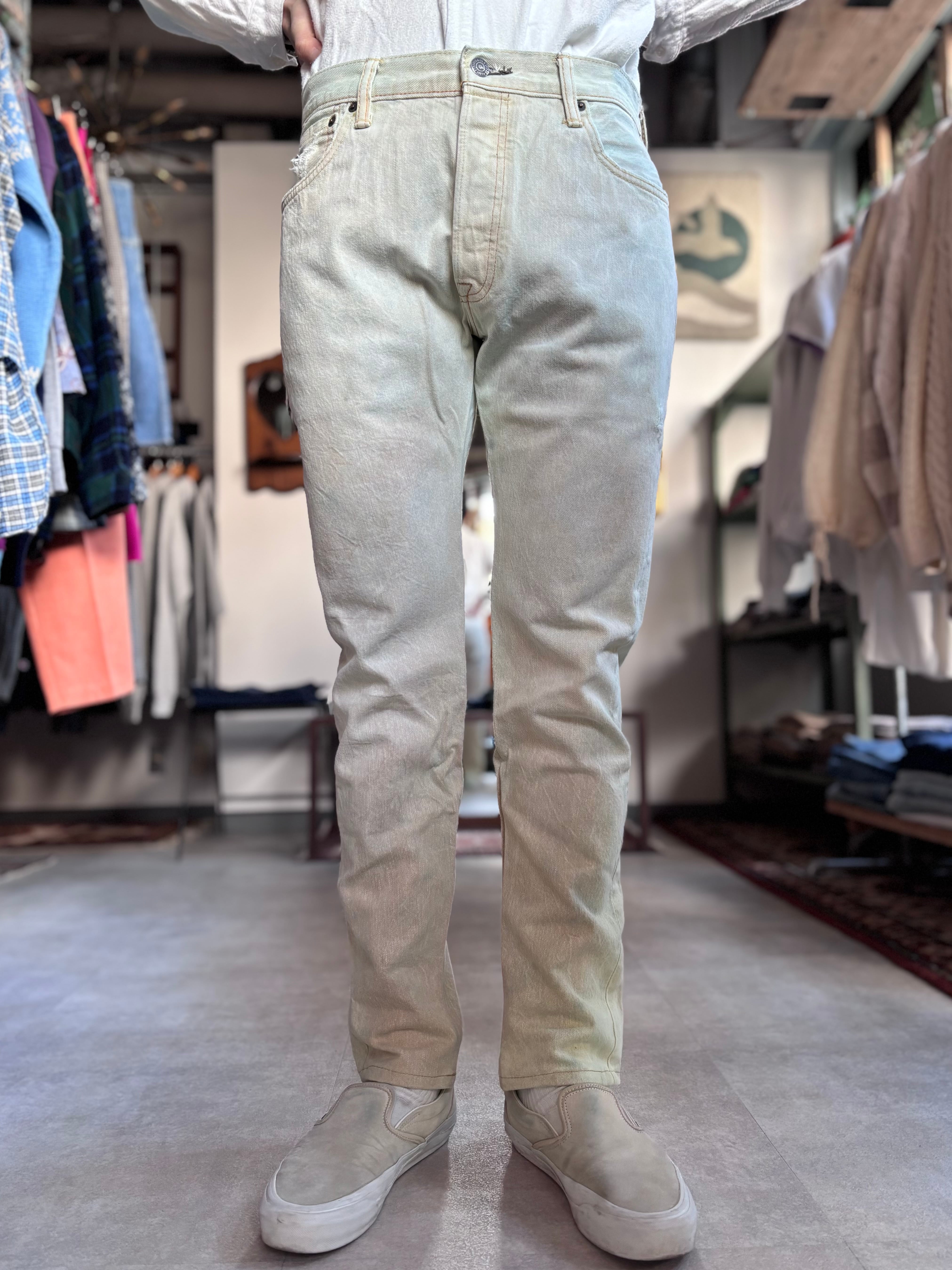 Beagleオリジナル。USEDの501をブリーチし、テーパードカスタムしたもの。クリーンかつパンキッシュな着こなしにハマります。