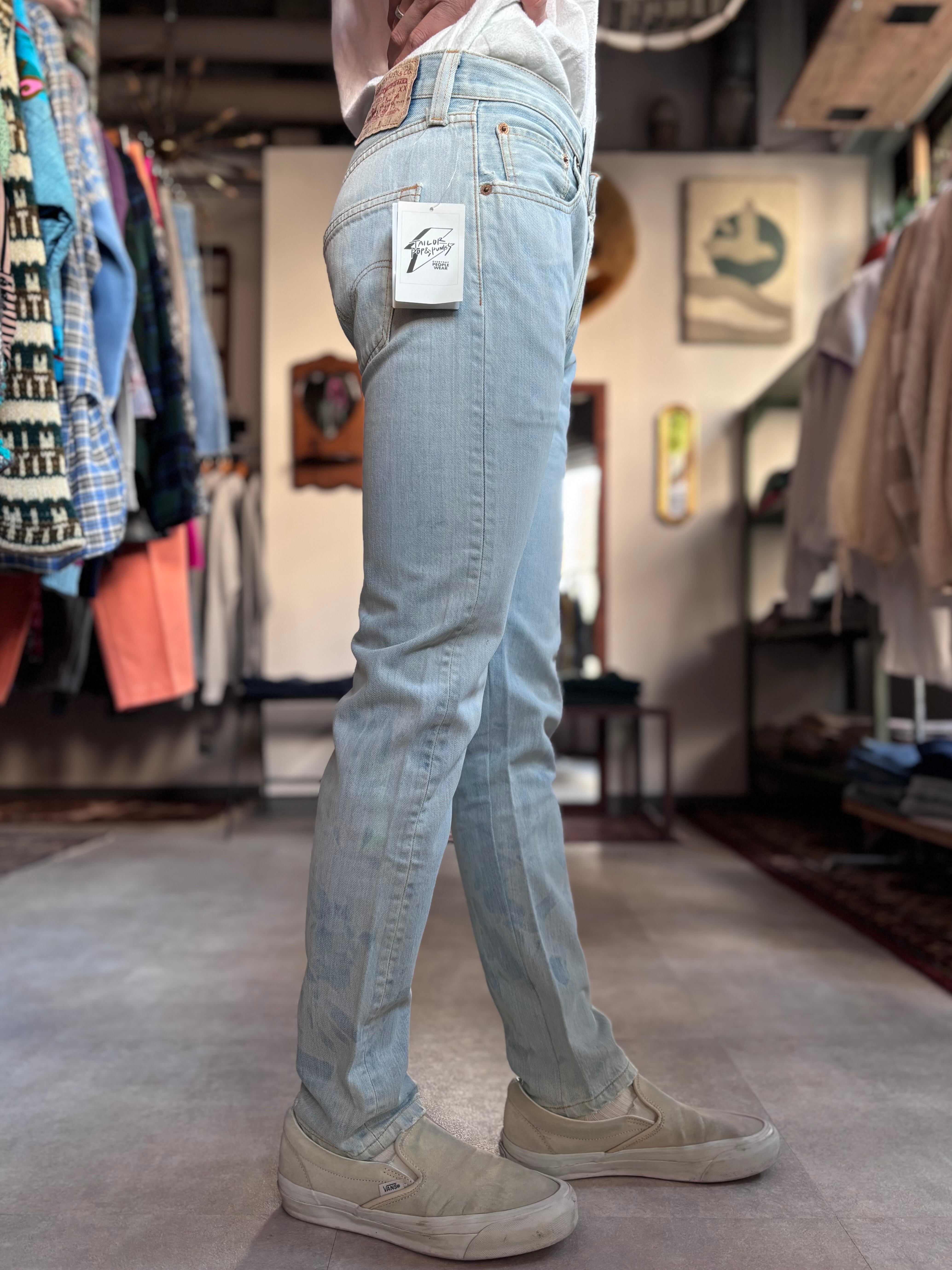 Beagleオリジナル。USEDの501をブリーチし、テーパードカスタムしたもの。クリーンかつパンキッシュな着こなしにハマります。