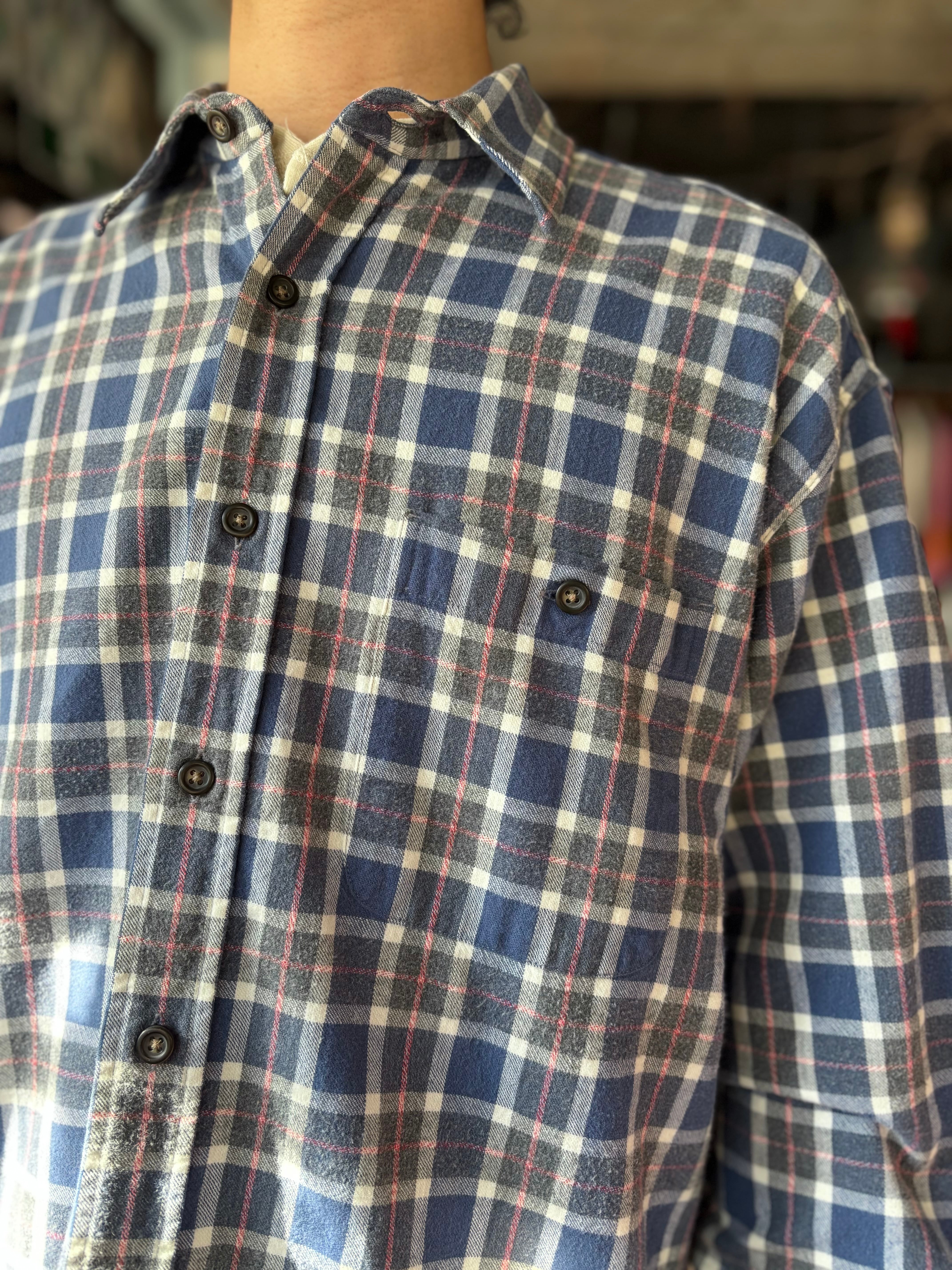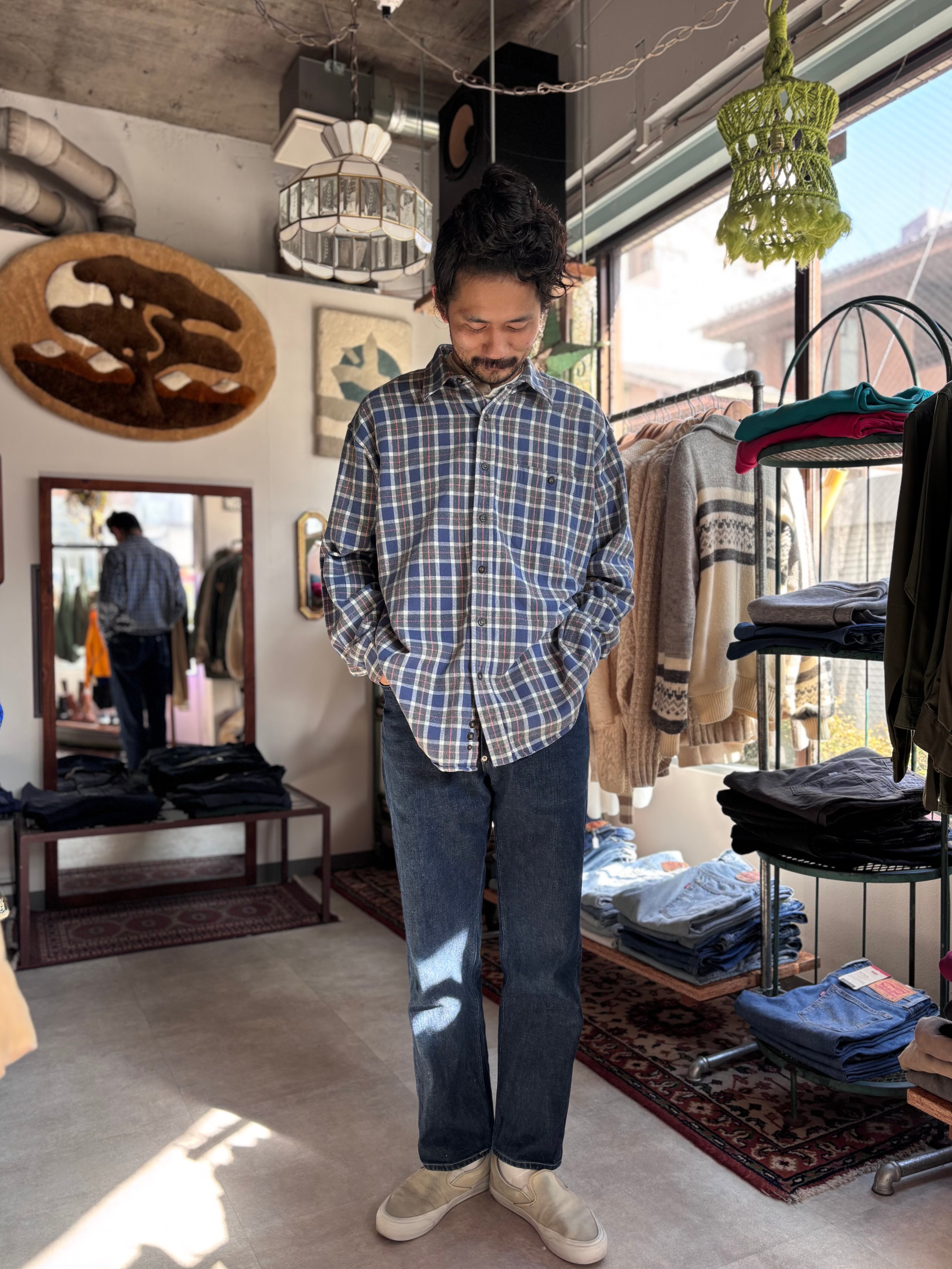 ライトフランネル素材。リラックスフィット。白タグ。自然な印象のブルーグレーカラーです。