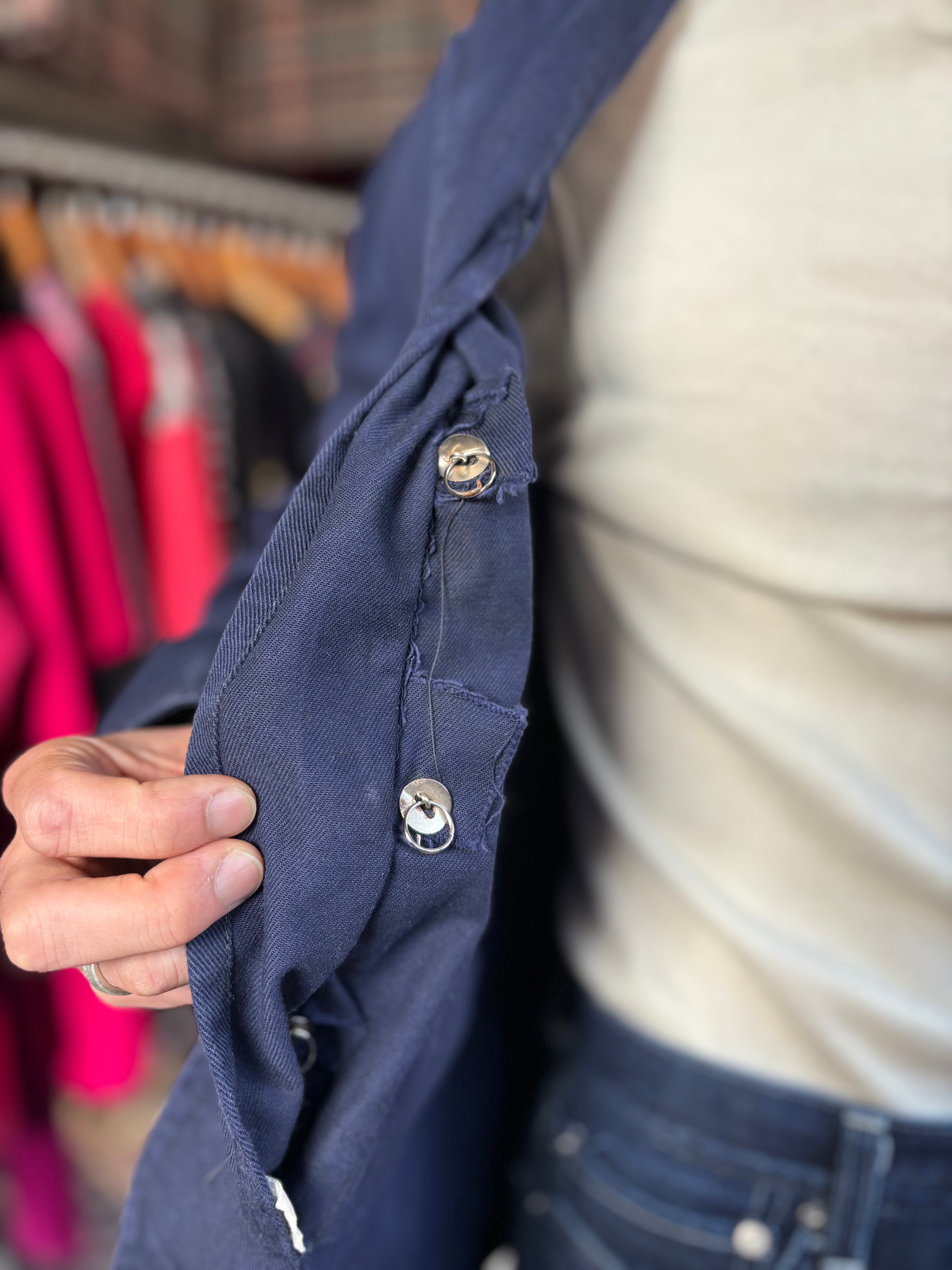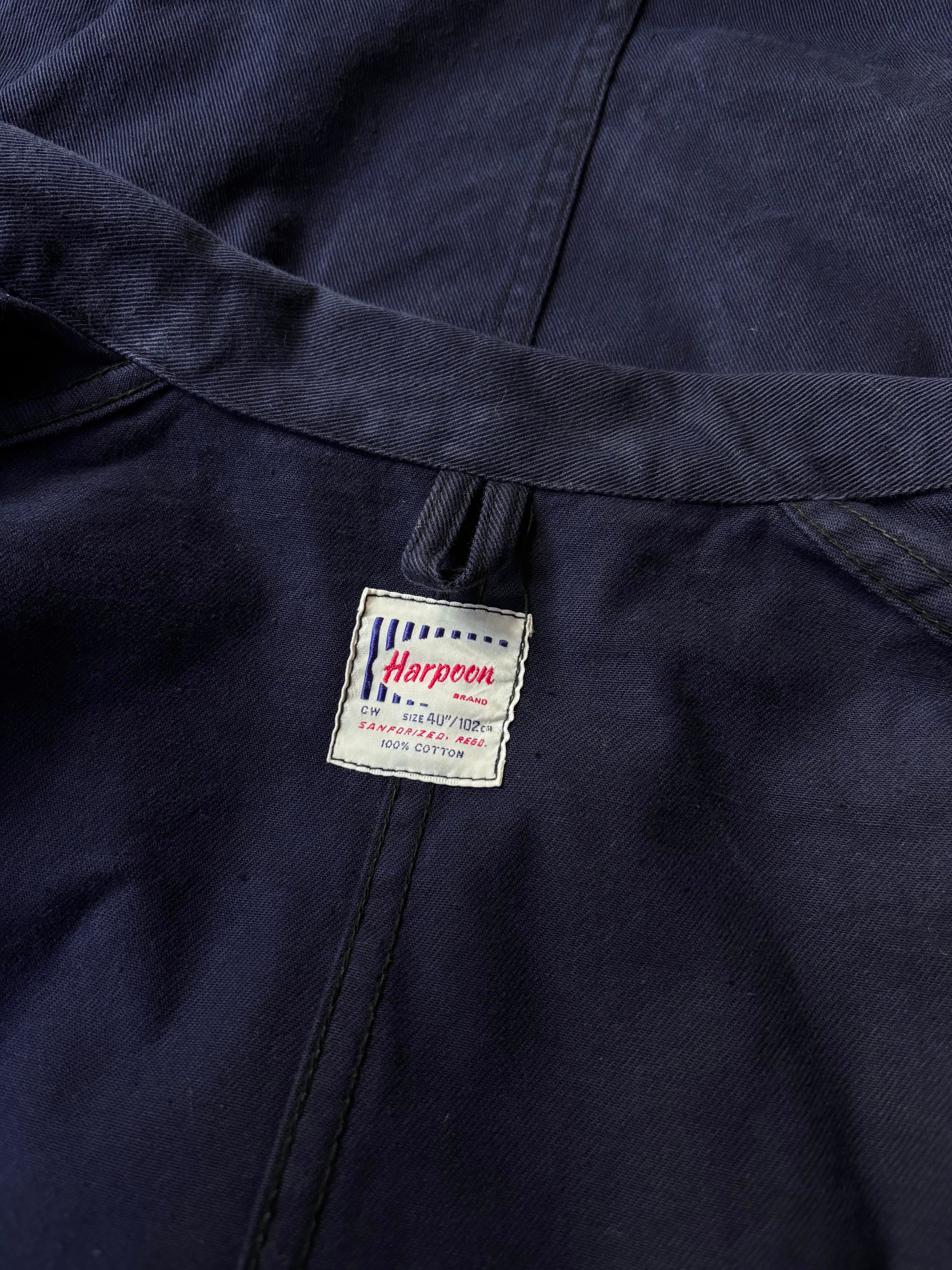 厚手のコットンドリル生地。オーセンティックフィット。チェンジボタン仕様。前に振るタイプの袖。イギリスのHARPOON製です。