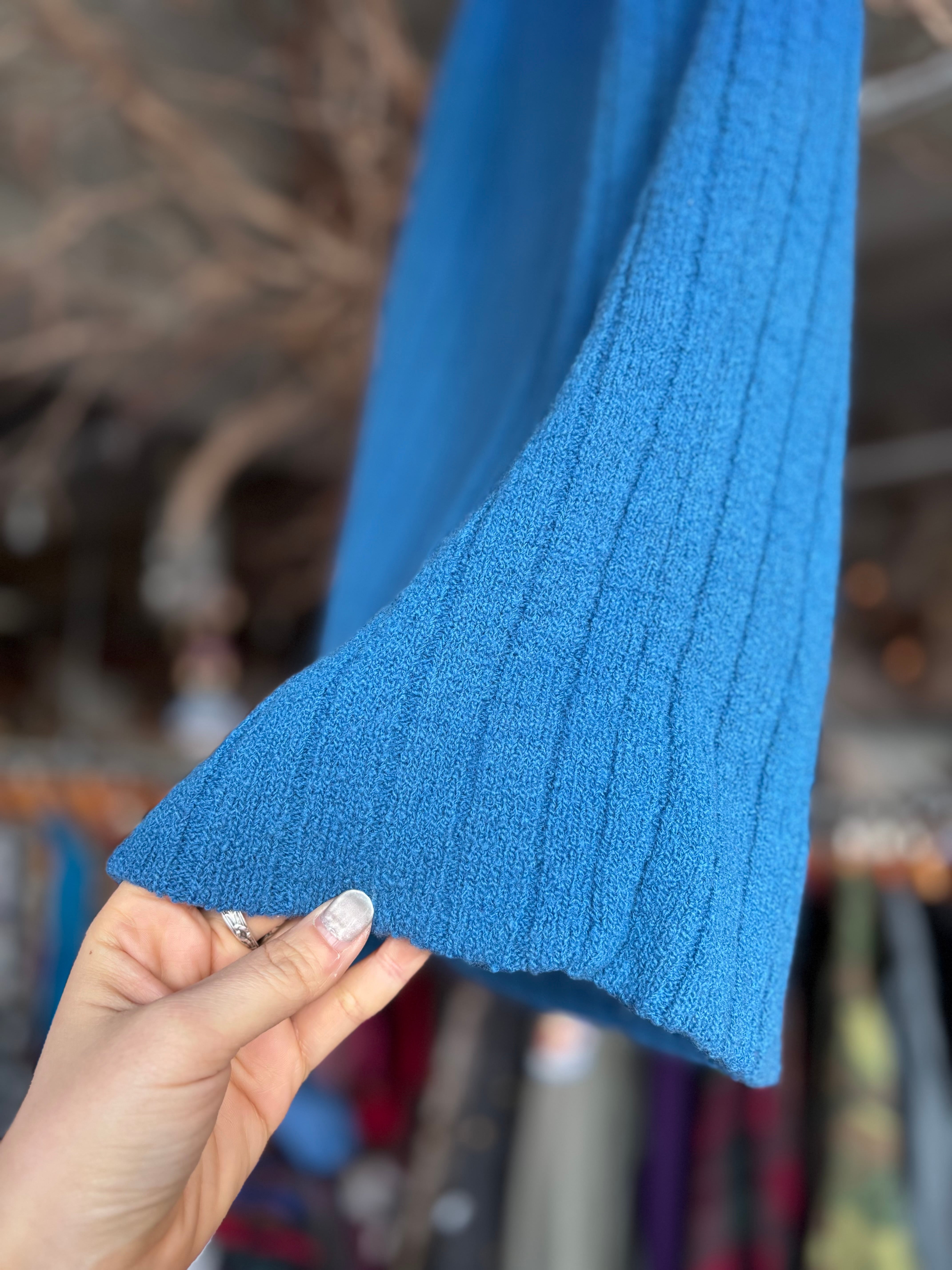 伸縮性のあるパイル生地。縦に走るリブと、裾に向かってほんのり広がるシルエット。ウエストゴム仕様。ボーダーのトップスやシンプルなスウェットとの相性抜群です。