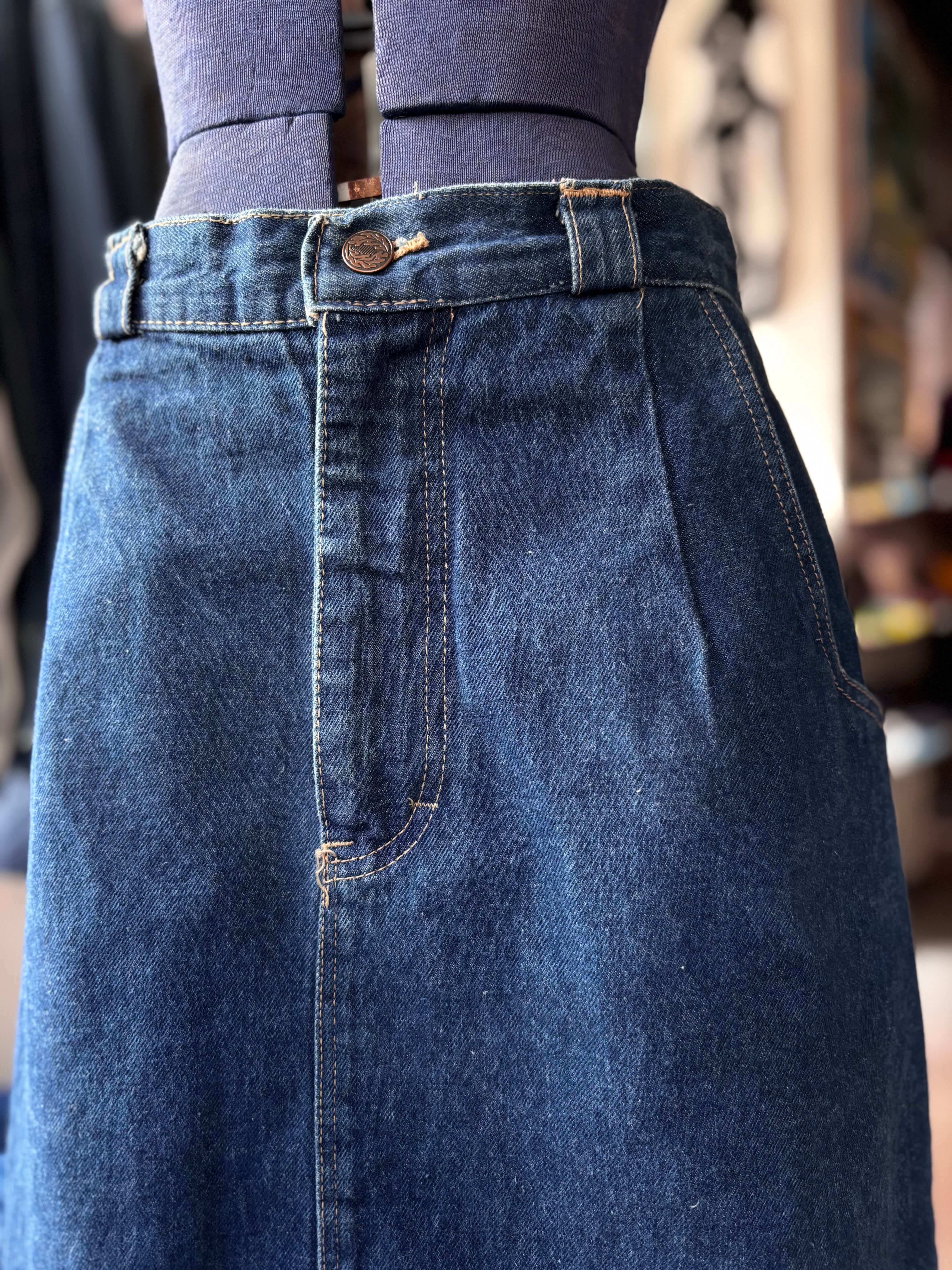 ブルーデニム生地。膝上Aライン。TALON42ジップ。