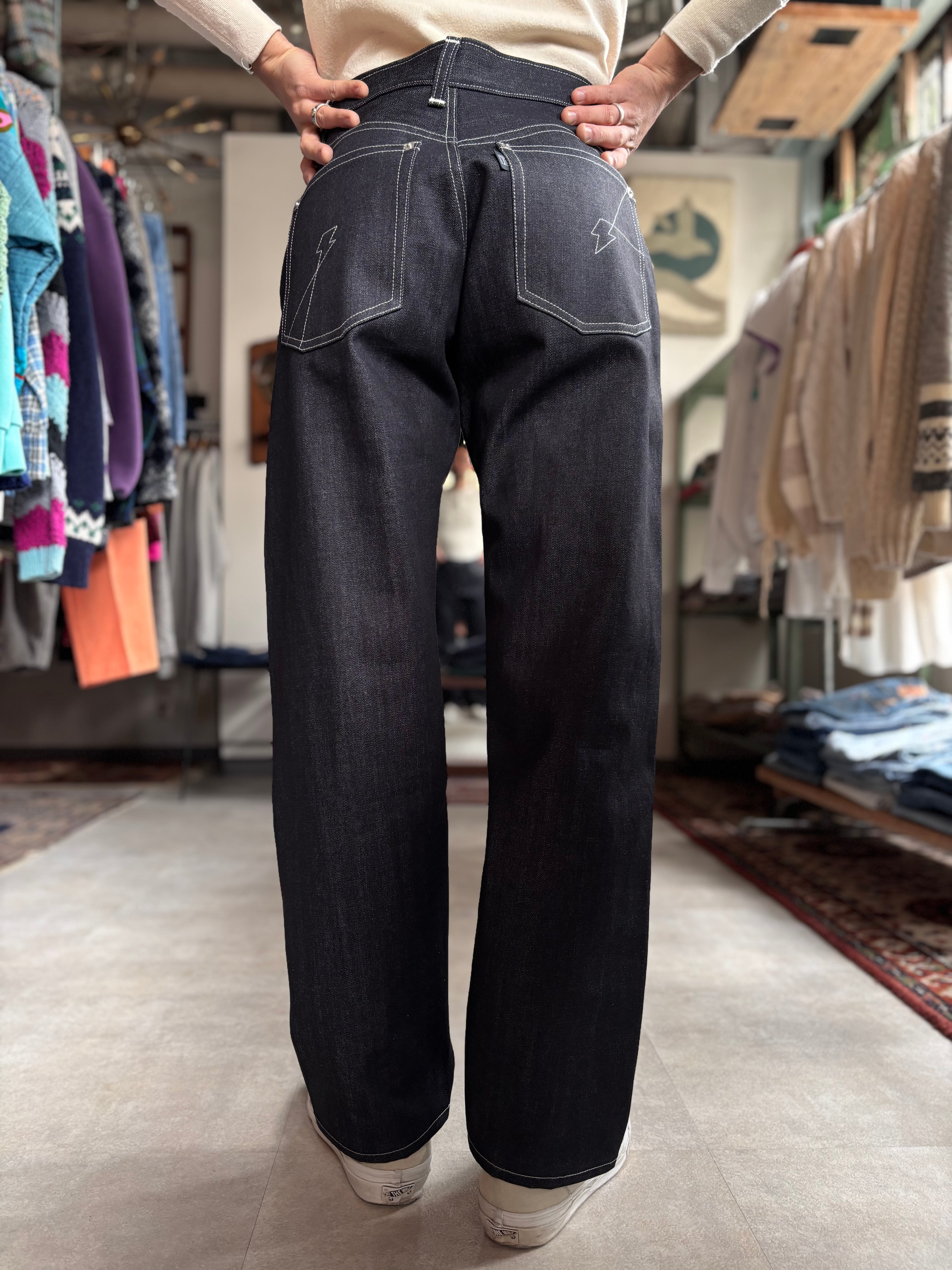 BEAGLEオーナーの希望から、TPP( TAILOR POP & PUNKS )を象徴する稲妻をバックポケットの飾りステッチに採用。