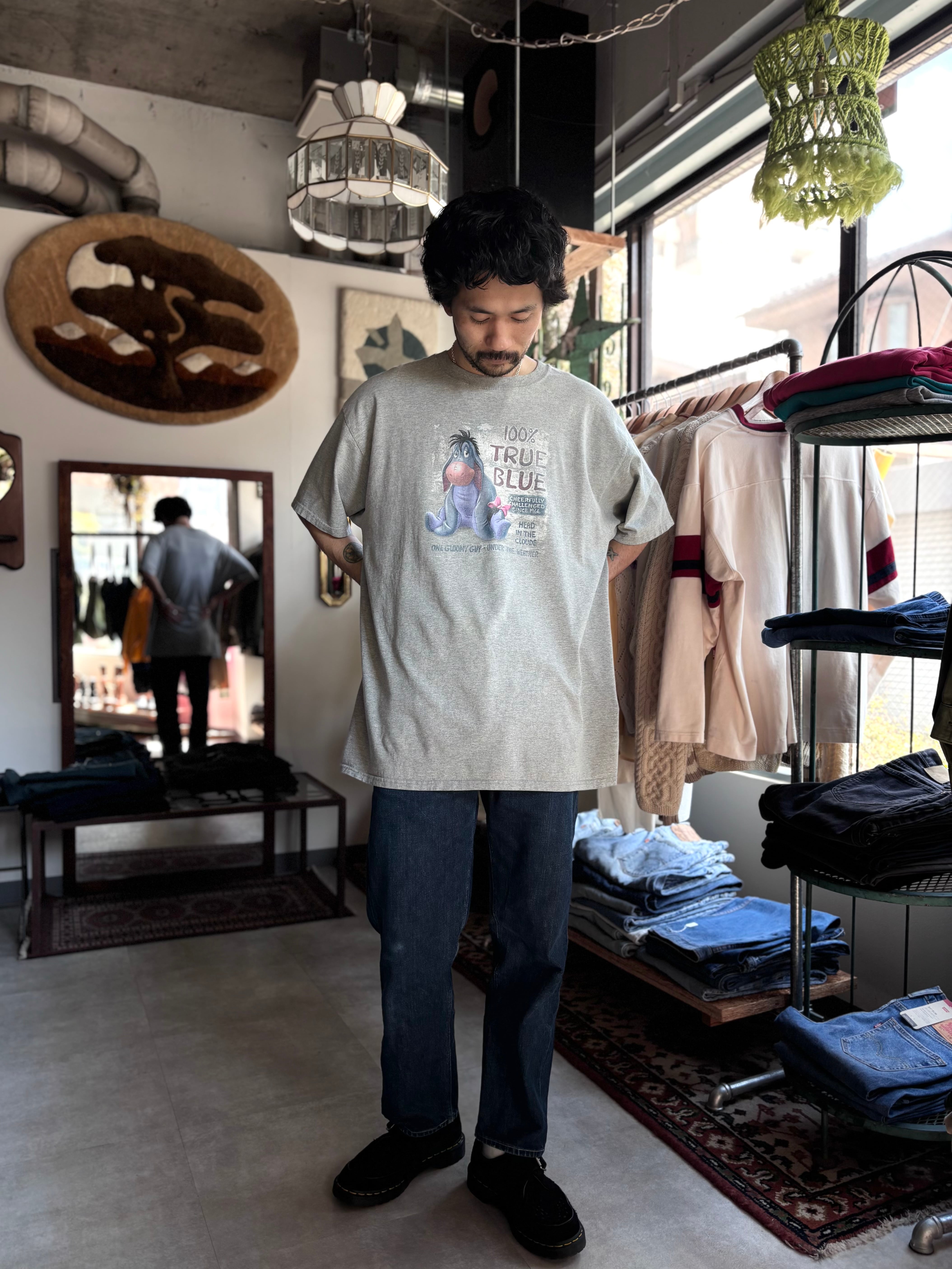 コットン素材。リラックスフィット。プリントがかすれて良い風合いになっています。