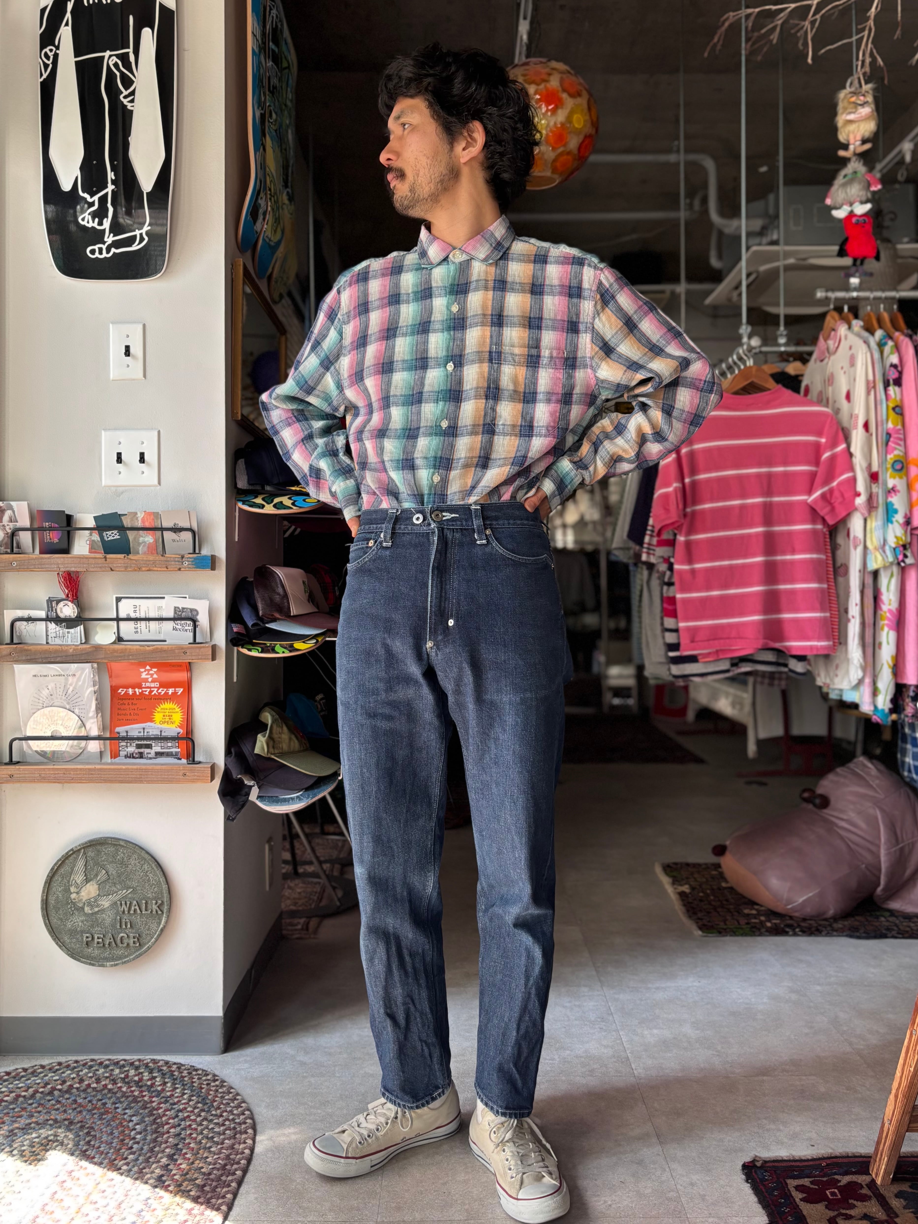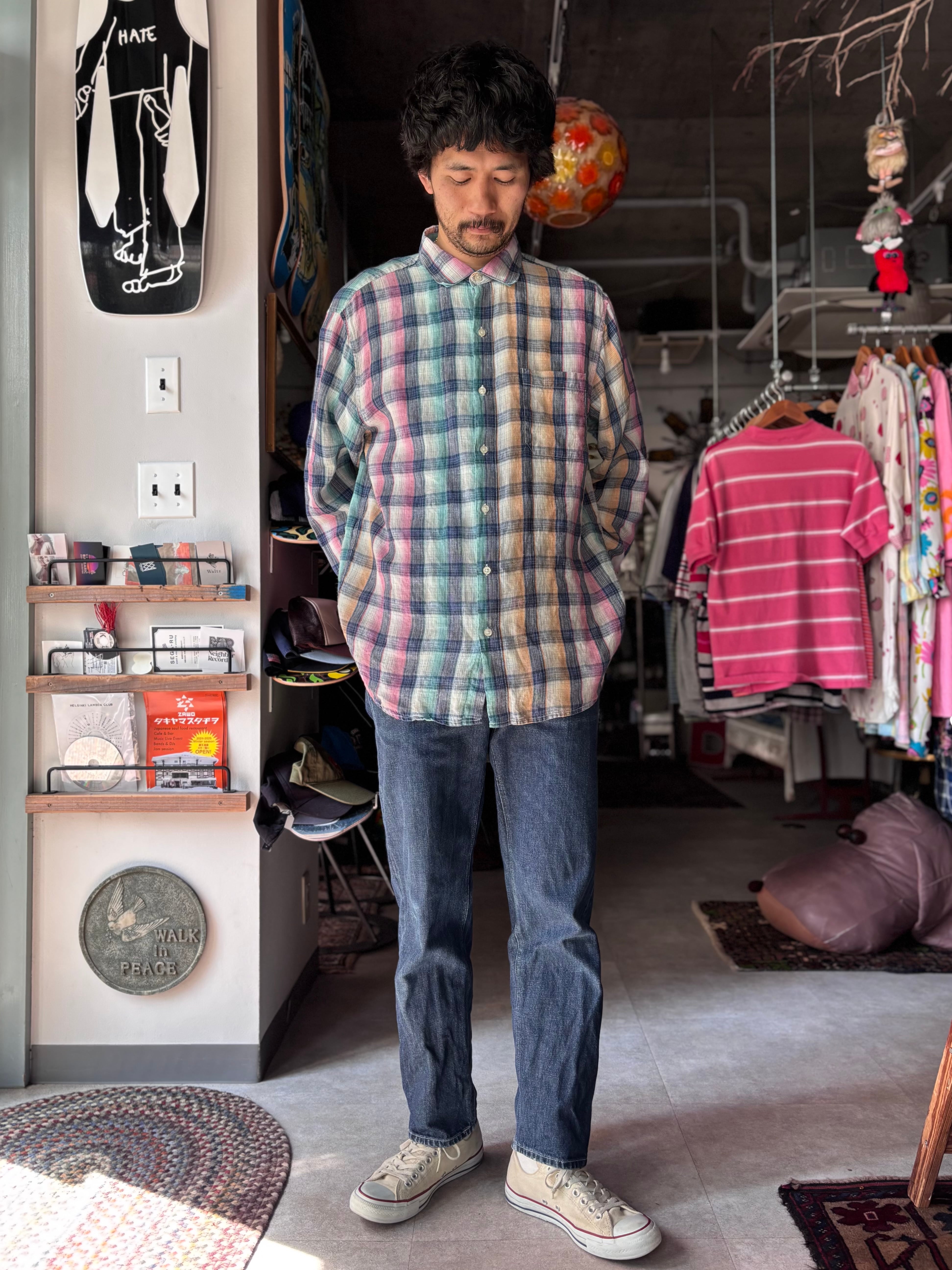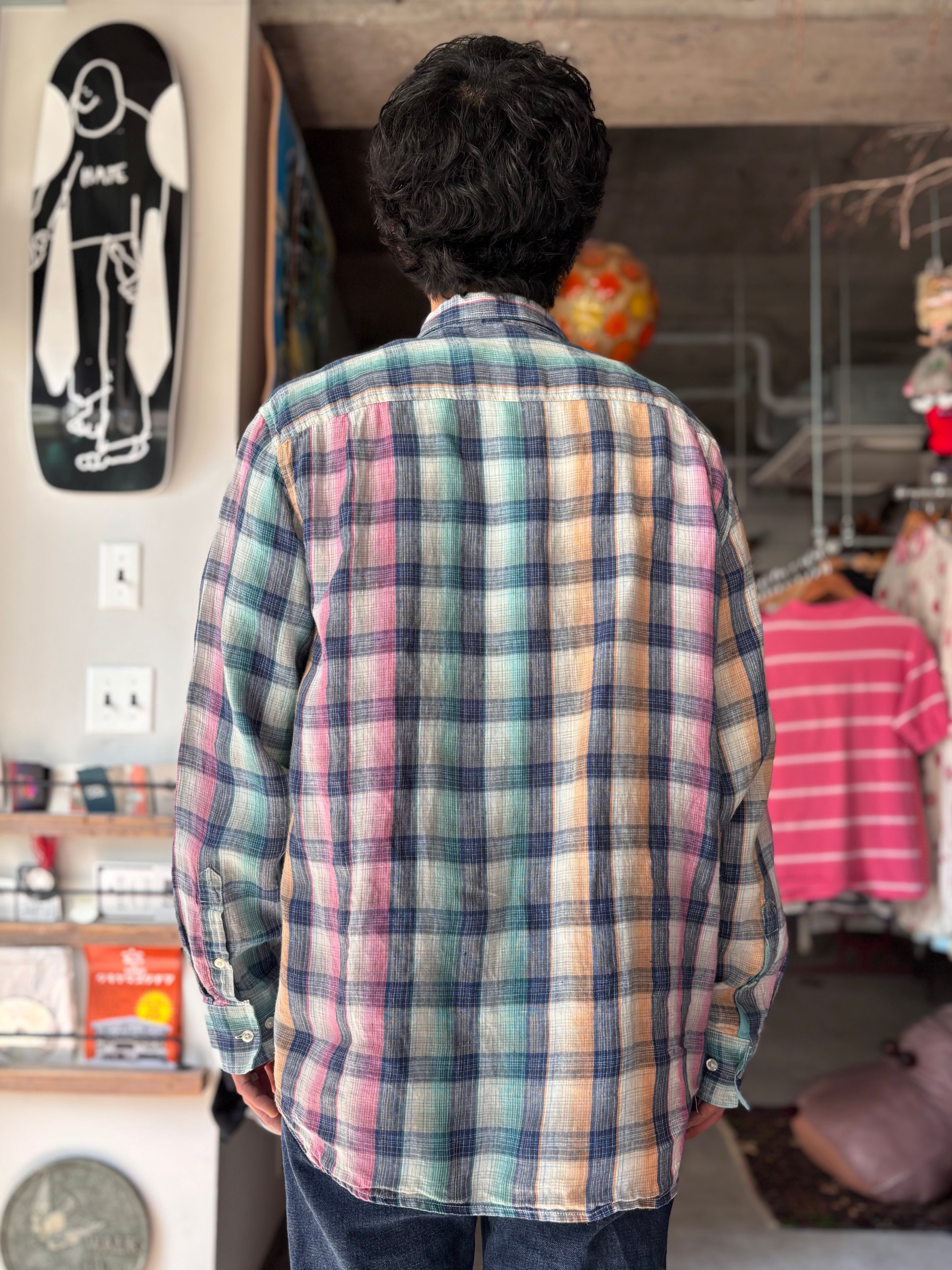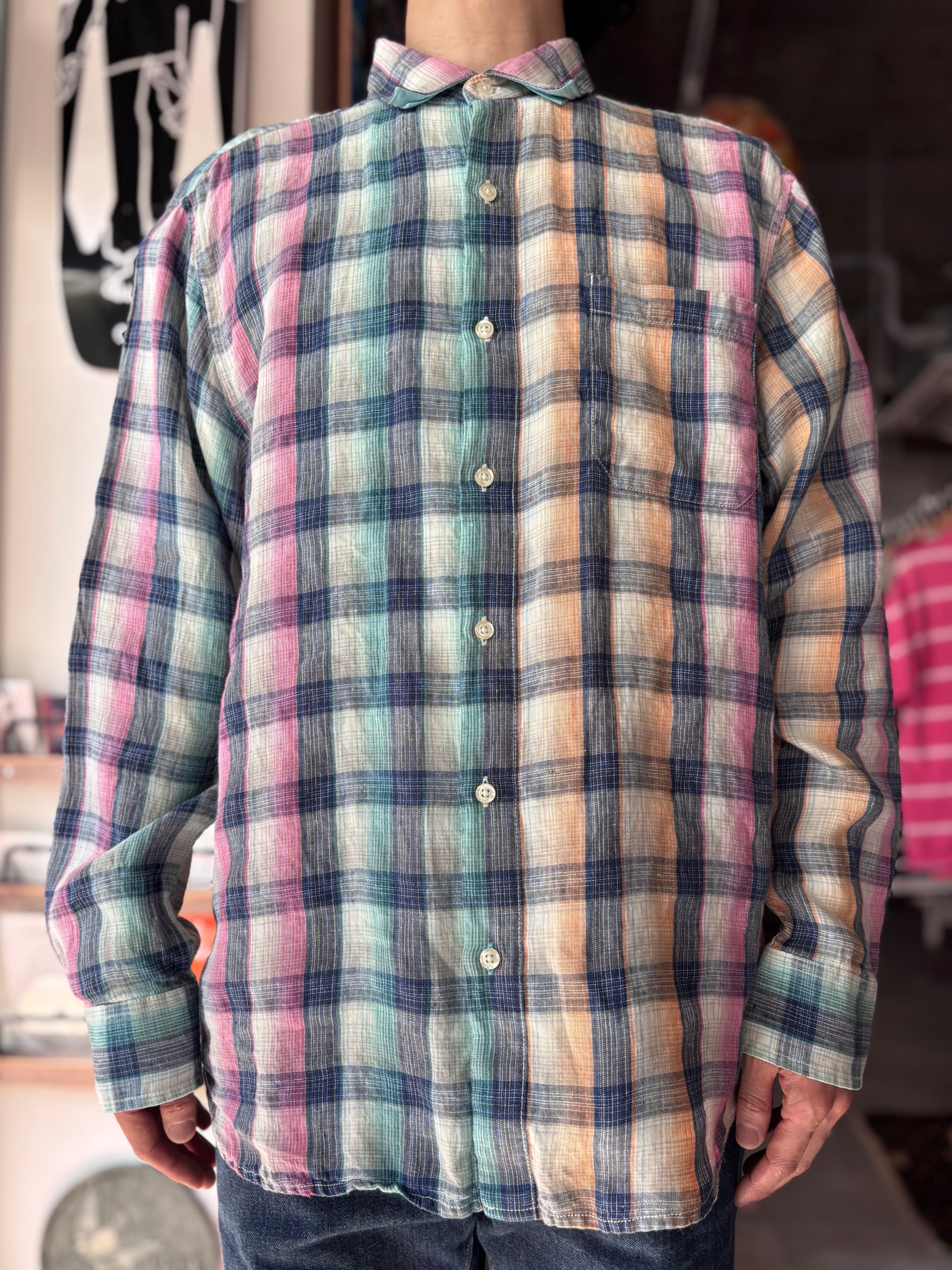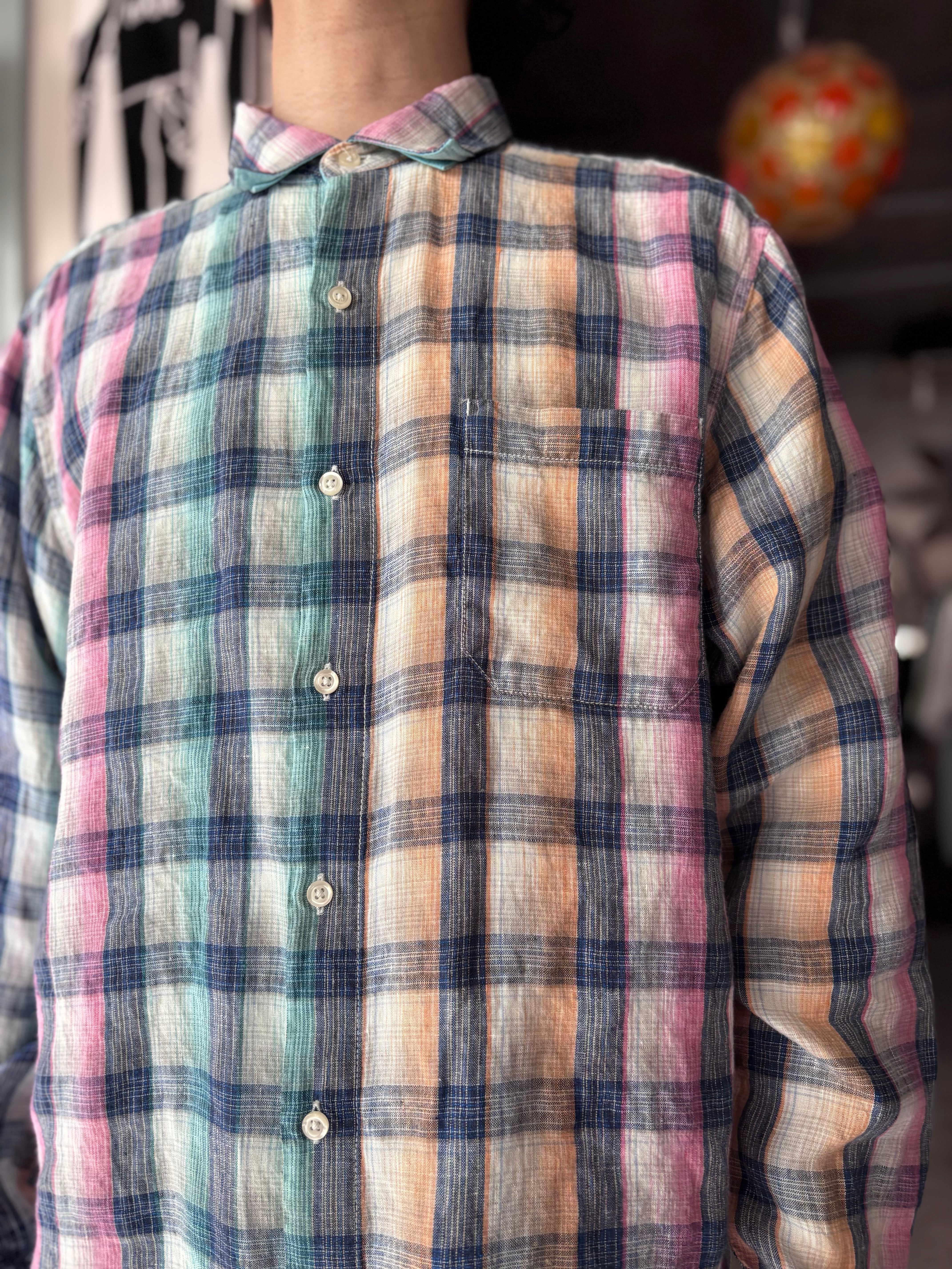 リネン素材。リラックスフィット。綺麗な淡いカラー。珍しいチェックです。