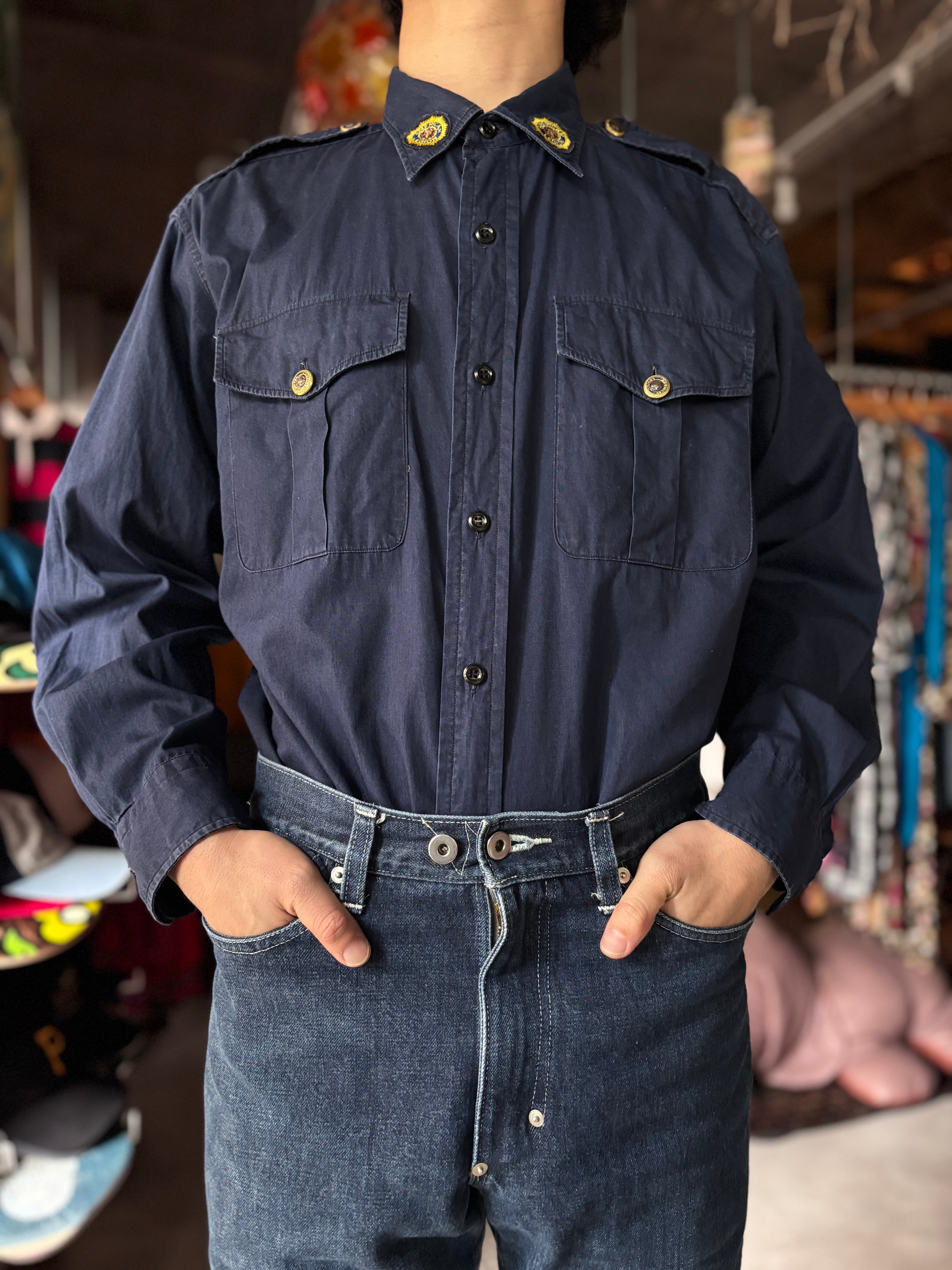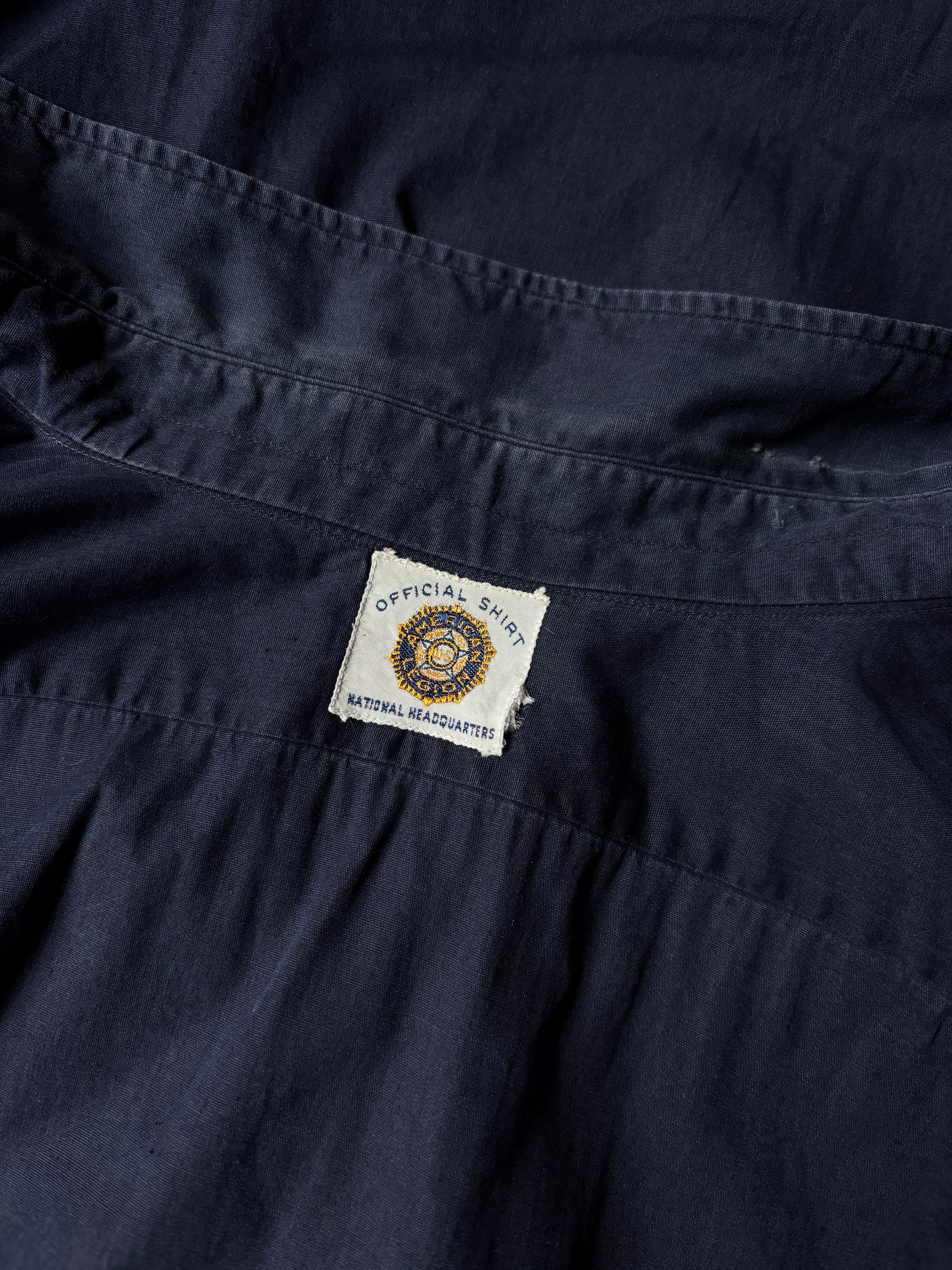 コットン素材。リラックスフィット。AMERICAN LEGION(退役軍人組織)もの。チェンジボタン仕様。大きめですがタックインしても映えるシャツです。