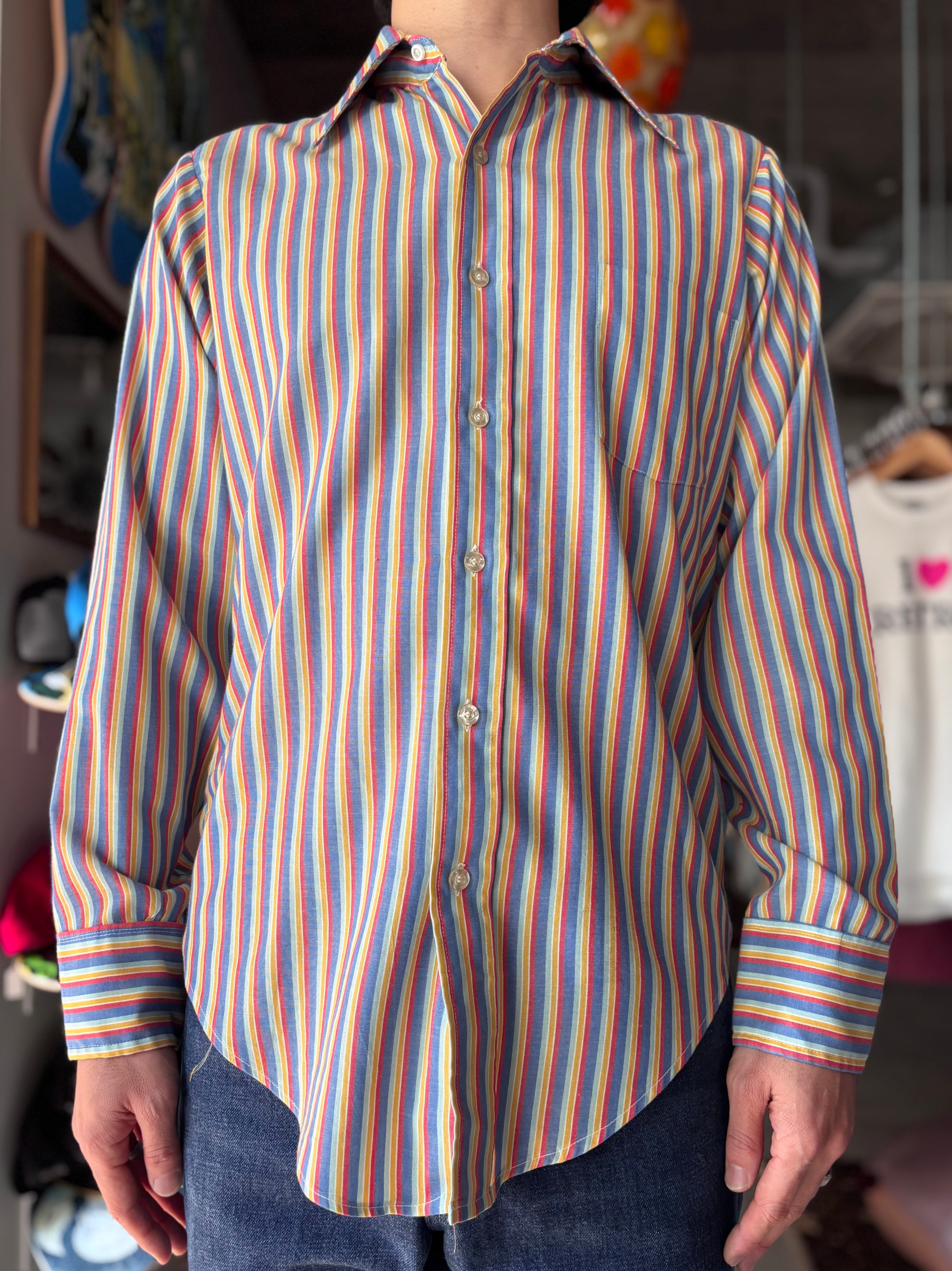 コットンポリ素材。ジャストフィット。レトロなマルチストライプです。