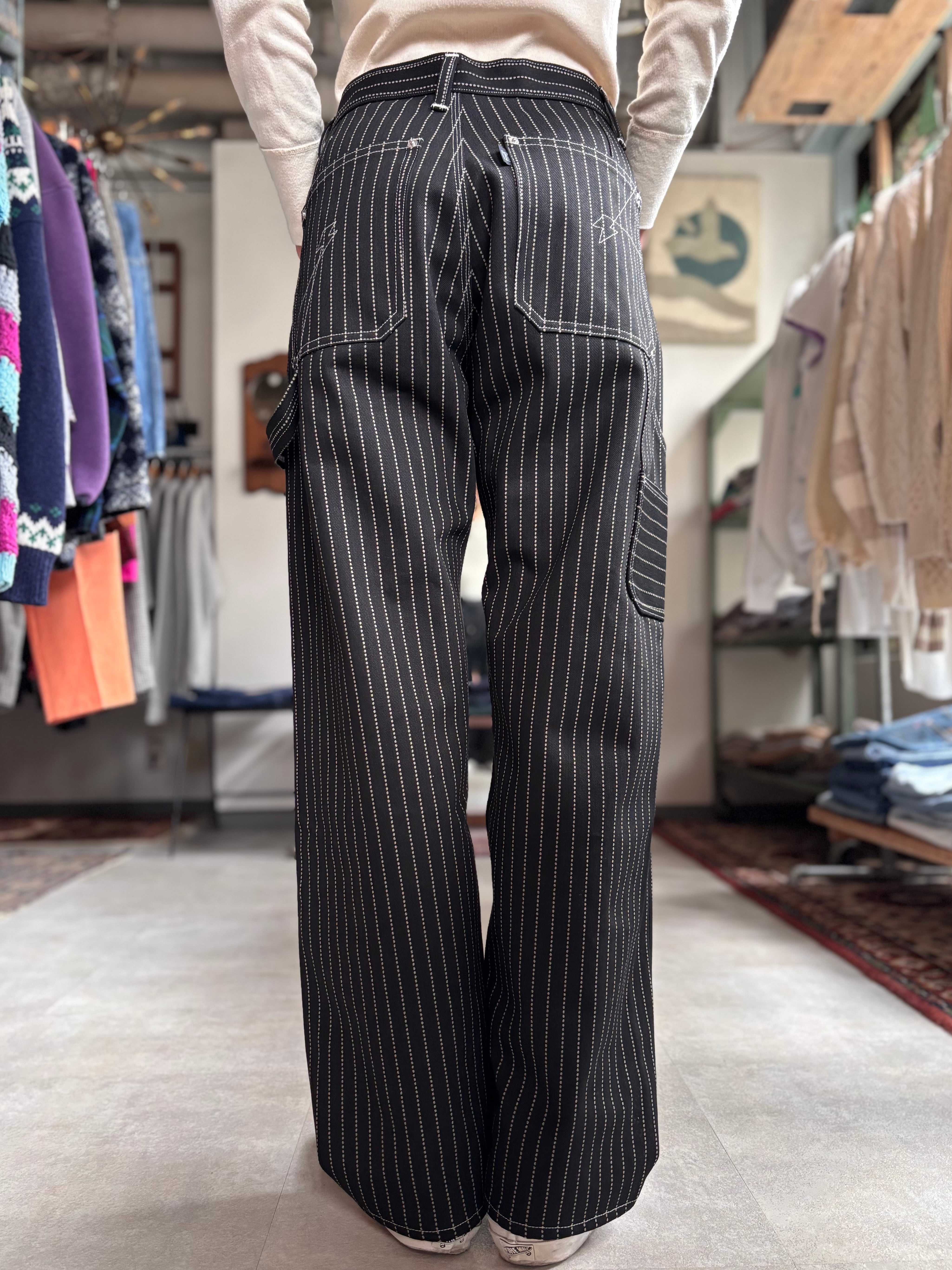 見た目はいわゆるペインターパンツですが、腰周りのボリュームを抑えつつも、立体的なパターンワークにより窮屈さを軽減。