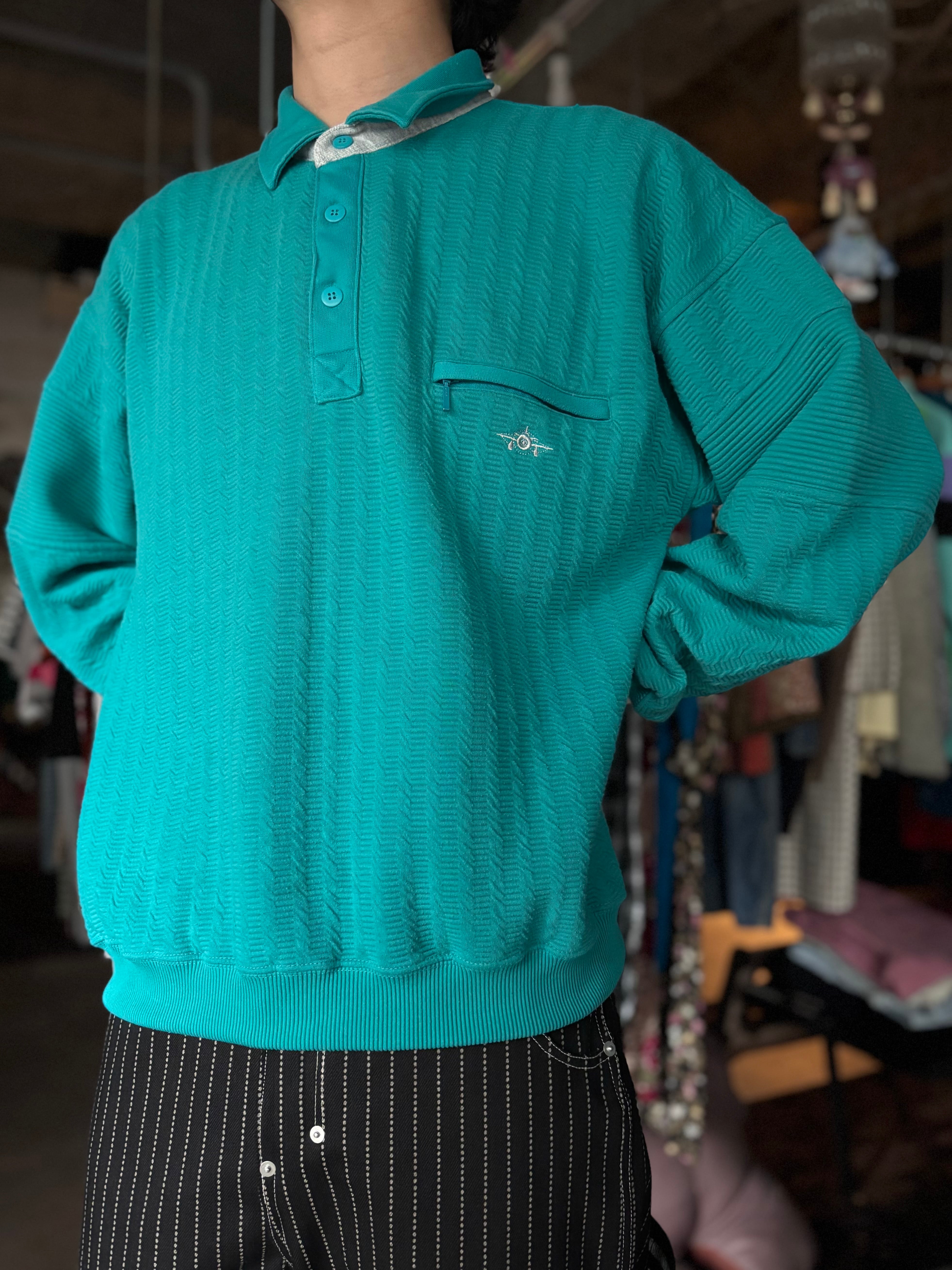 コットンポリ素材。リラックスフィット。珍しいポロカラータイプです。