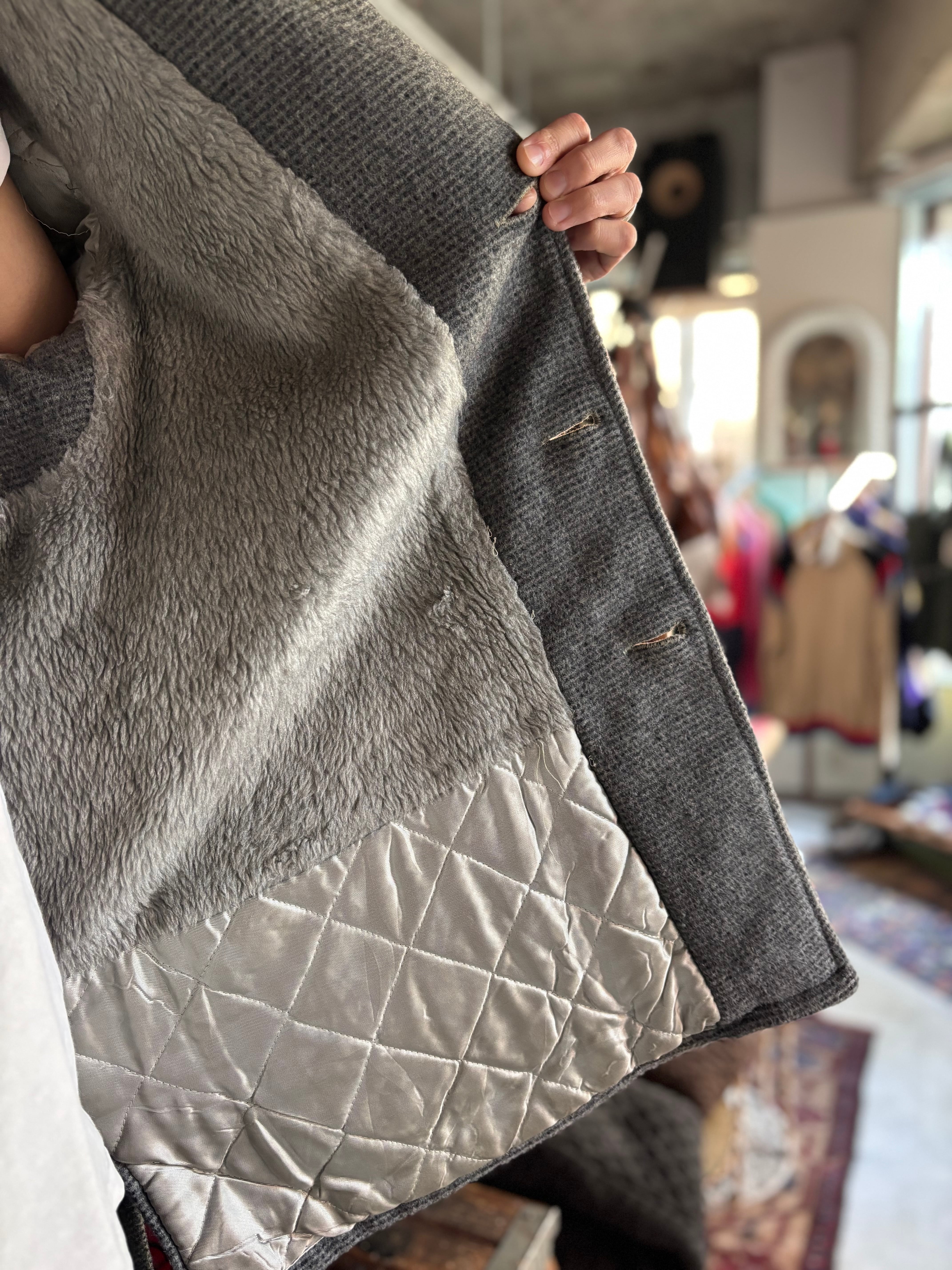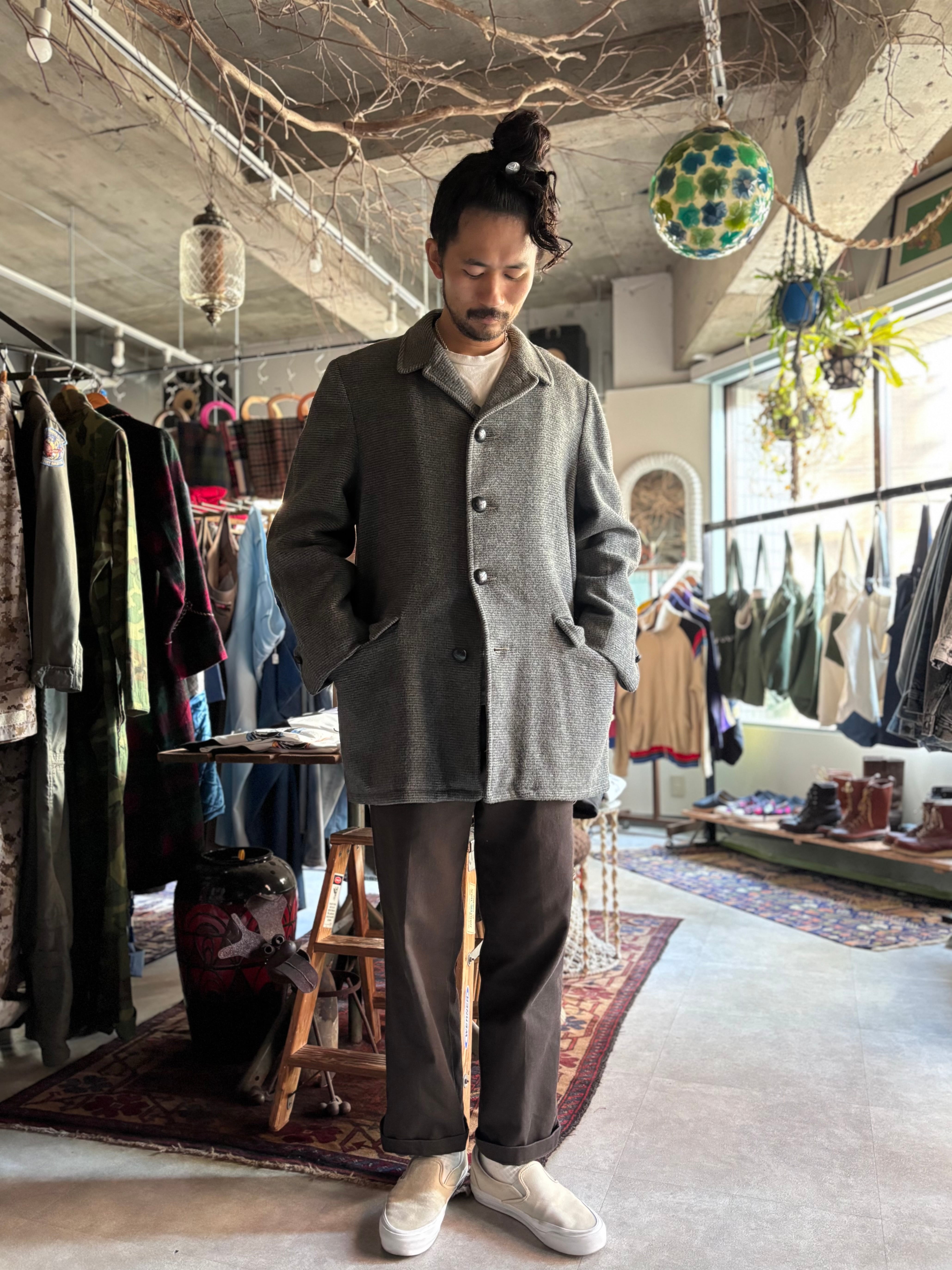 ウールツイード生地に、内側はボア仕様。リラックスフィット。スタンダードなディテールで合わせ易いと思います。
