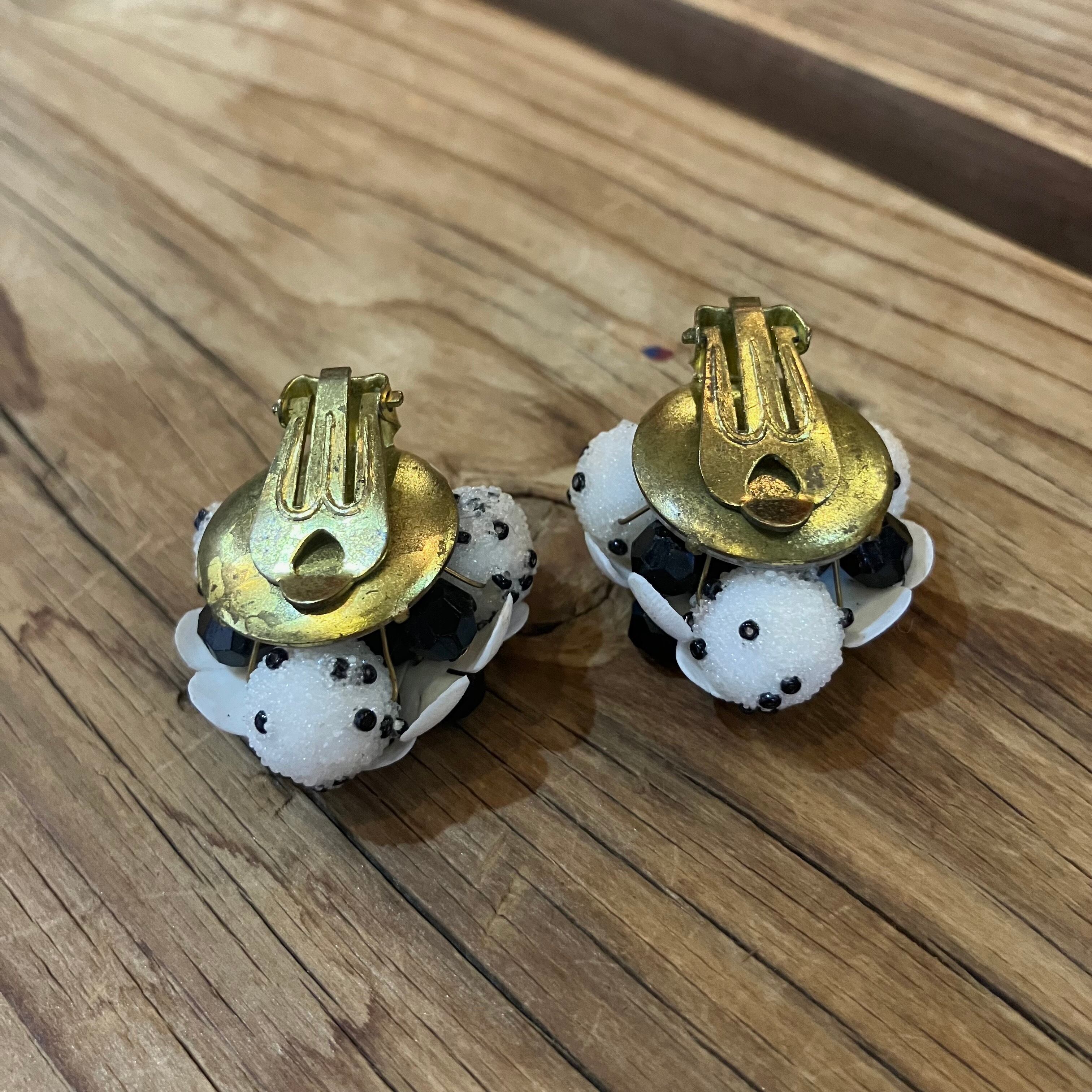60年代製のビンテージイヤリング。モノトーンのお花がギュッと集まったOLD感たっぷりのデザイン。シンプルコーデのポイントにいかがでしょうか◎