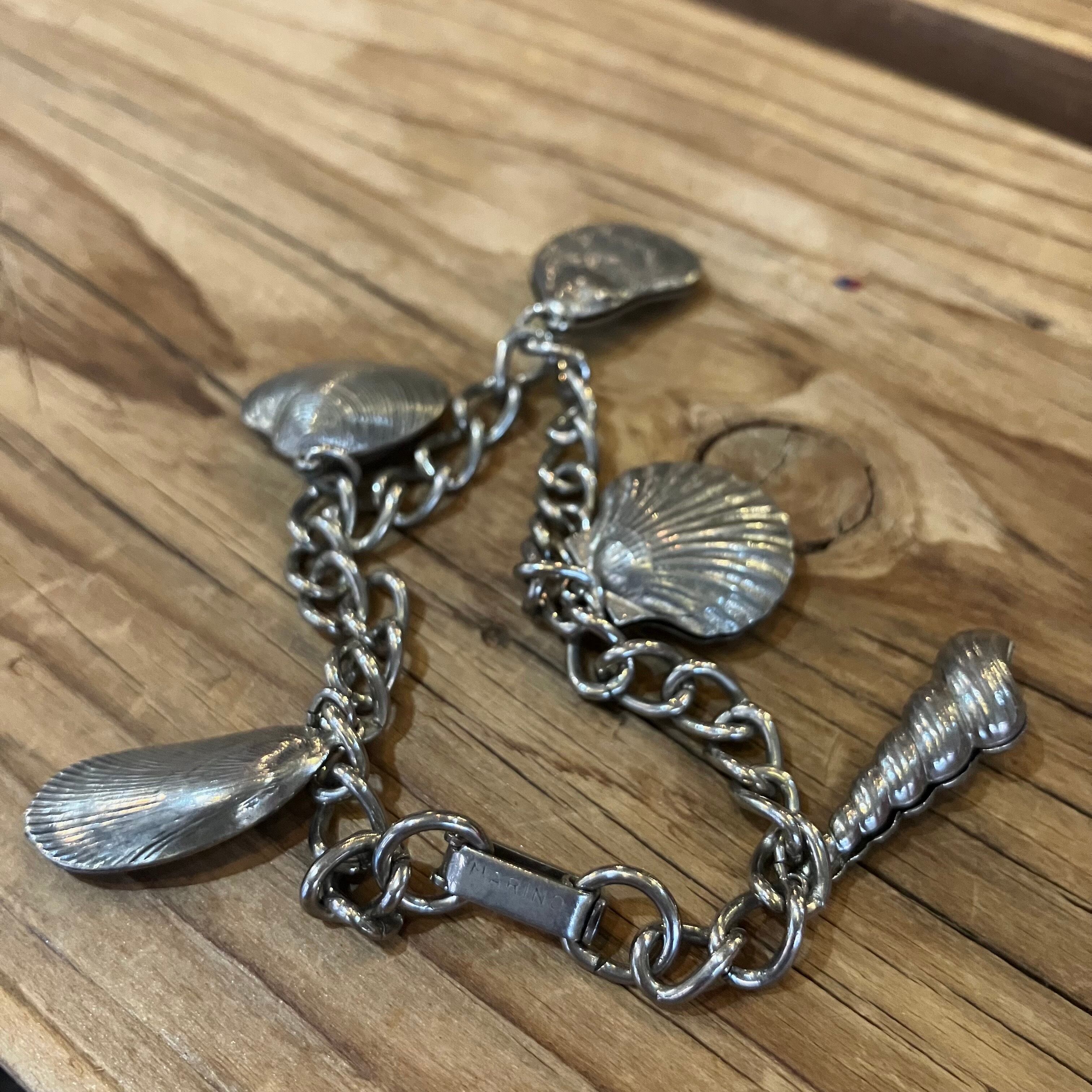 70年代製ビンテージブレスレット。スターリングシルバー調のくすんだカラーリング。立体感のあるしっかりしたチャームが落ち着いた雰囲気。ビンテージMARINOの刻印入り。