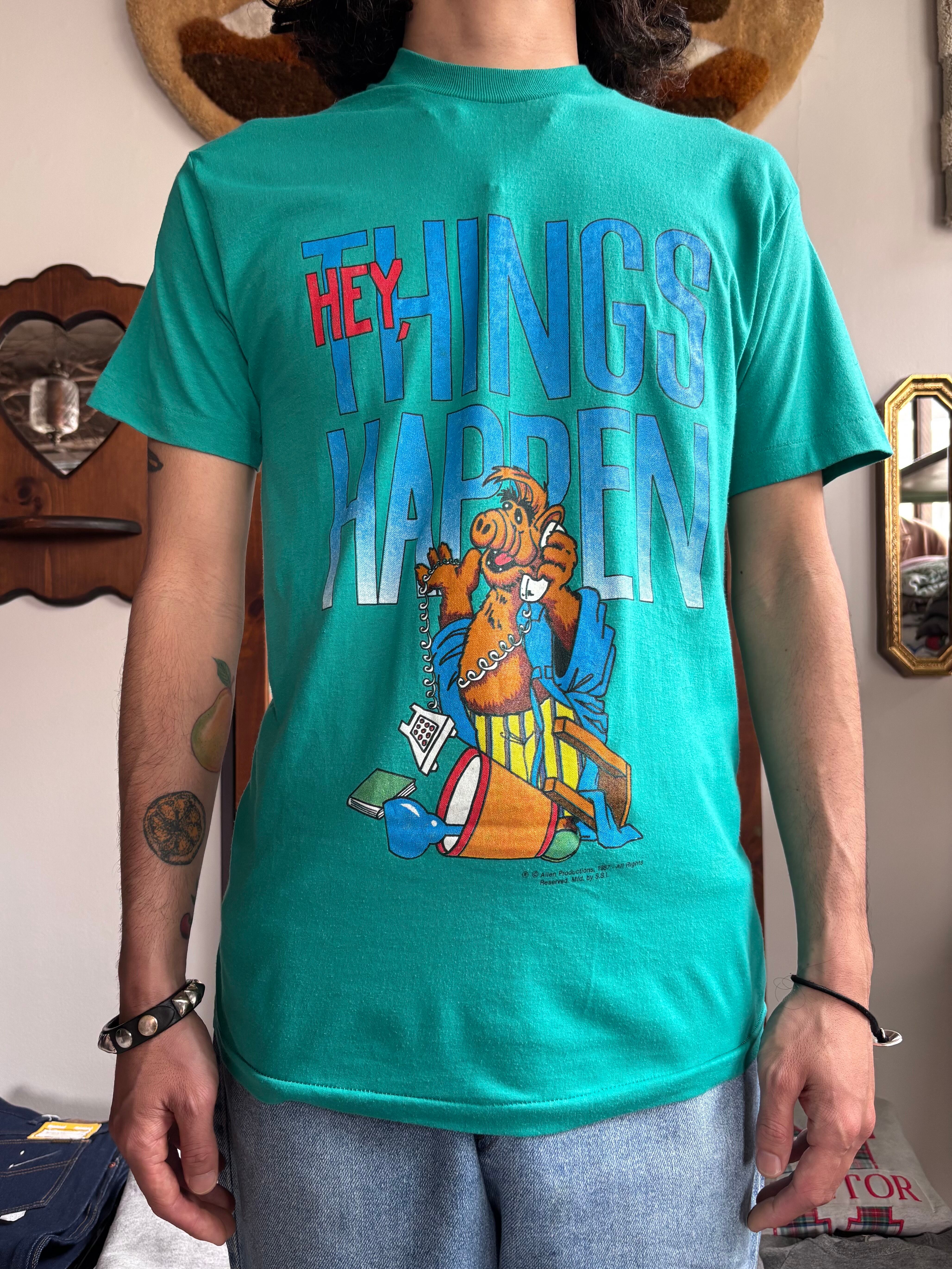 薄手のポリコットン素材。オーセンティックなジャストフィット。80s USA製のビンテージモデル。シングルステッチ。ALFの初期もの。
