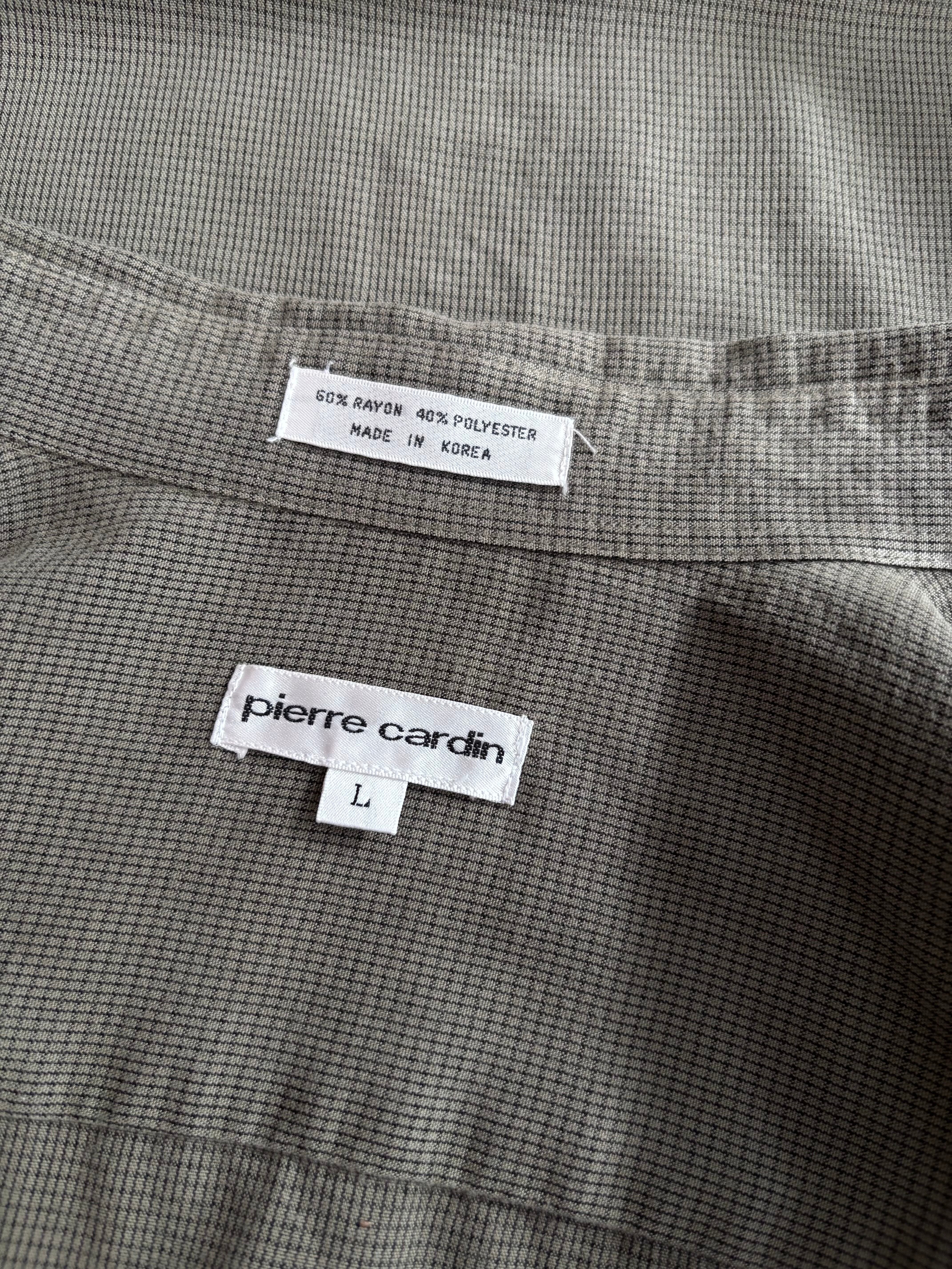 とろみのあるレーヨンポリ素材。ナードな印象のグリーングレーカラー。リラックスシルエット。ピエールカルダンらしい上質感のあるファブリック。