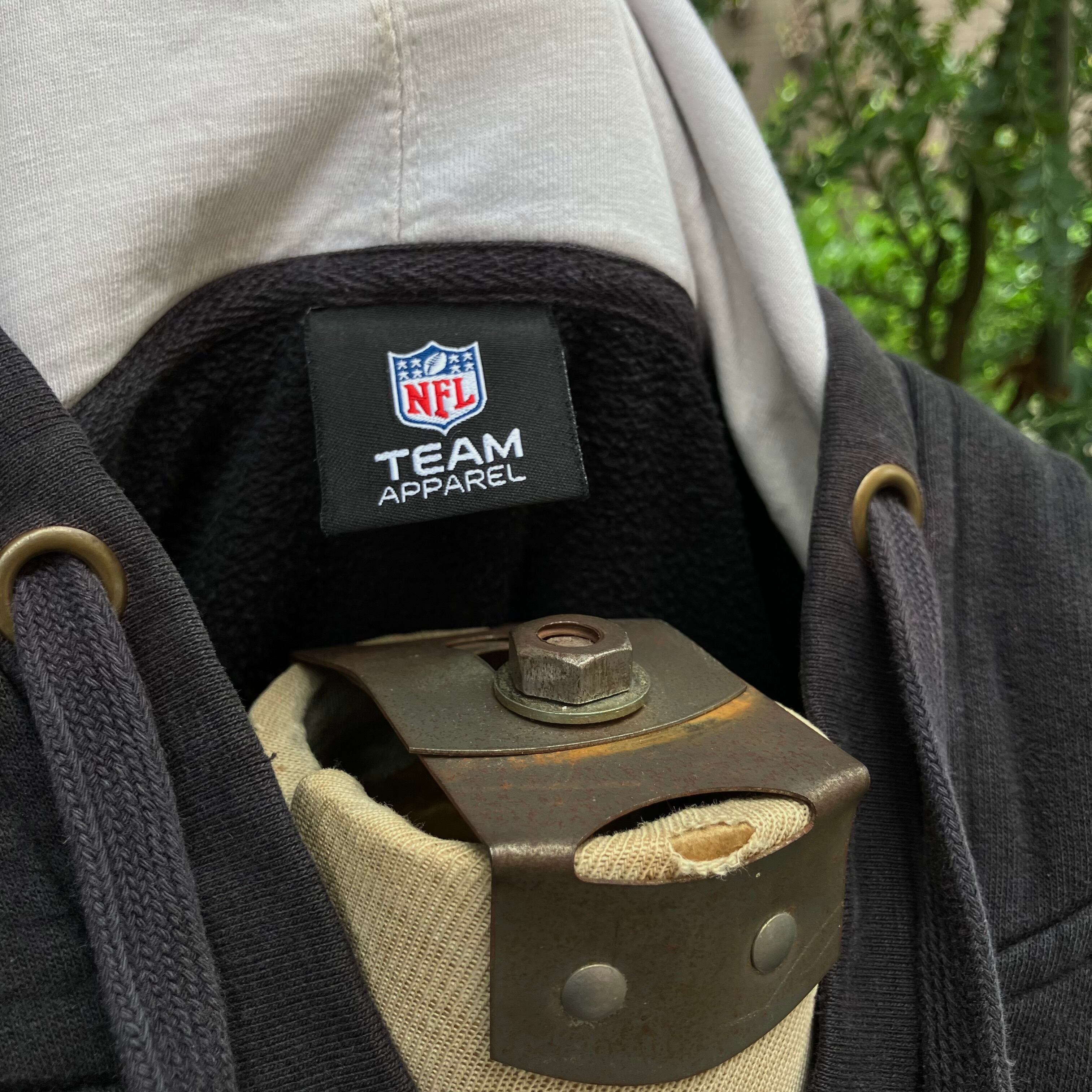 しっかりした厚みのあるコットン生地。ゆとりのあるリラックスシルエット。ネックの作りや、袖のテープなど手の込んだディテール。NFLのオフィシャルもの。