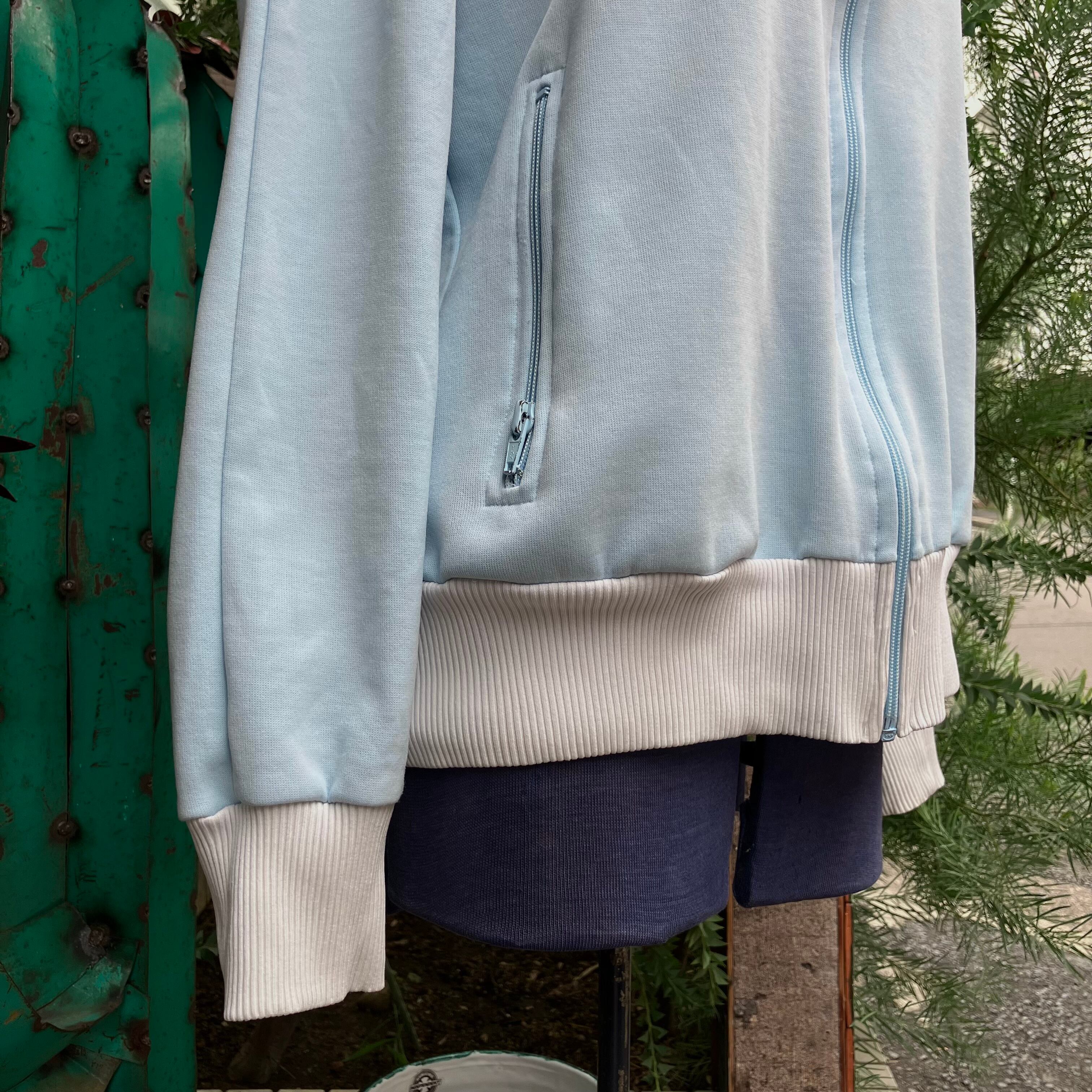 着心地の良いジャージ生地に、ジャストフィッティング。ホワイトのリブが効いたOLD感のあるカラーリング。