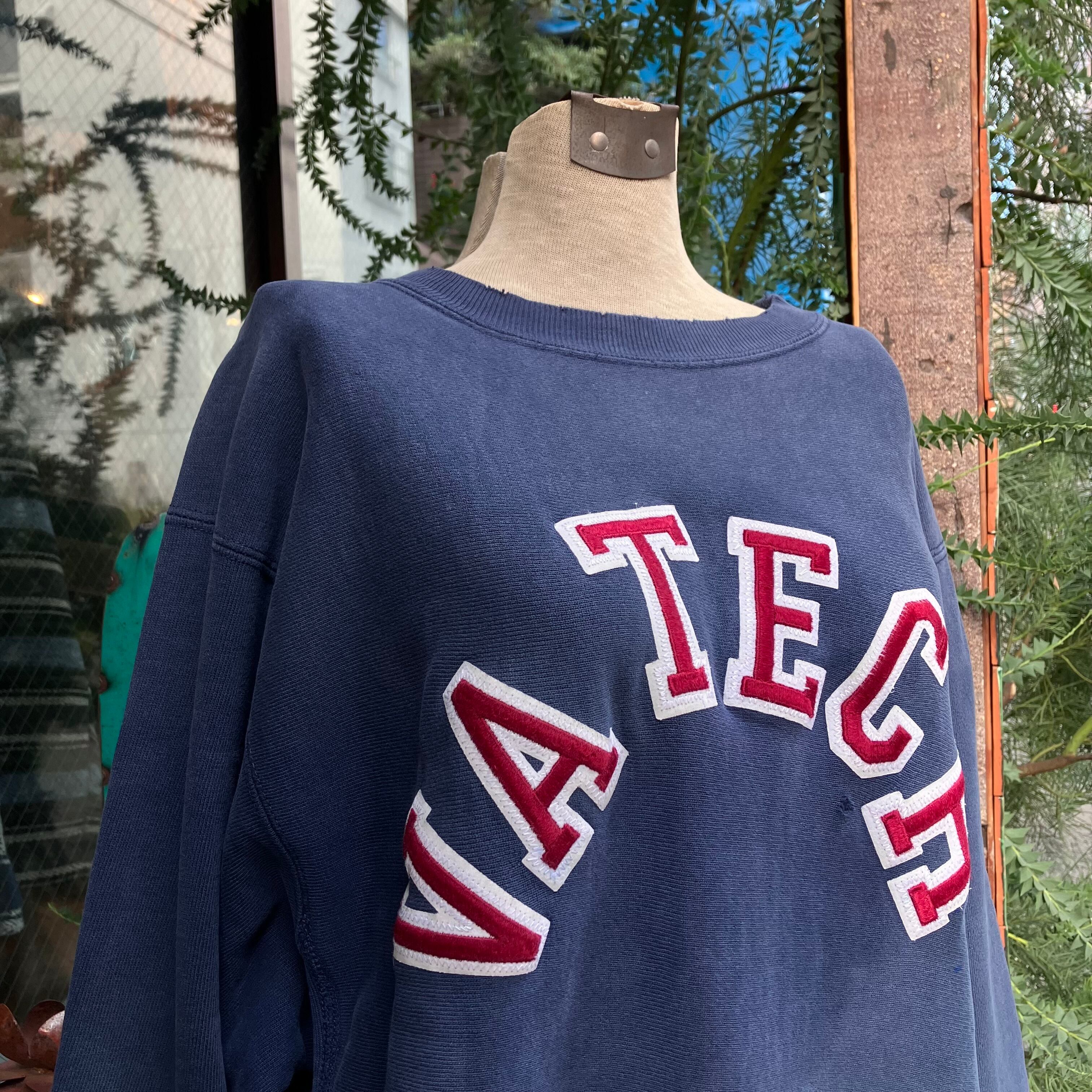 フロントにパッチが入るデザインのリバースウィーブ。生地の程よい褪色や、経年によるダメージがビンテージならではの風合い。OLD感のあるおすすめの一着。