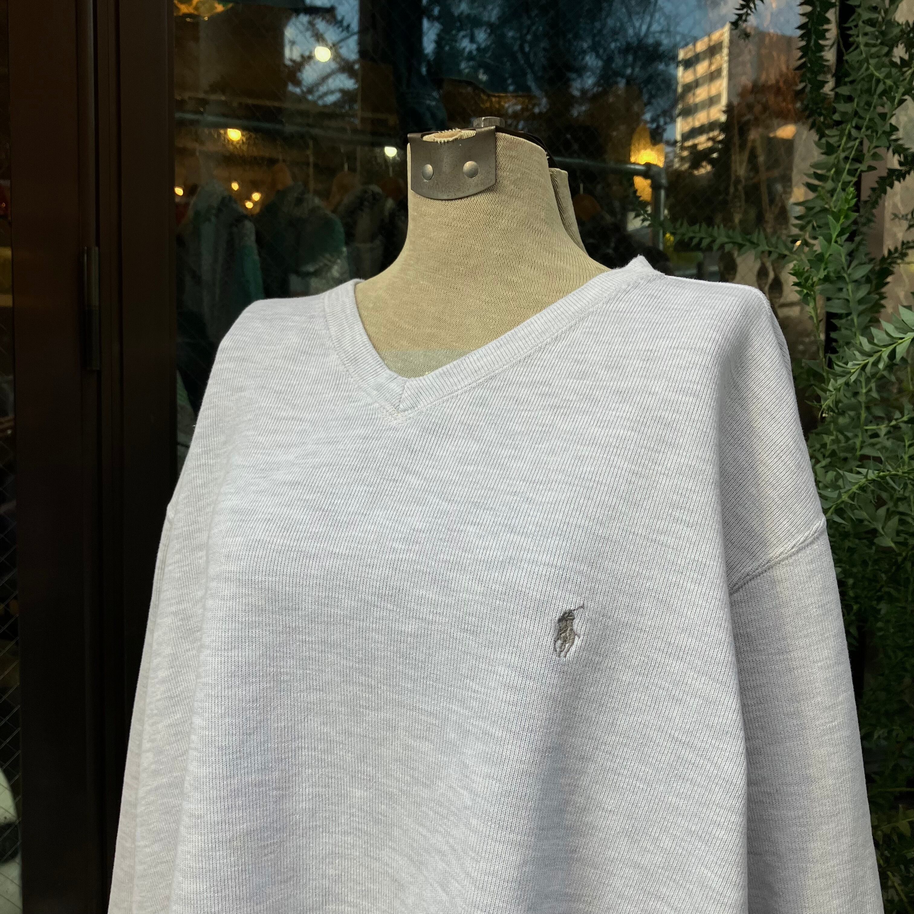 しっかりした厚みのコットン素材。たっぷりした身幅に、長すぎない着丈のリラックスフィット。上品な印象の浅めのVネック仕様。