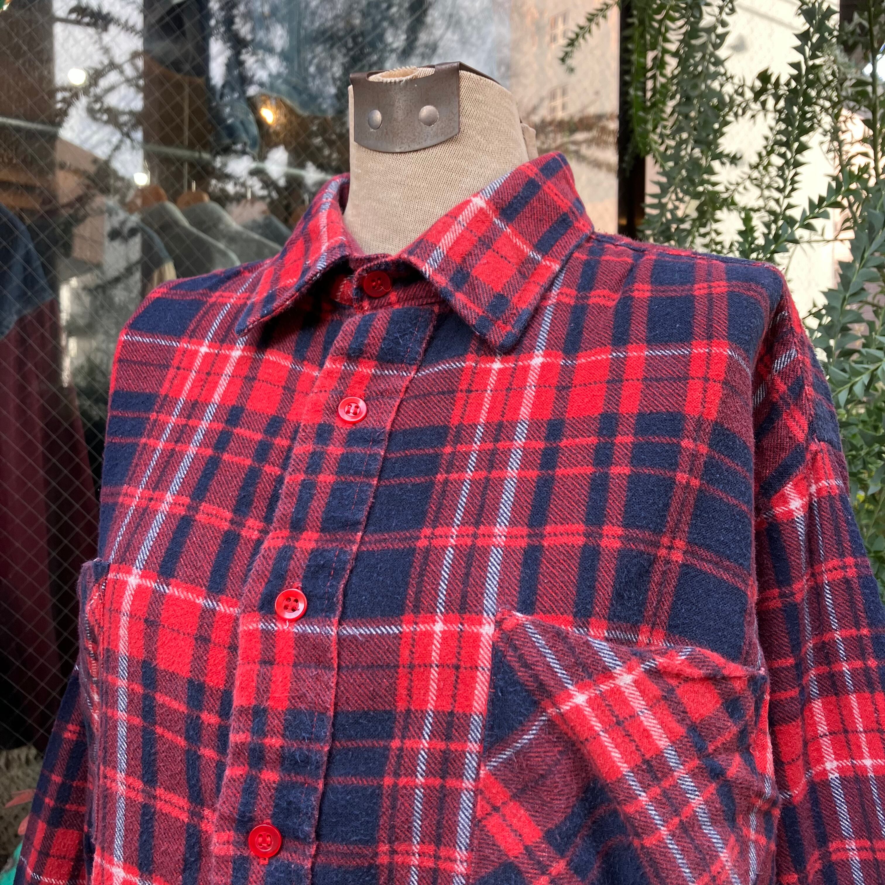 柔らかい着心地のコットン素材。程よくゆとりのあるシルエット。ポップな柄の出方が印象的なプリントタイプのフランネルシャツ。