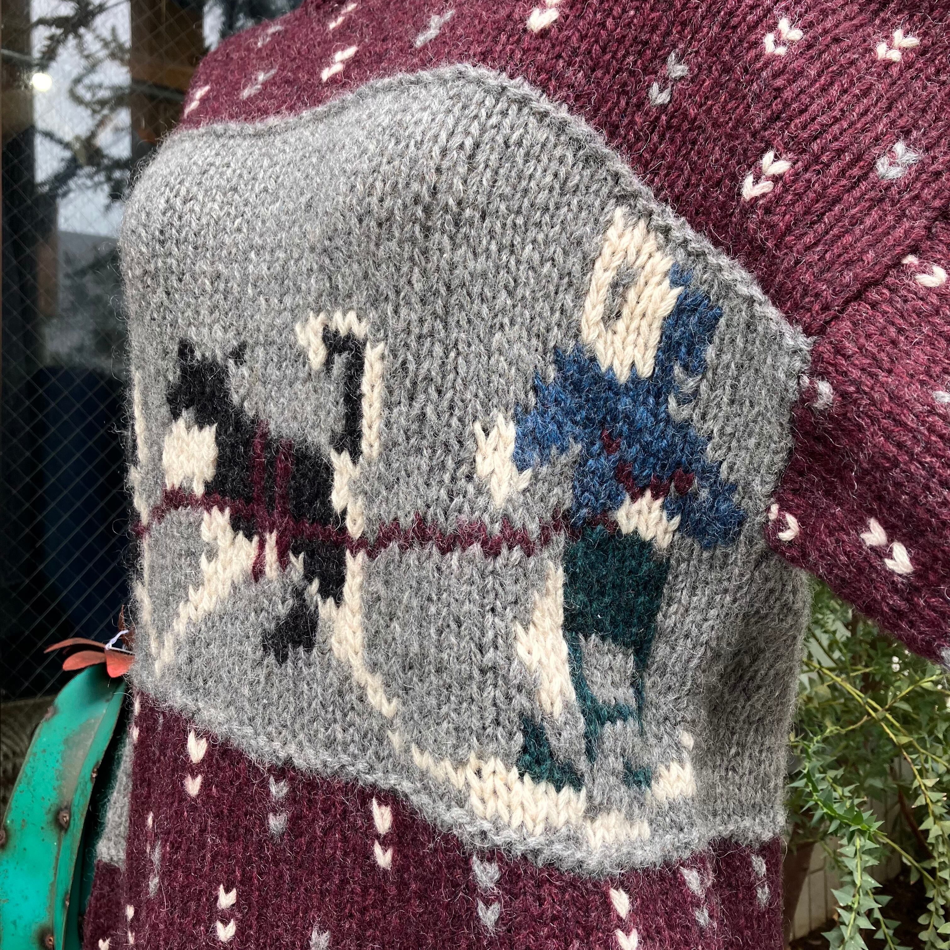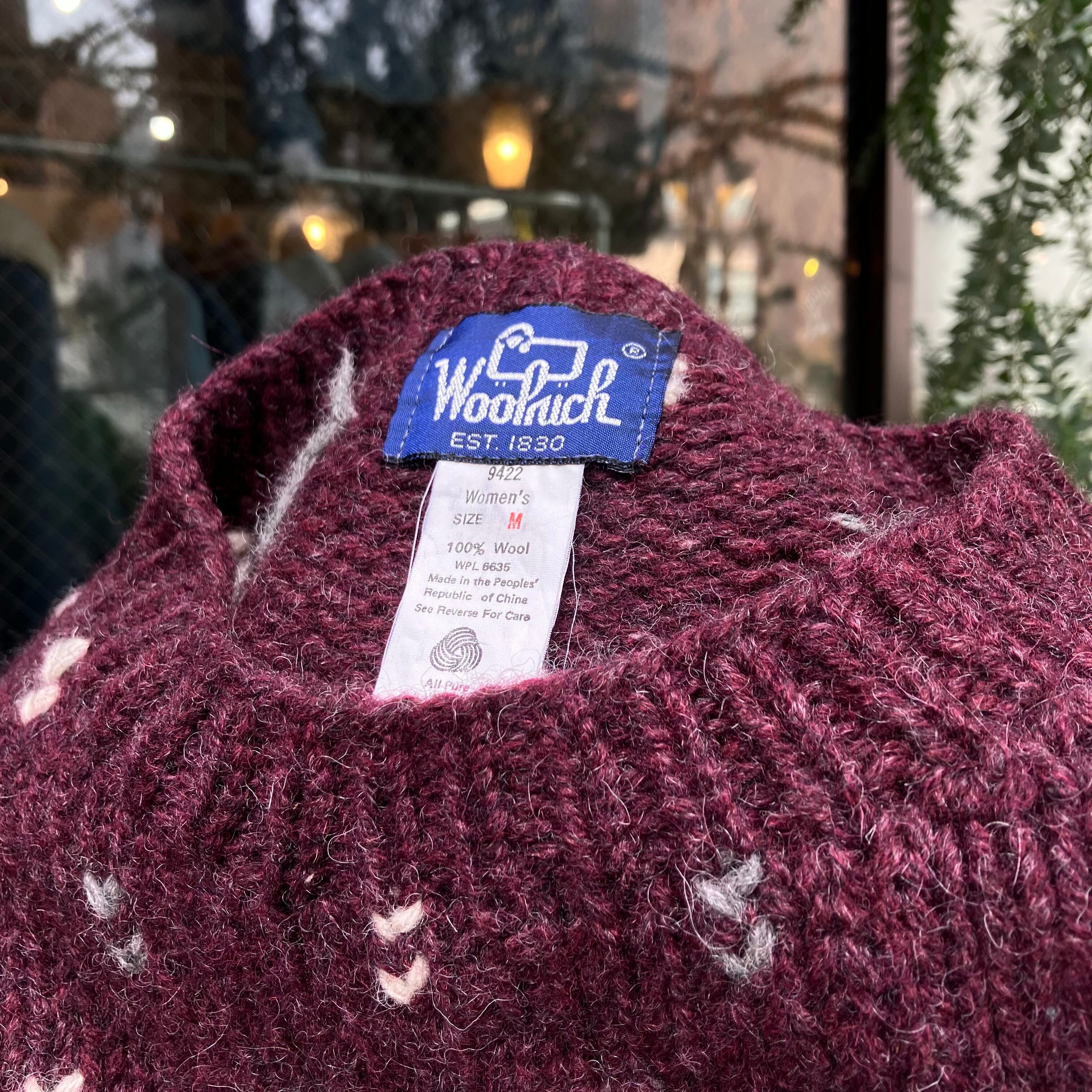 柔らかい着心地のウール素材。程よくゆとりのあるシルエット。OLDウールリッチの中でも人気の高いアニマルモチーフの編み柄入りニット。