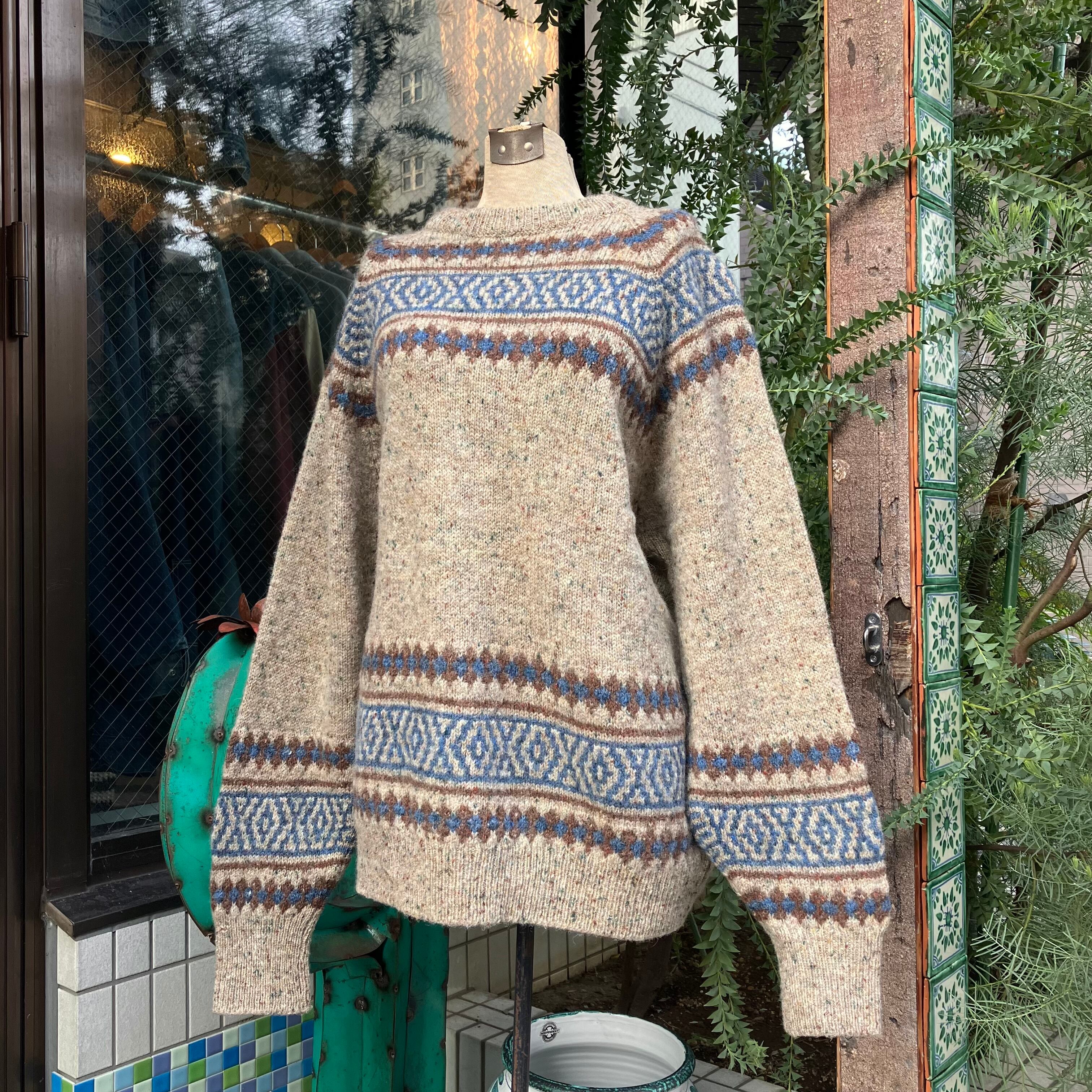 柔らかい着心地のシェットランドウール。多色カラーのネップ糸に珍しいカラーリング。ゆとりのあるシルエット。綺麗なコンディション。イギリス製の上質な作りが際立つセーター。