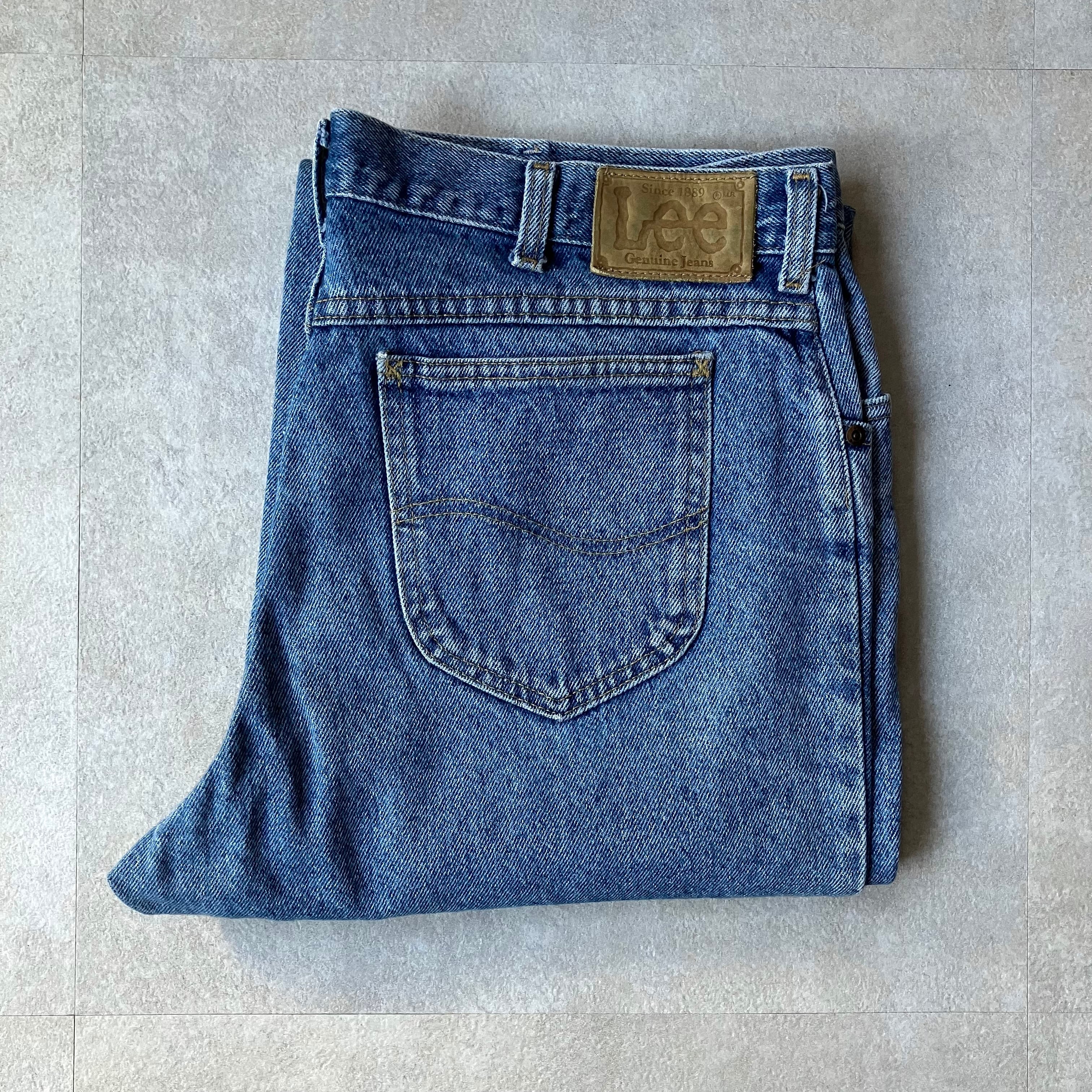 やわらかい印象の自然なウォッシュドデニムカラー。センタープレス入りのストレッチ生地。股上、腰まわりともにゆとりのある太めのストレート。USAメイドのOLDモデル。ベルトで縛って大きめに履きたい方など、幅広い体型の方におすすめの万能デニムです。ポリエステル混紡の為、とても履き易いデニムです。