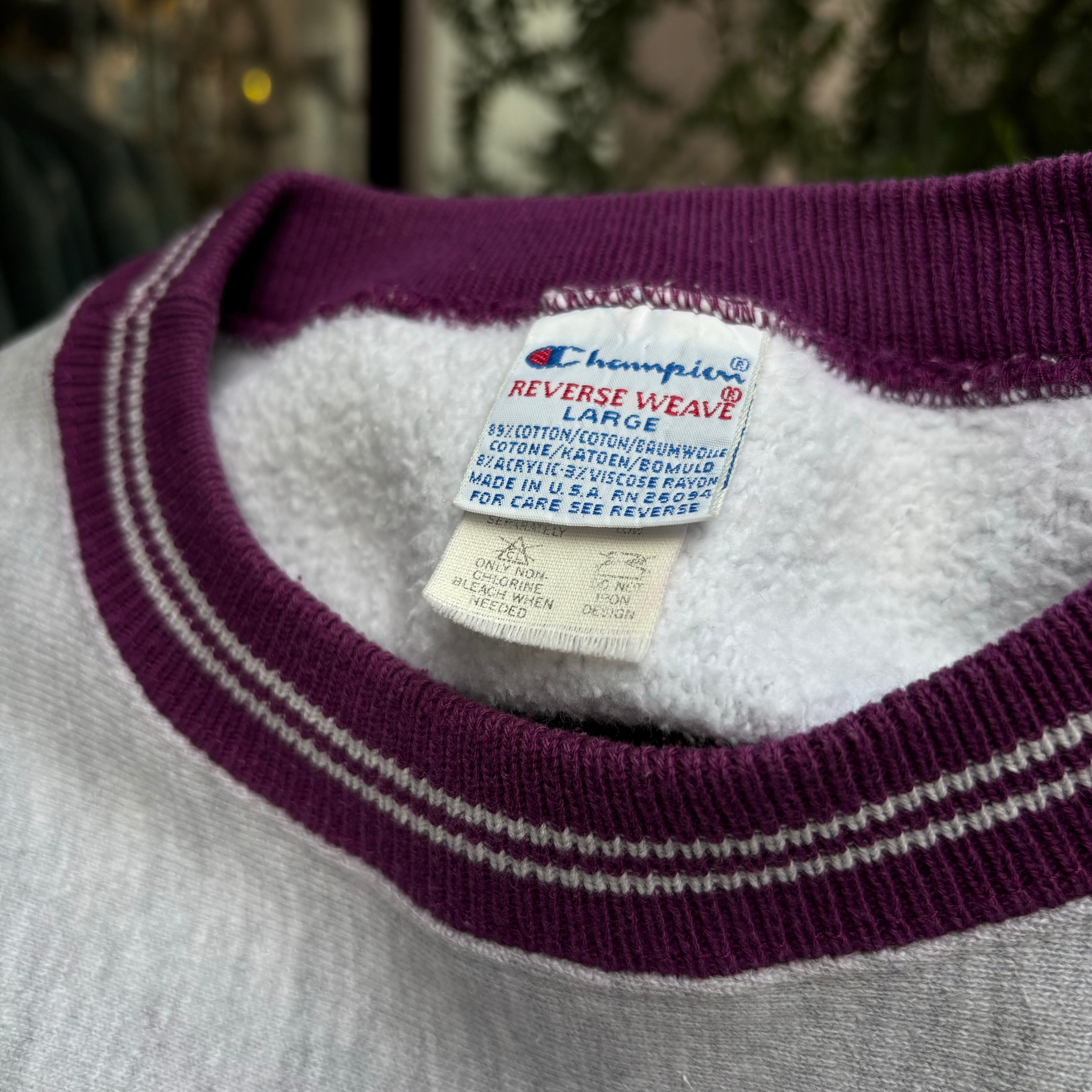 しっかりした厚みのコットン素材。ゆとりのあるリラックスシルエット。USA製のVINTAGEチャンピオン。フロントにロゴ刺繍が入るスタンダードな印象の1着。