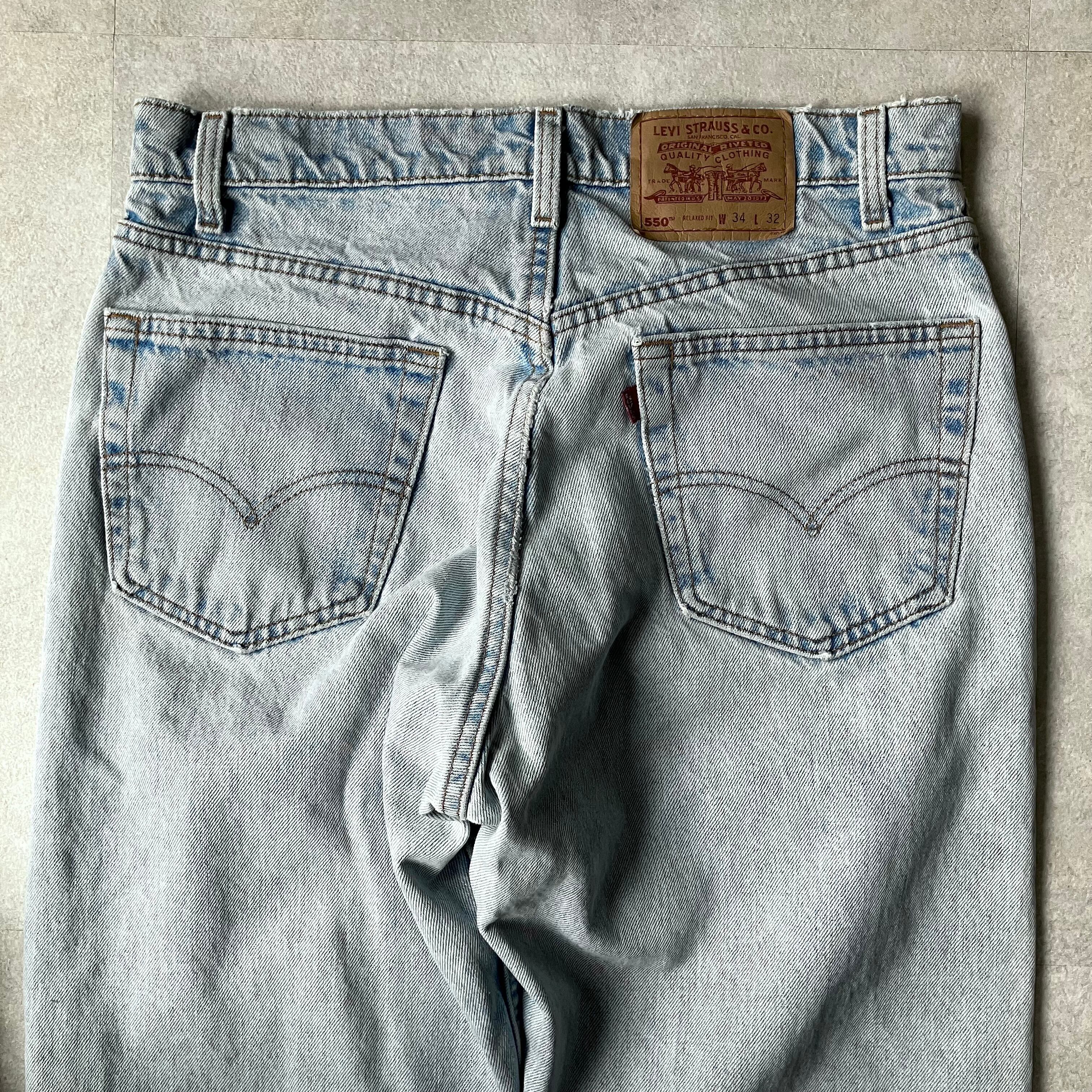 USAメイドのビンテージリーバイス。股上深めのゆとりのあるリラックスフィット。裾に向かってテーパードのかかるシルエット。綺麗に色の抜けたアイスウォッシュカラー。オリジナルレングス。力の抜けたお洒落感のあるおすすめの一本。