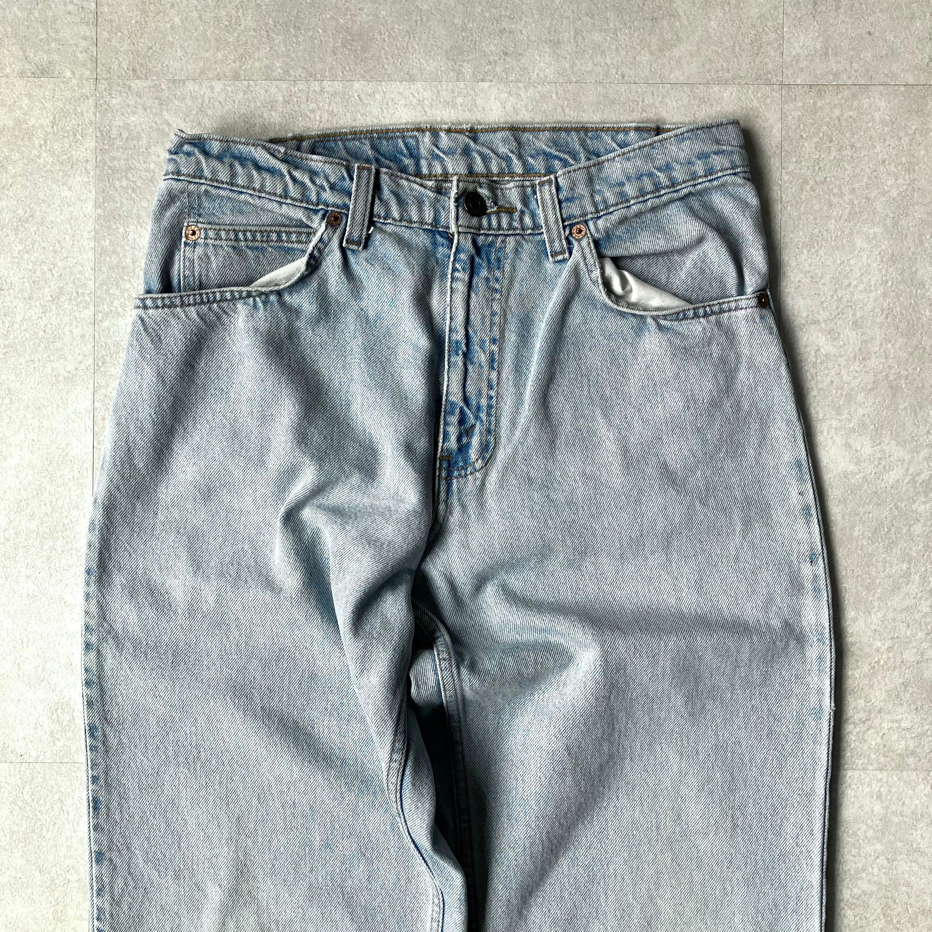 USAメイドのビンテージリーバイス。股上深めのゆとりのあるリラックスフィット。オレンジタブ仕様。テーパードがかかったシルエット。綺麗に色の抜けたアイスウォッシュカラー。自然なOLD感が魅力のデニム。