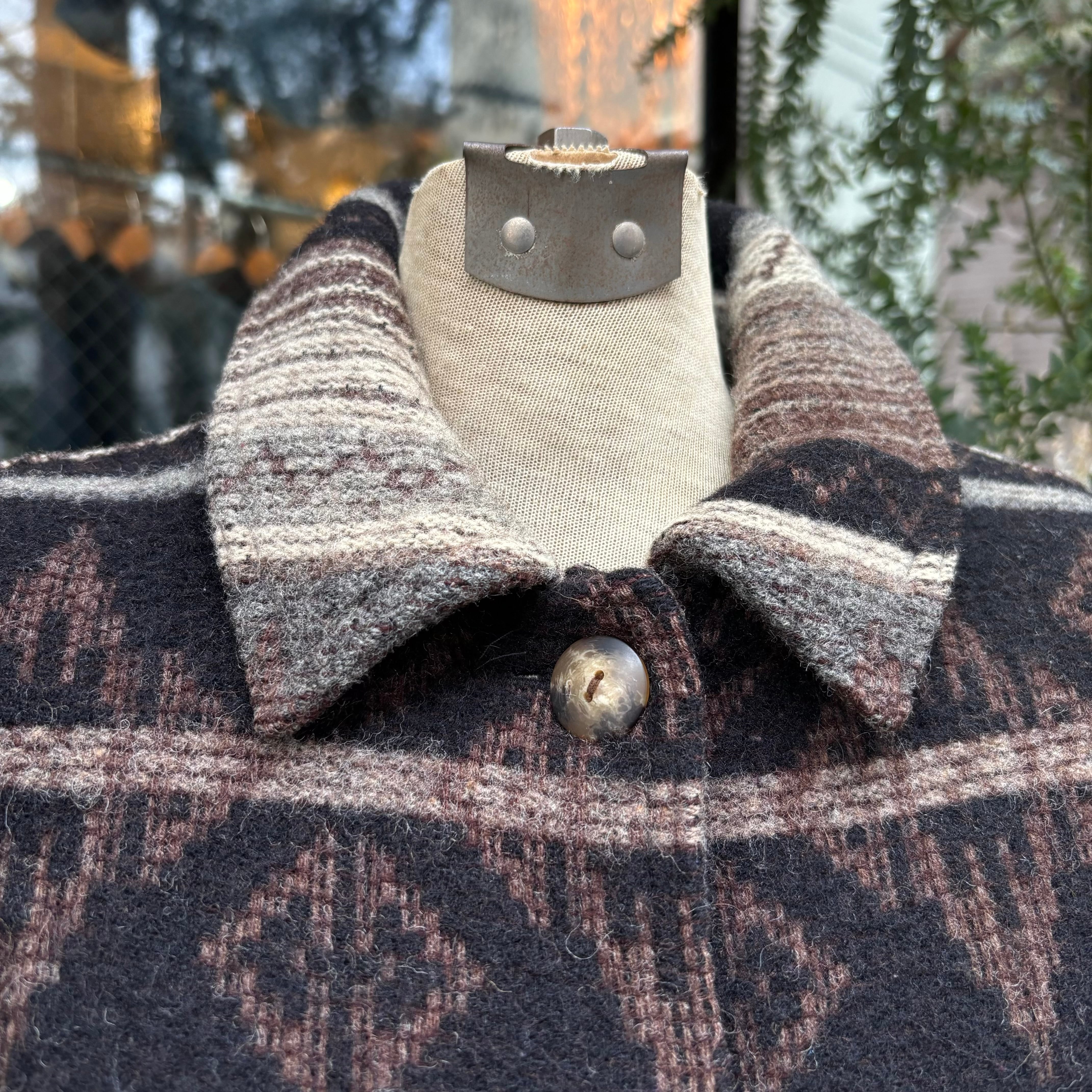 落ち着いたネイティブパターンのウール素材。クラシカルなスタンダードフィット。フロントに大ぶりのポケットが可愛い印象。USA製のビンテージLLビーン製。上品な質の良さが魅力のラグコート。