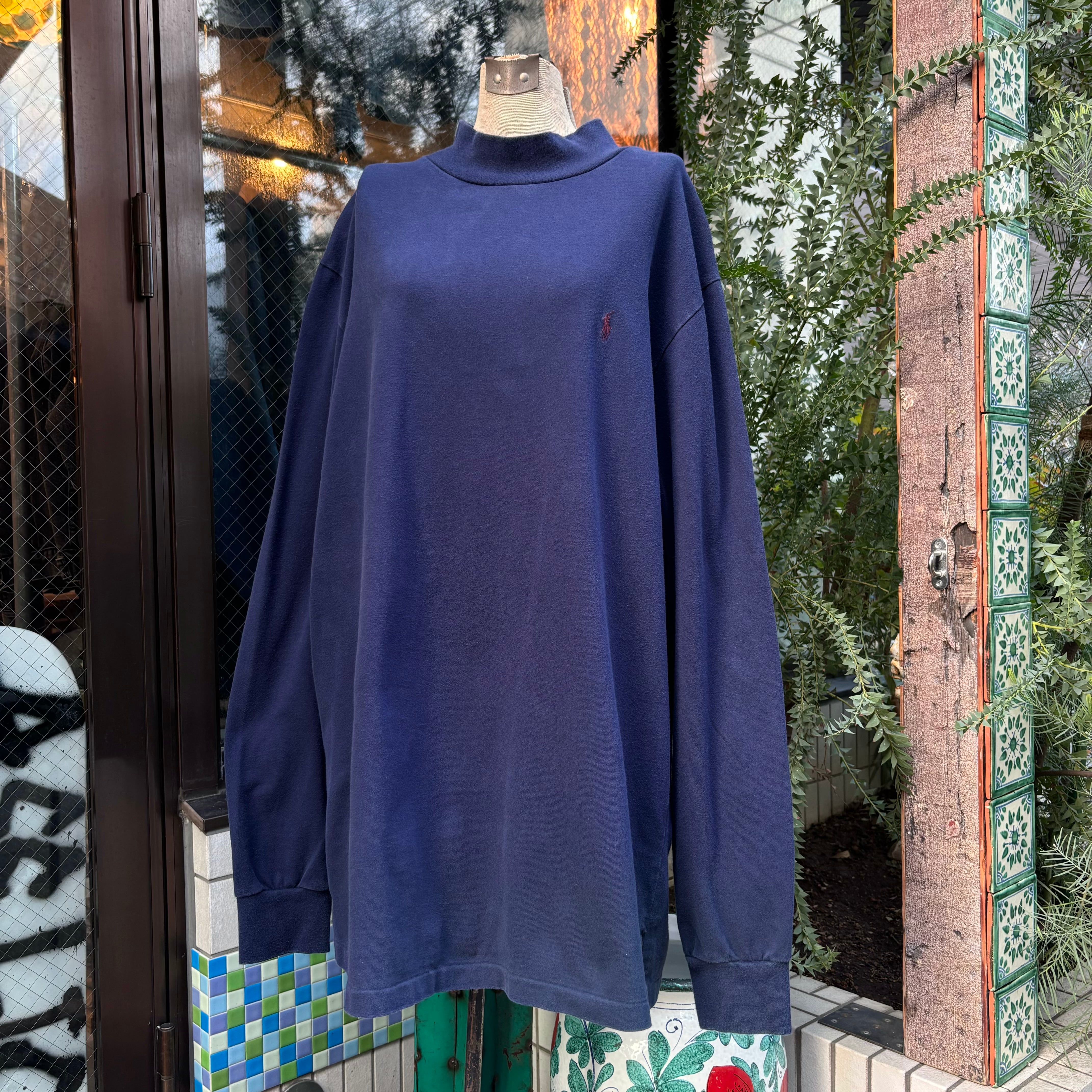 柔らかくスムースな肌触りのコットン素材。ゆとりのあるリラックスフィット。褪せたネイビーに、ワインレッドのポニー刺繍。裾にはスリット入り、モックネック仕様。高品質揃いのラルフの中でも隠れた名品です。
