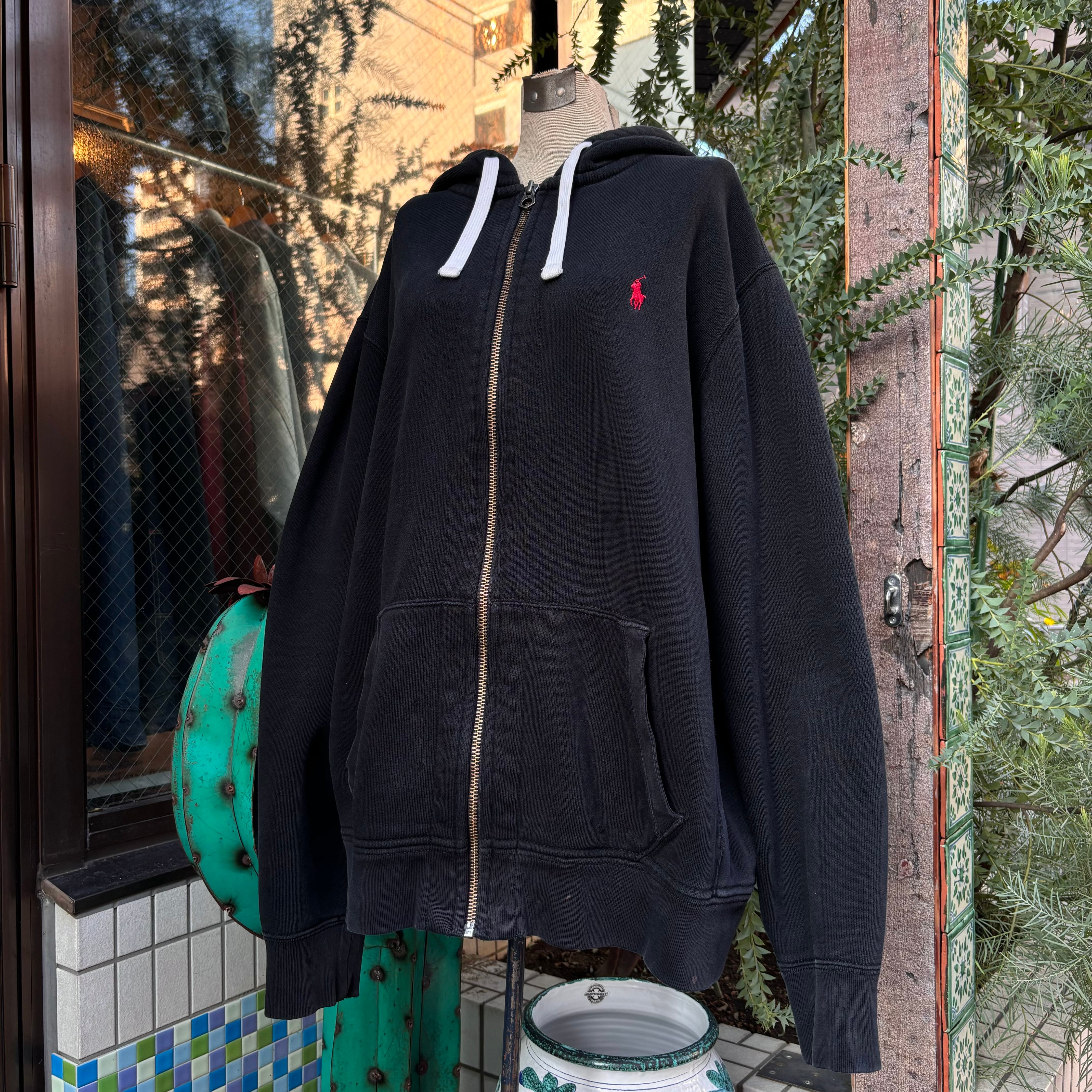 しっかりした厚みのコットン素材。ゆとりのある身幅に対して、丈は短めのシルエット。OLD感のある色褪せたブラックベースに、レッドのポニー刺繍。サイドにリブが付くリバースウィーブ仕様。大きめのフードの裏にはサーマル貼り。ドローコードの平紐や、ブラスジップなどとても上質なつくり。使い勝手間違いなしのラルフローレンの中でもおすすめの1着。