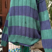しっかりとした厚みのあるコットンニット生地。程よく身幅にゆとりがあり、丈が短めのシルエット。自然な色落ち感が魅力のグリーン×ネイビーのボーダーカラー。リブまでしっかり肉厚な素材感なのでお洒落感のある1着。