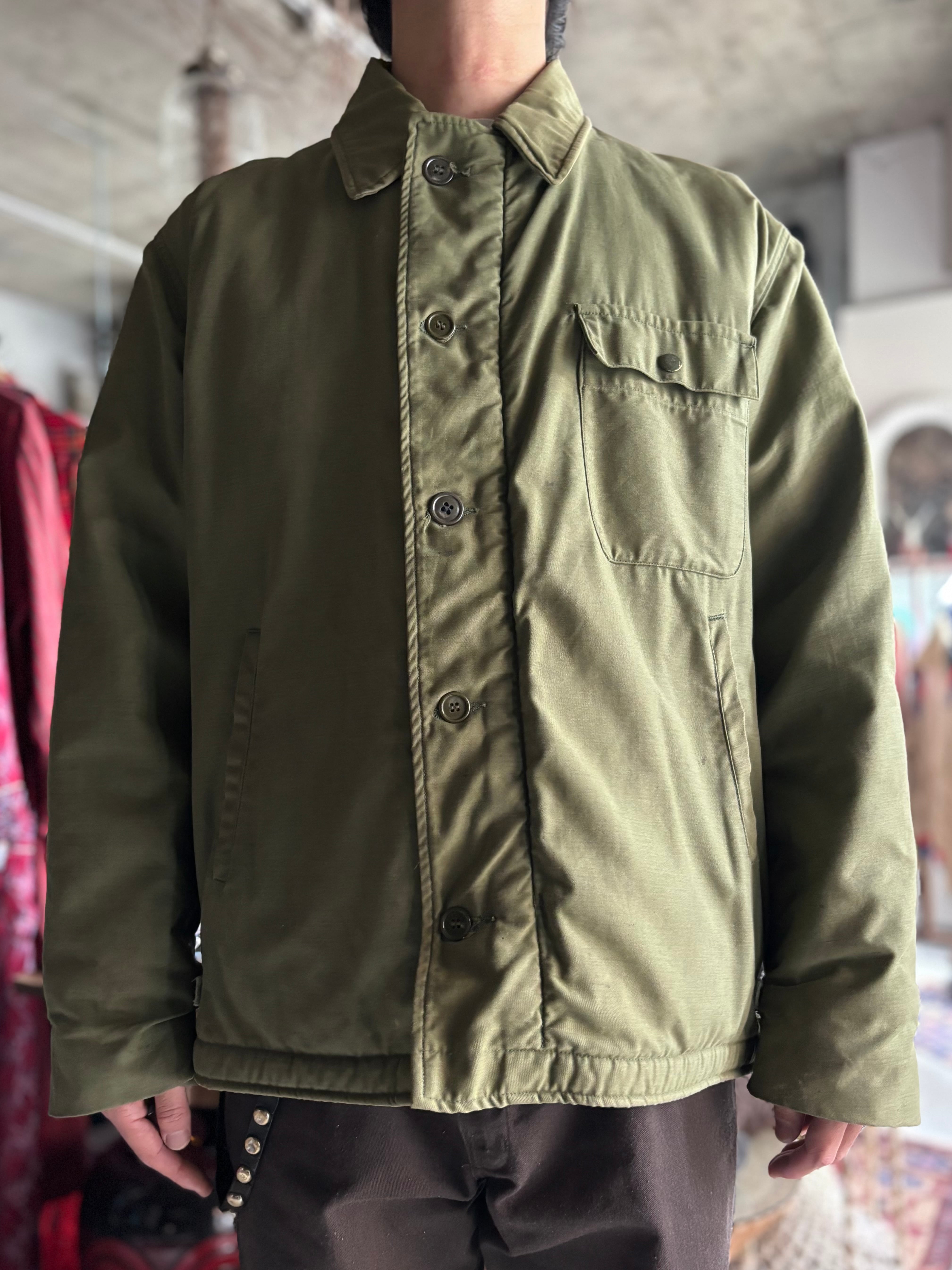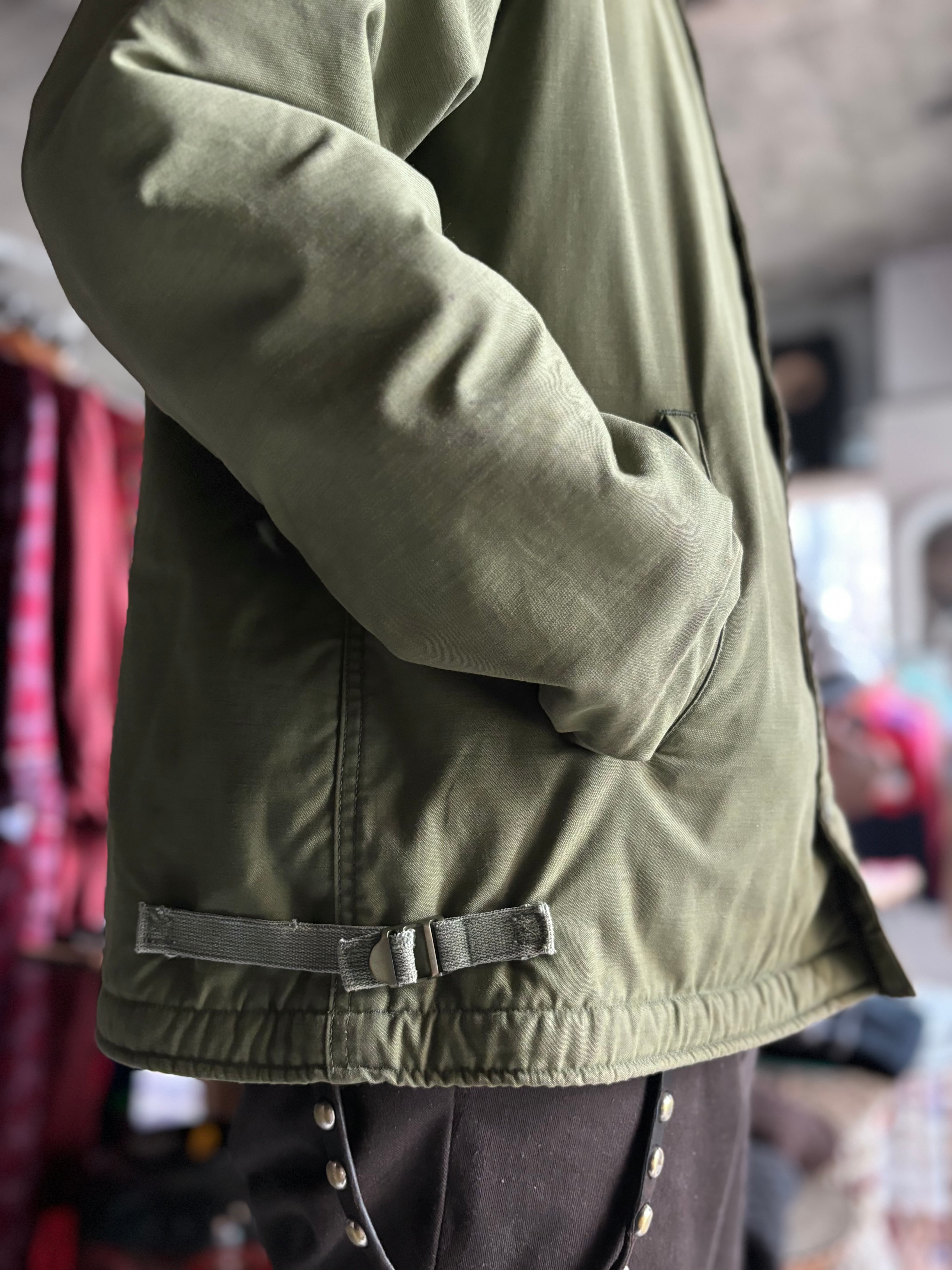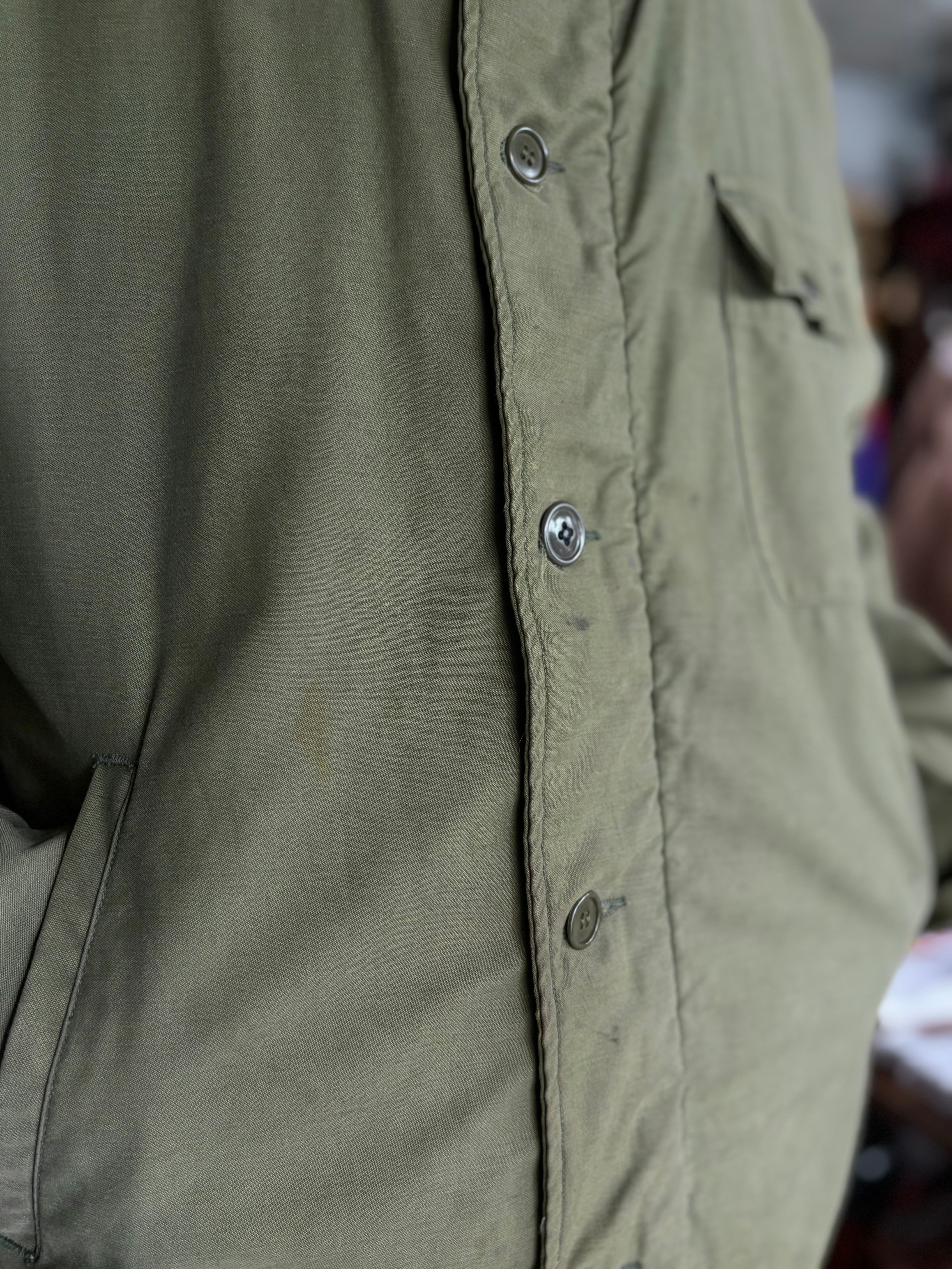 オリーブグリーンのサテン生地に、内側はフリースライナー仕様。使用感はあるもののフロントジップ、アジャスターなどがオリジナルで残るコンディション。1972年製。ミリタリーアウターの中でもタウンユースし易いモデルです。