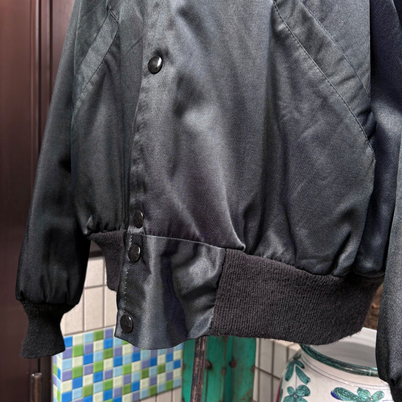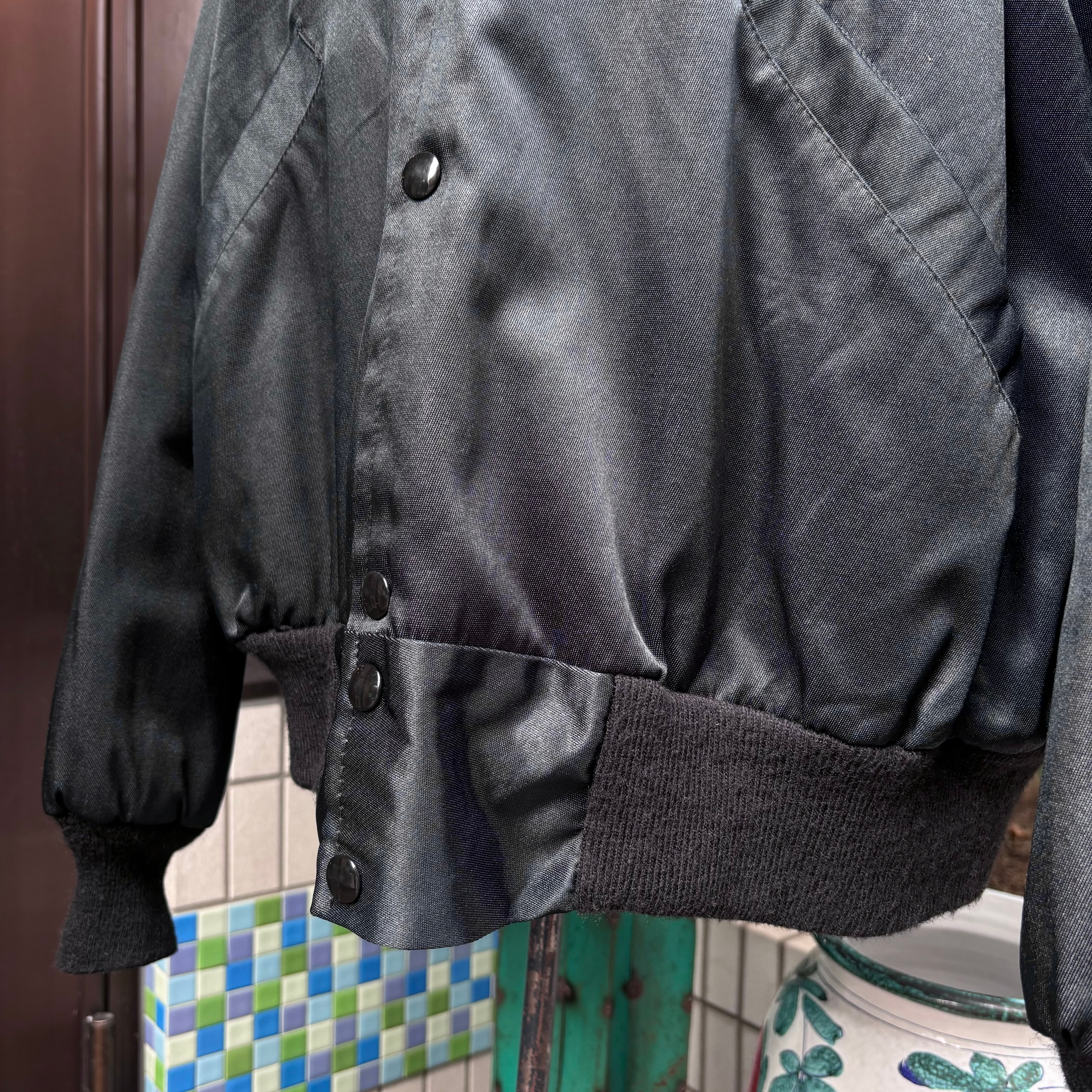 分厚く鈍い光沢感のあるレーヨンナイロン生地に、内側にはキルティングの中綿仕様。ルーズなオーバーサイズシルエット。星条旗タグのOLD感のあるボディ。胸に消防関連と思われる刺繍入り。内側両サイドにポケット付。スタンダードなワークジャケットスタイルながら着用時の雰囲気抜群のおすすめの1着。カッコいいです。