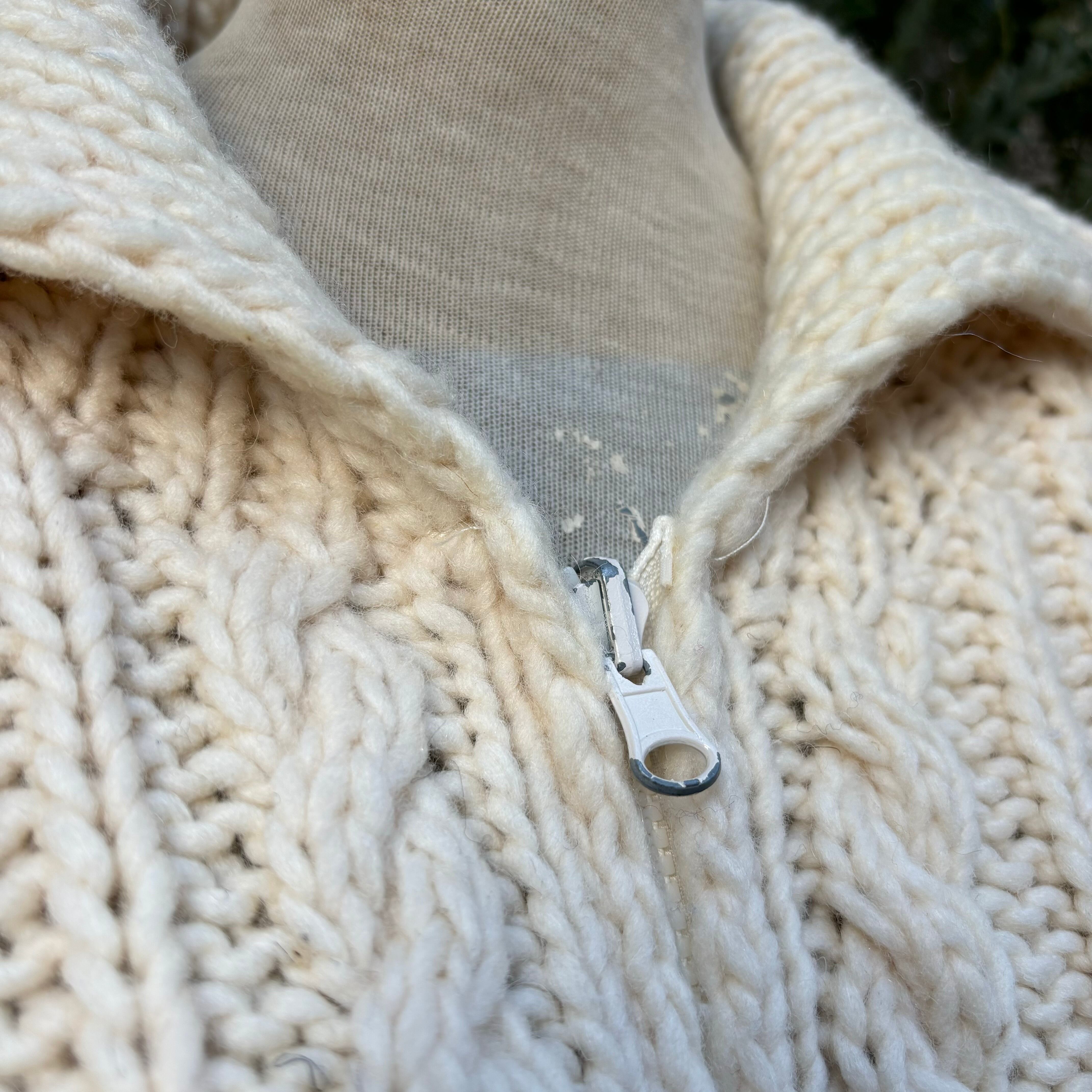 丈夫で暖かい太めのウール糸。ゆとりのあるリラックスフィット。ナチュラルな印象のオフホワイトカラー。クラシカルなアランニットパターン。近年、注目度の上がってきているエクアドルニット。羽織りやすいルーズフィットにざっくりしたカジュアルな雰囲気は準アウターとして使い勝手間違いなし。