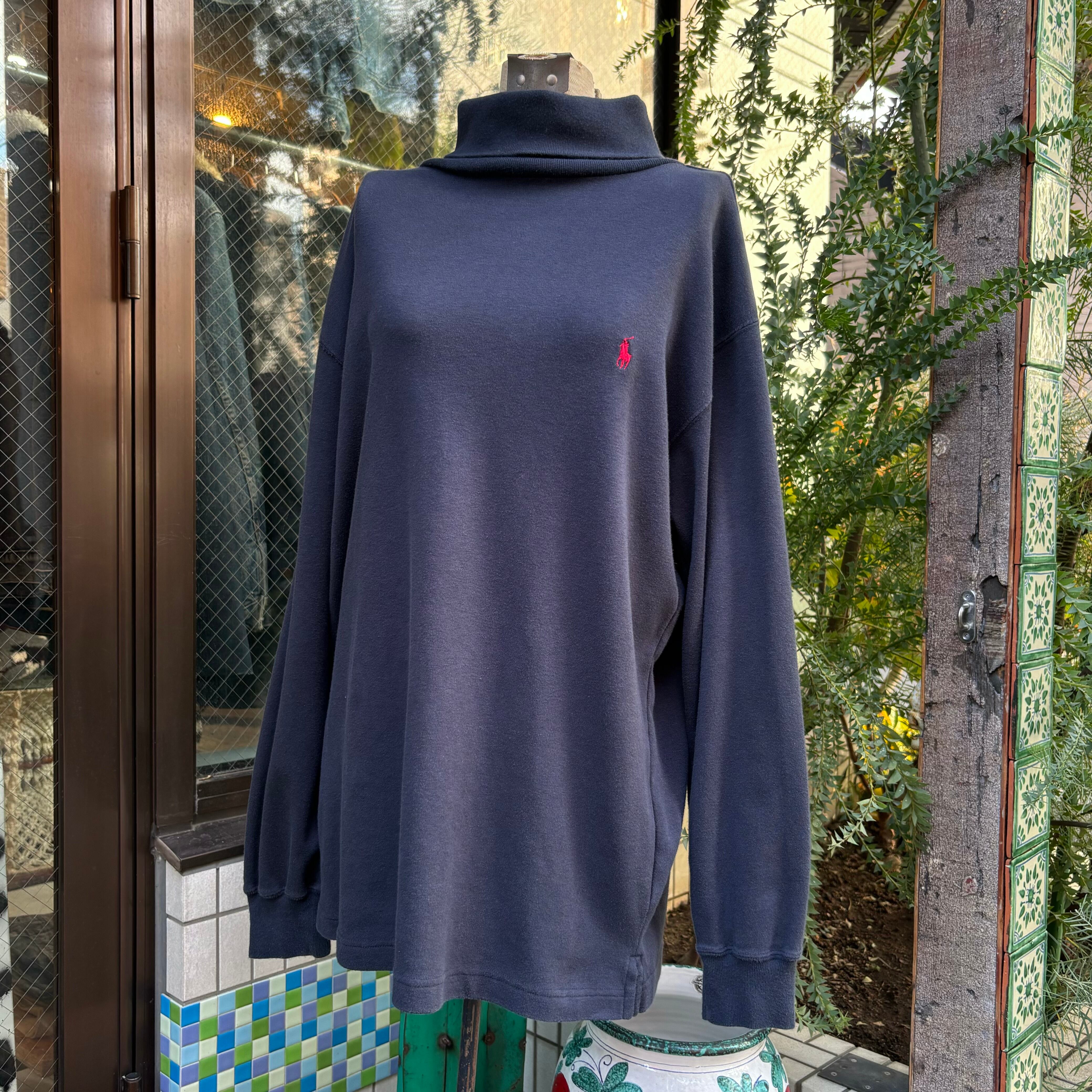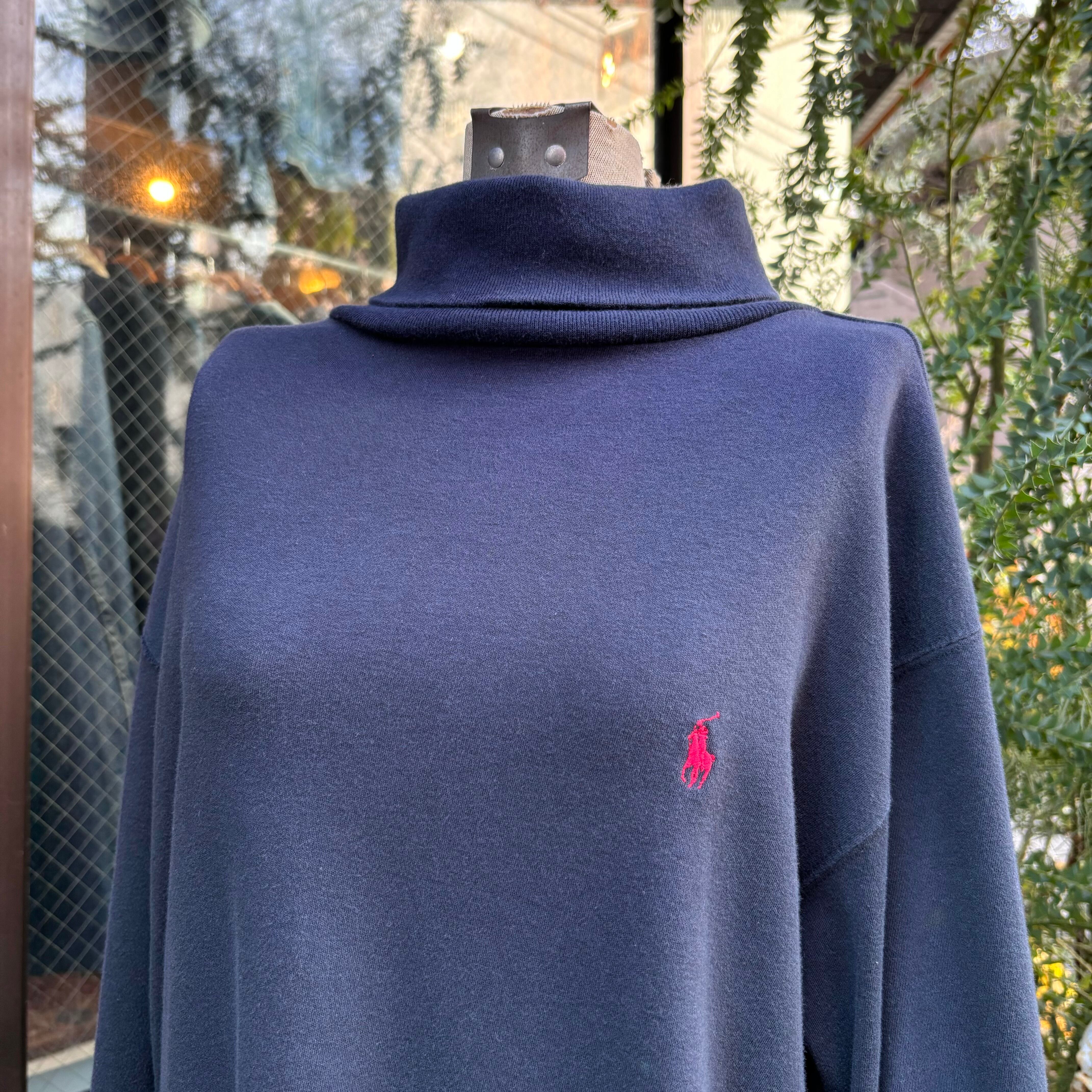 柔らかくスムースな肌触りのコットン素材。程よくゆとりのあるシルエット。褪せたブラックに、レッドのポニー刺繍。裾にはスリット入り、タートルネック仕様。USAメイドのOLD高品質モデル。揃いのラルフの中でも隠れた名品です。
