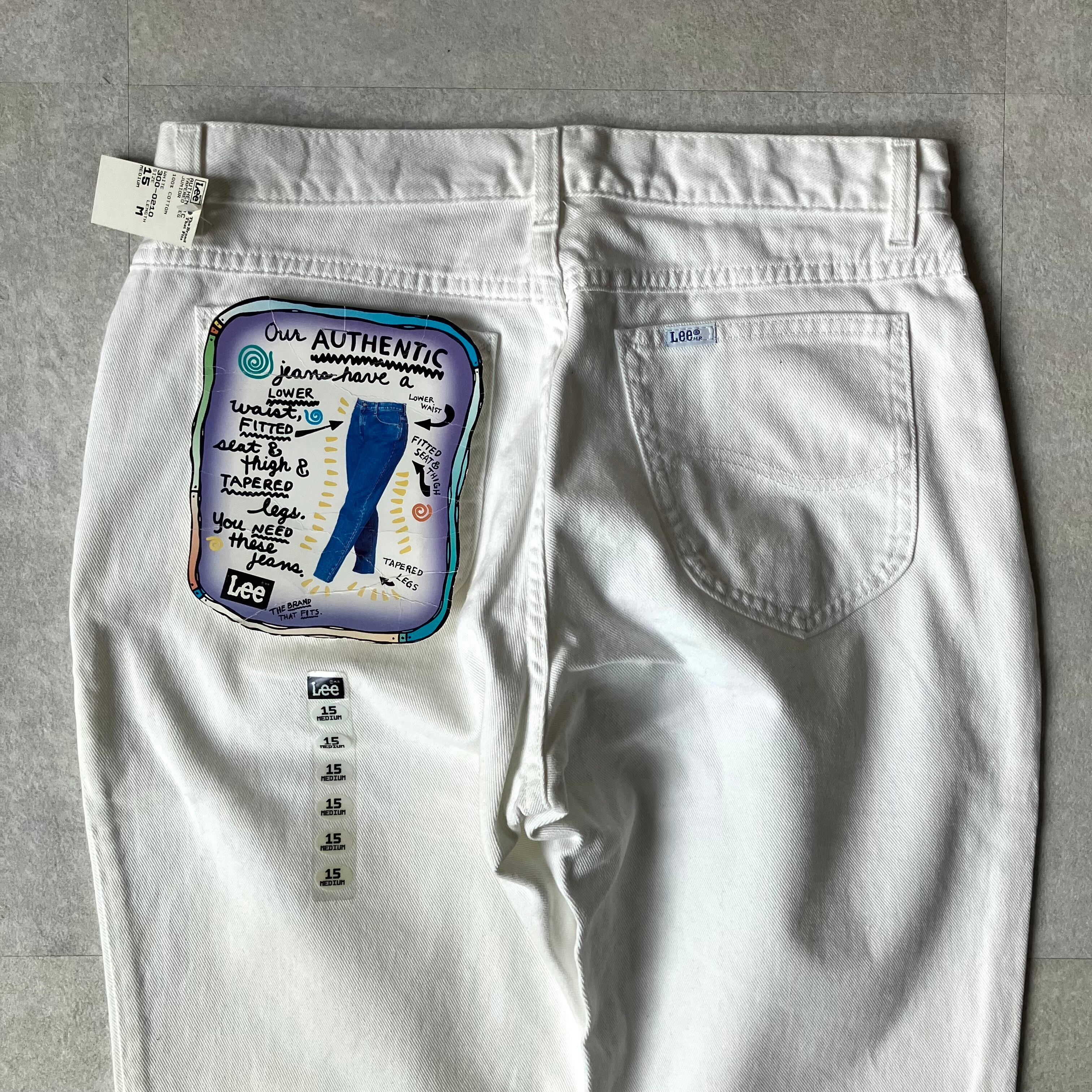 厚手のホワイトデニム。ゆとりのある股上に、短めレングスのテーパードシルエット。フラッシャーの残る希少なDEAD STOCK。USAメイドのビンテージモデル。レディース規格なので腰回りにゆとりがあり、履き心地抜群です。トップスが引き立つシルエットのおすすめパンツ。