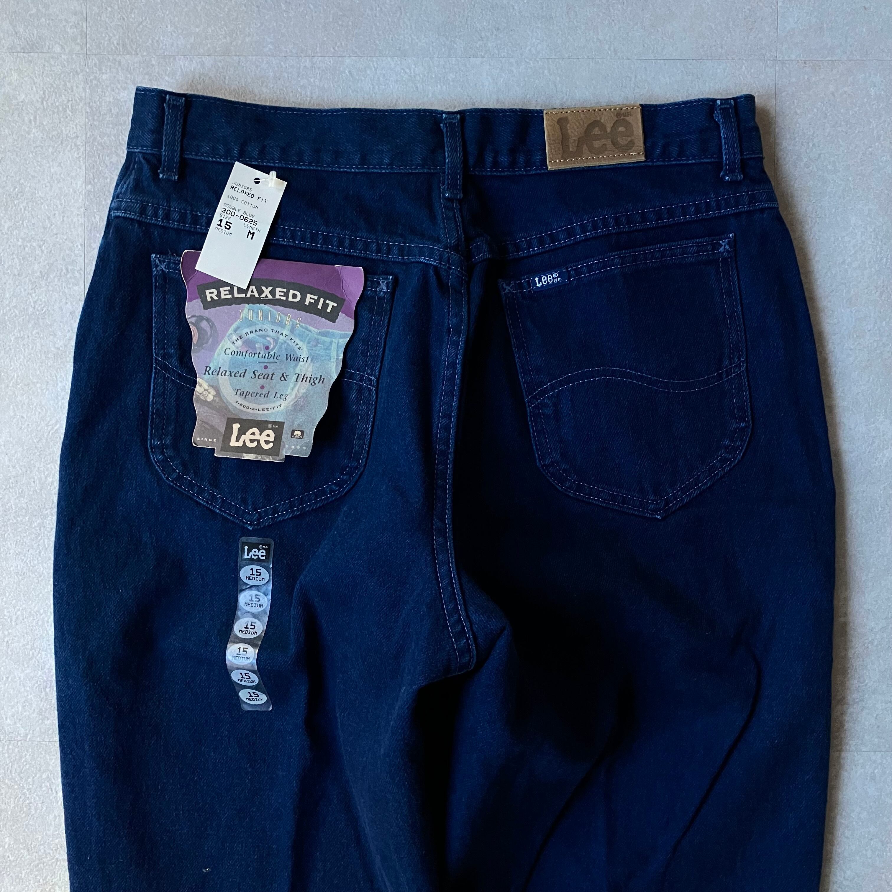 ネイビーカラーの厚手のカラーデニム。ウォッシュド加工が入ったやわらかめの生地感。ゆとりのある股上に、短めレングスのテーパードシルエット。フラッシャーの残る希少なDEAD STOCK。USAメイドのビンテージモデル。レディース規格なので腰回りにゆとりがあり、履き心地抜群です。トップスが引き立つシルエットのおすすめパンツ。