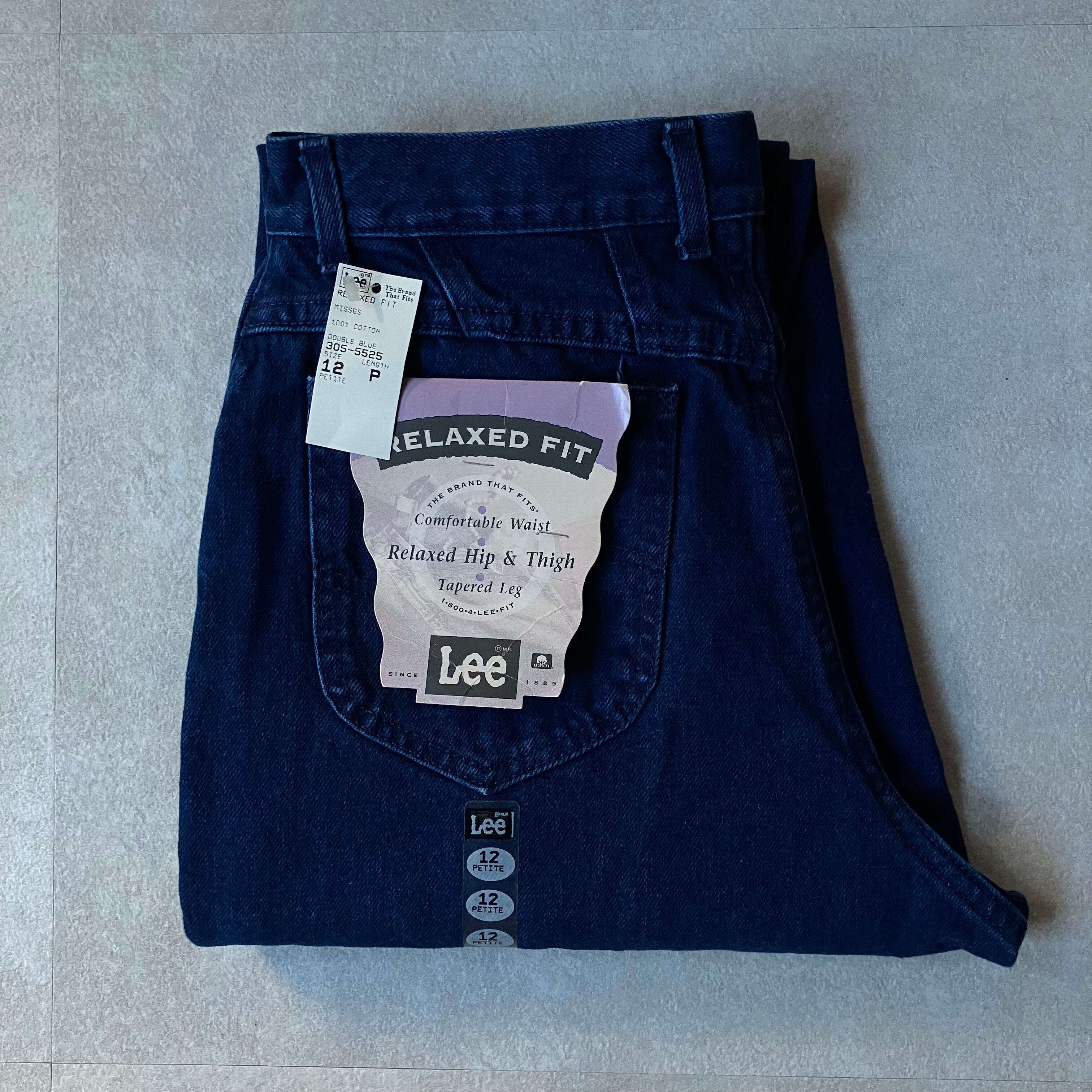 ネイビーカラーの厚手のカラーデニム。ウォッシュド加工が入ったやわらかめの生地感。ゆとりのある股上に、短めレングスのテーパードシルエット。フラッシャーの残る希少なDEAD STOCK。USAメイドのビンテージモデル。レディース規格なので腰回りにゆとりがあり、履き心地抜群です。トップスが引き立つシルエットのおすすめパンツ。