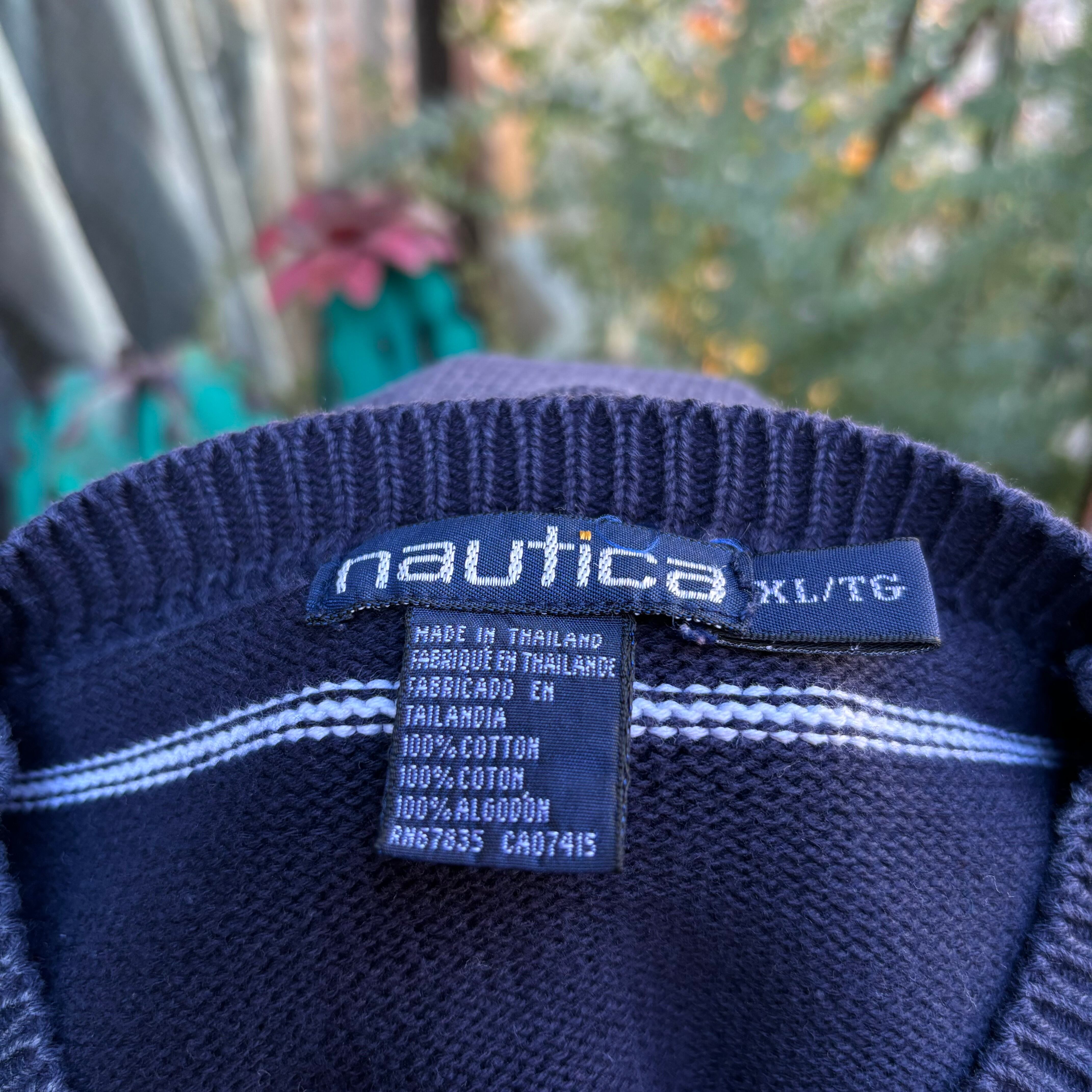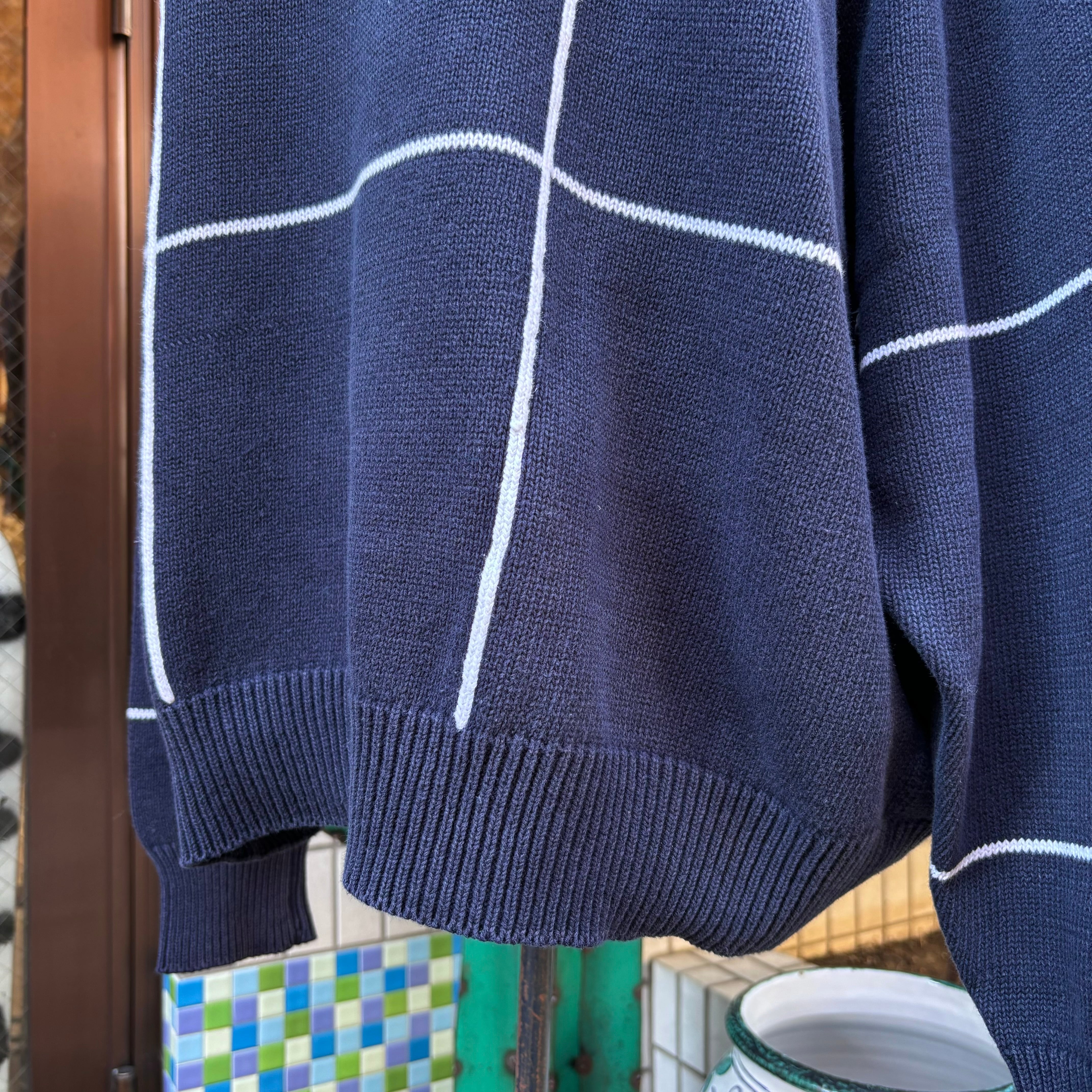 肉厚なコットンニット素材。ゆとりのあるリラックスフィット。着丈と身幅のバランスが変わらない正方形シルエット。クラシカルなネイビー×ホワイトのカラーリング。ネックに編み変え入り。カジュアルながら上品さのあるおすすめニット。