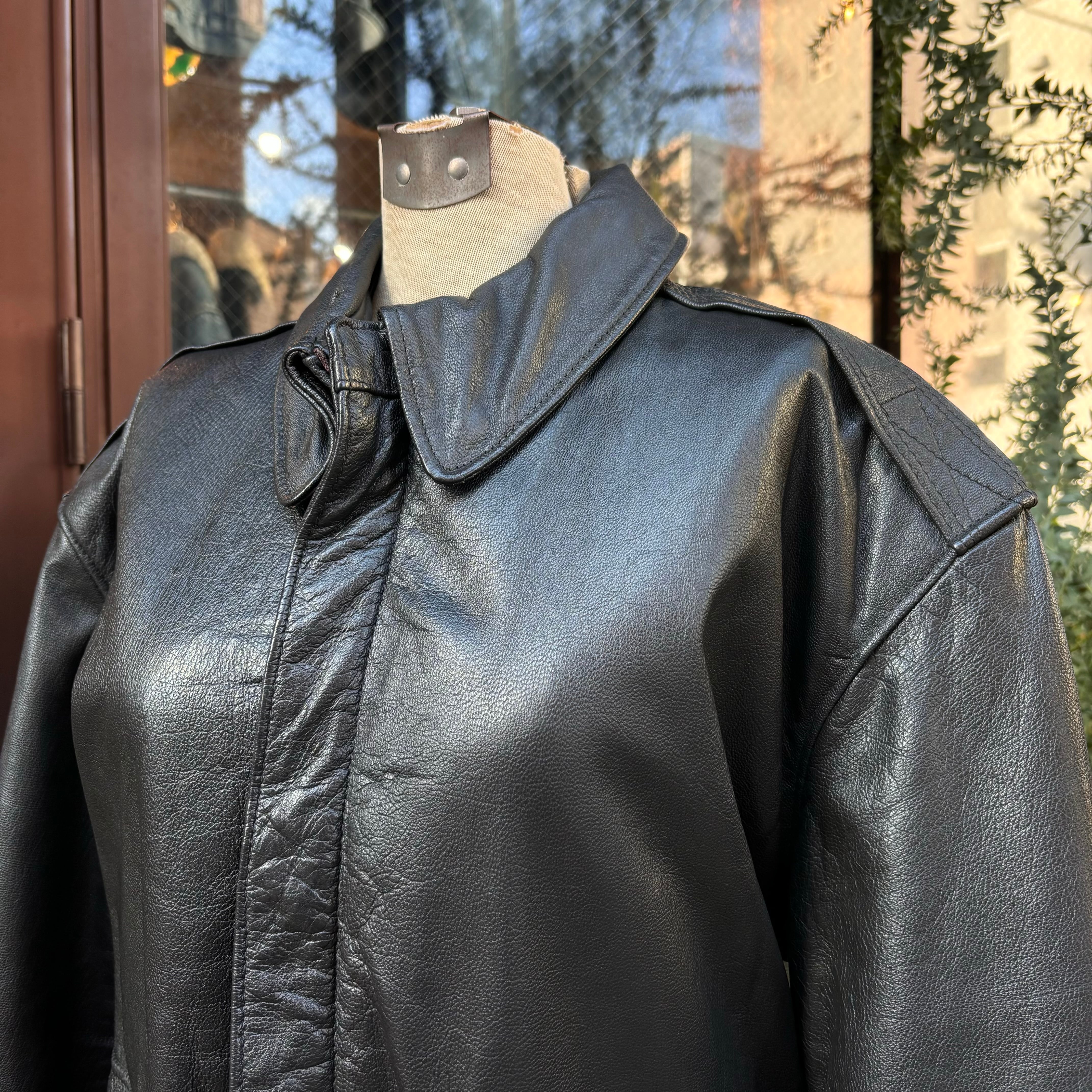 やわらかく着心地の良いゴートスキン。中綿にシンサレート入り。USAメイドのビンテージL.L.ビーン。クラシカルなA-2スタイル再現したモデル。ダメージの無いウール100%のリブ、レザーのプルタブも残る全体的に綺麗なコンディション。抜群のOLD感と、快適な着心地を両立したおすすめの1着。
