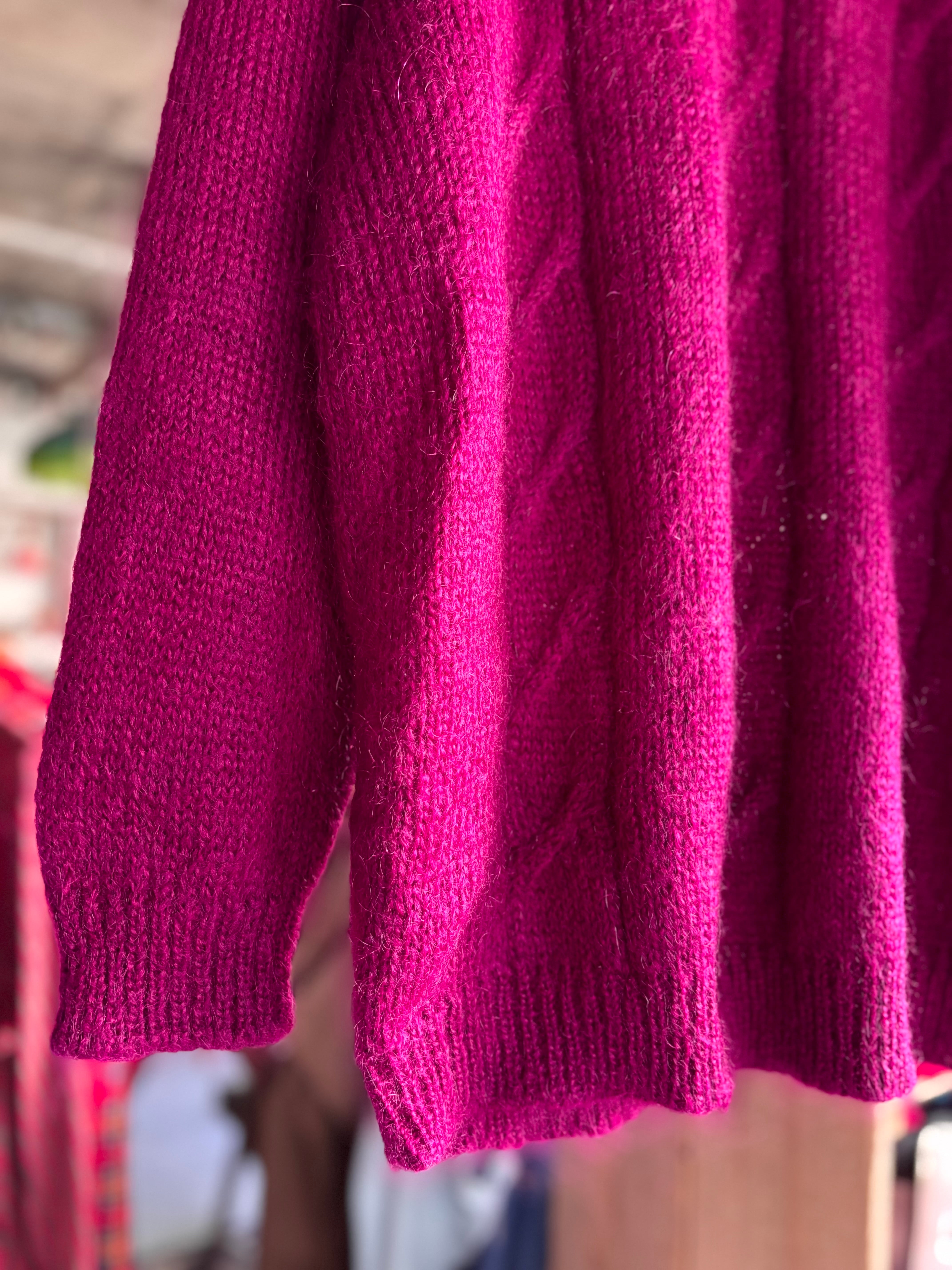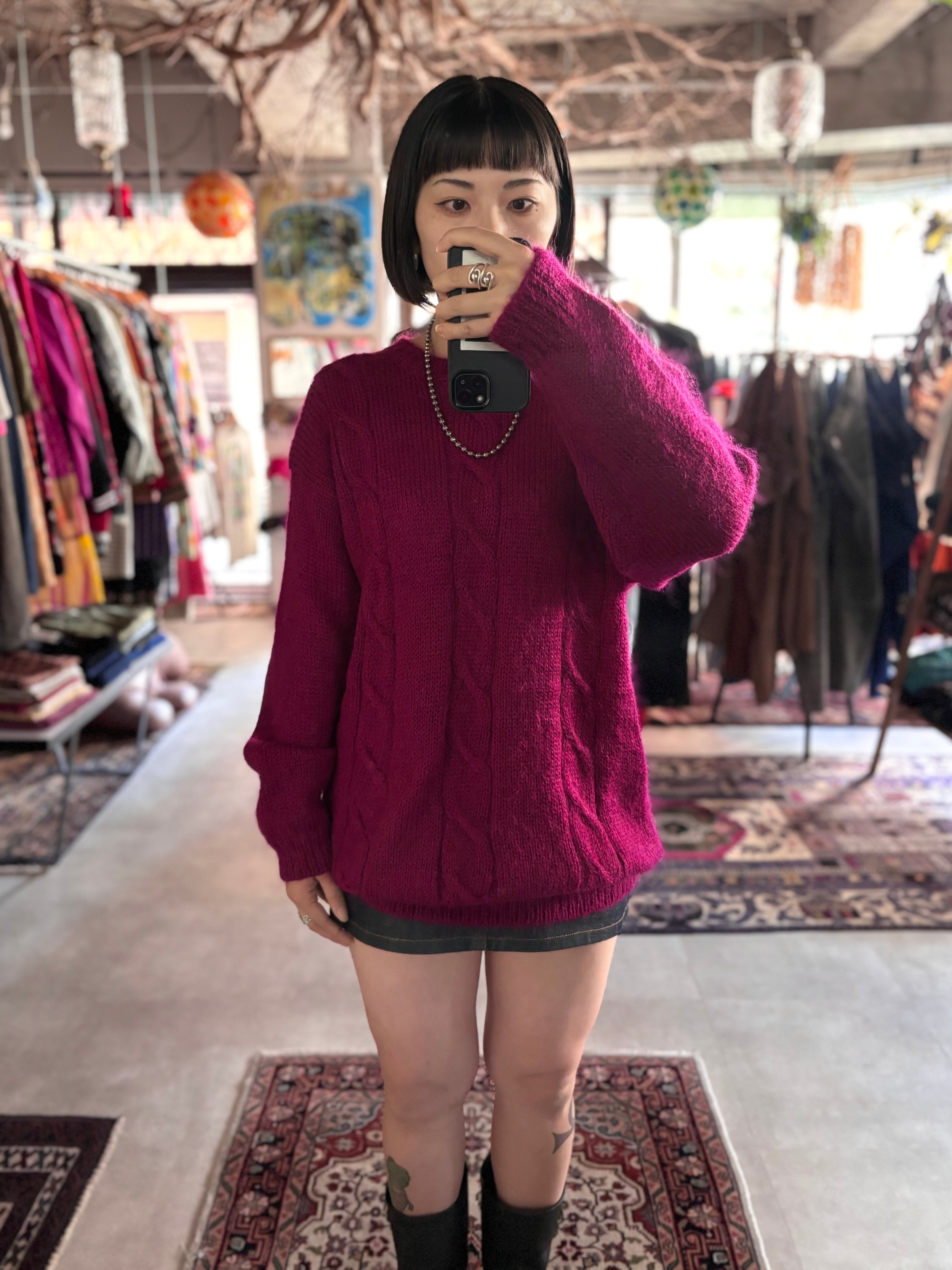 柔らかく軽い着心地のモヘアミックス素材。程よくゆとりのあるシルエット。トップスとしても、インナーとしても映えるお洒落感抜群のマゼンタカラー。ケーブルパターンの編み模様が入っていたりクラシカルな印象。素材、カラーリング、シルエットのバランスが良く、永く楽しめること間違いなしの大人ニットです◎
