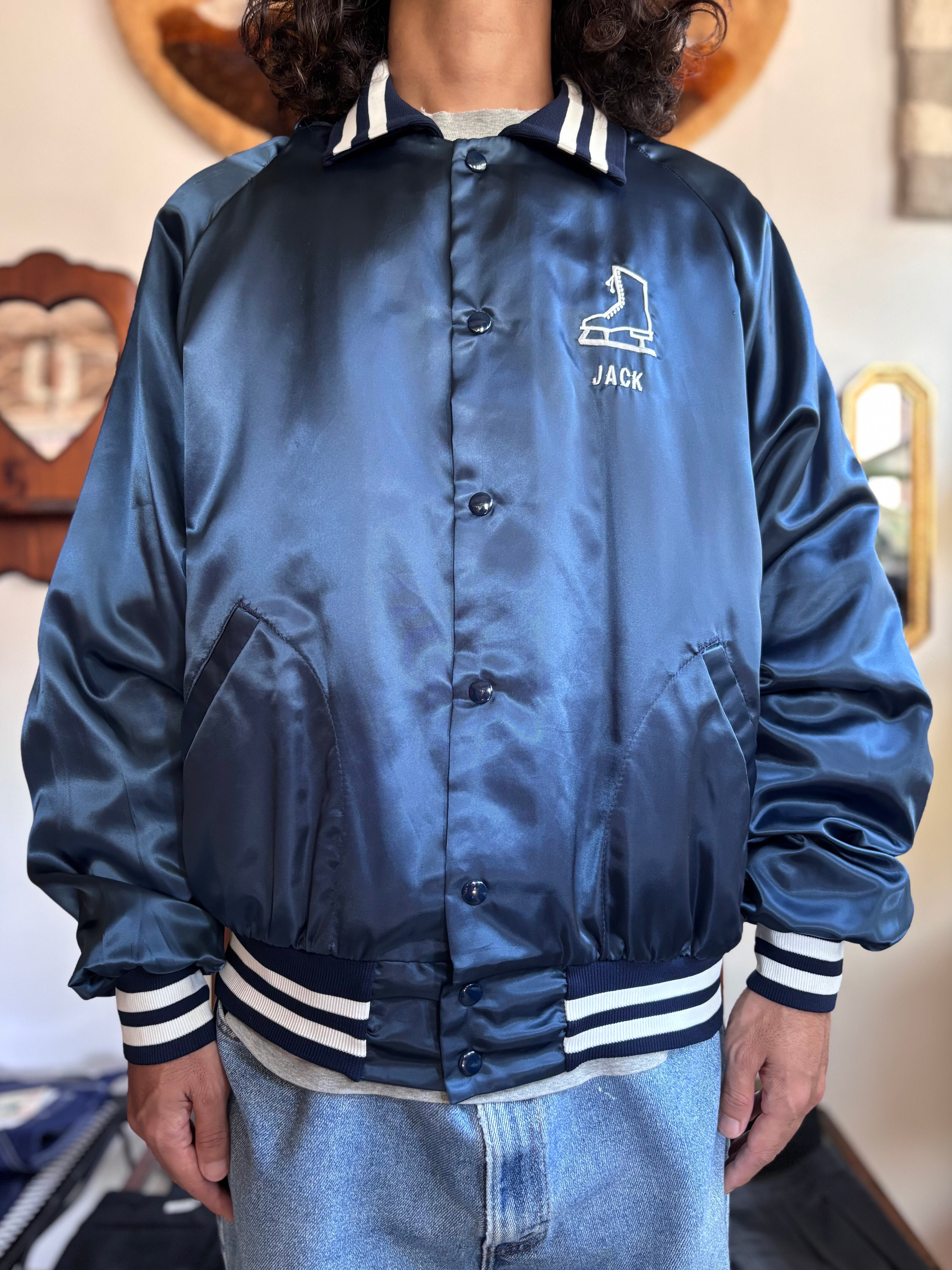 ナイロンシェルに、内側にはコットンフランネルのライナー。リラックスフィット。お洒落感のある配色の刺繍グラフィックに、可愛いリブ襟タイプ。USA製のOLDボディ。サテン生地の綺麗さが際立つ良好なコンディション。