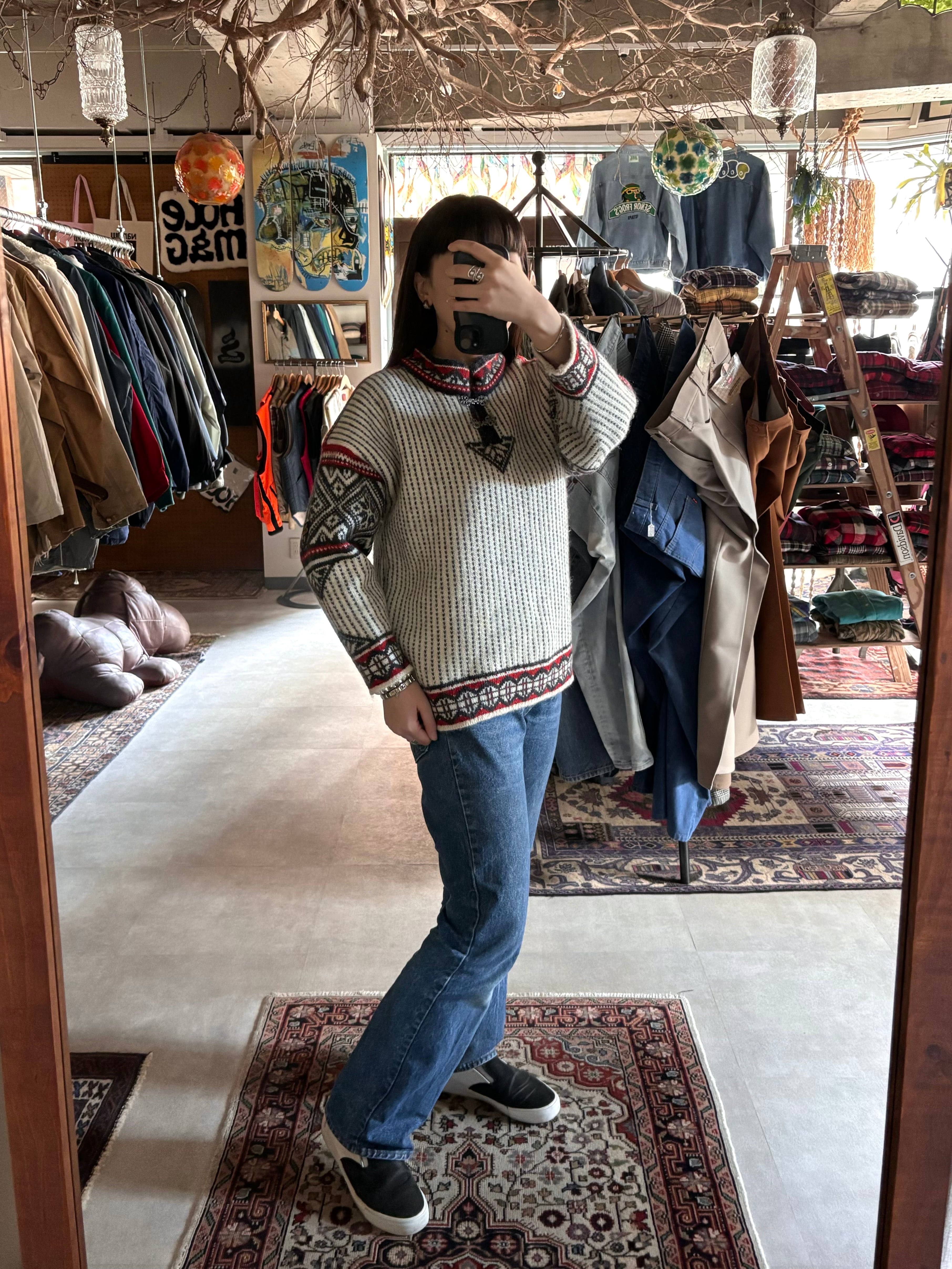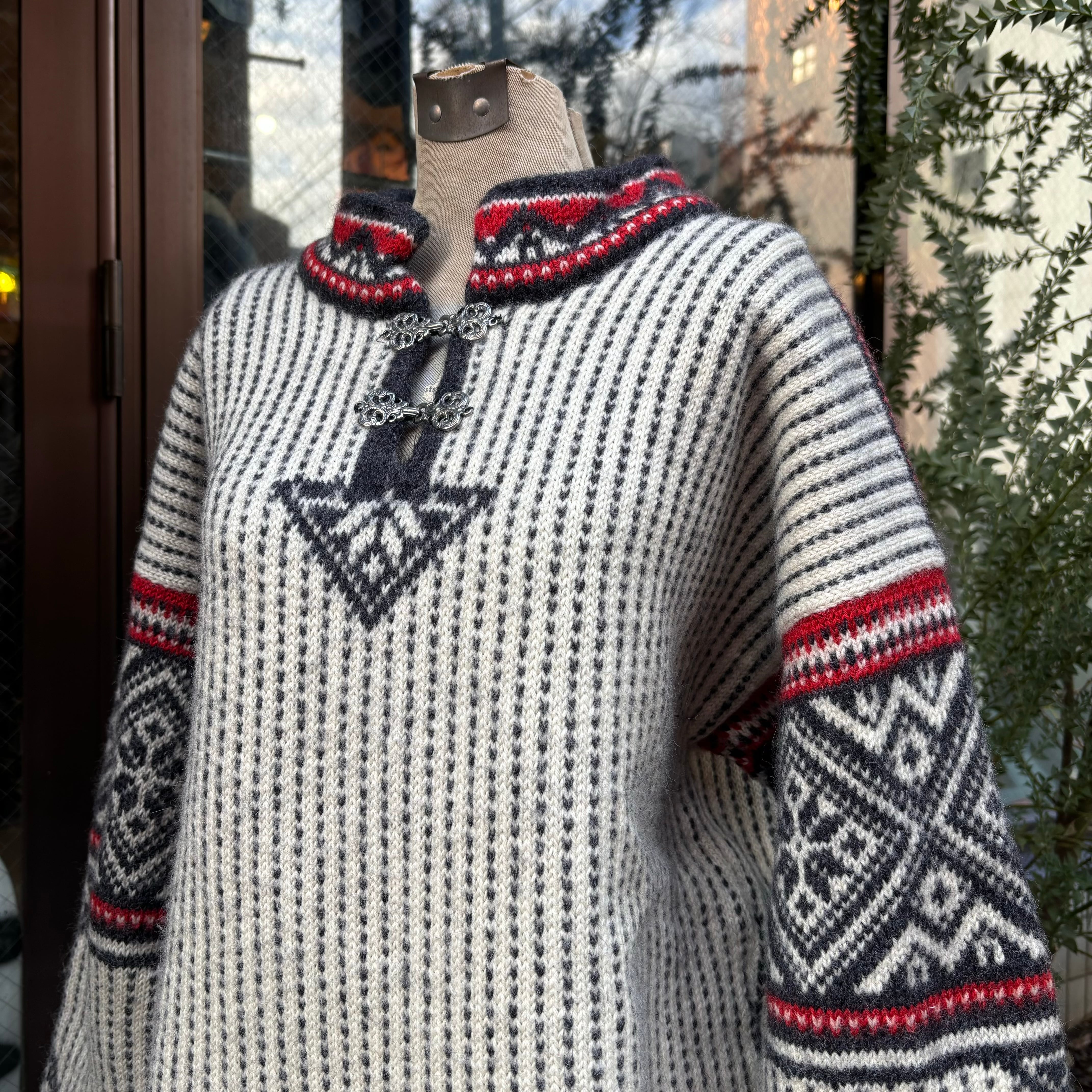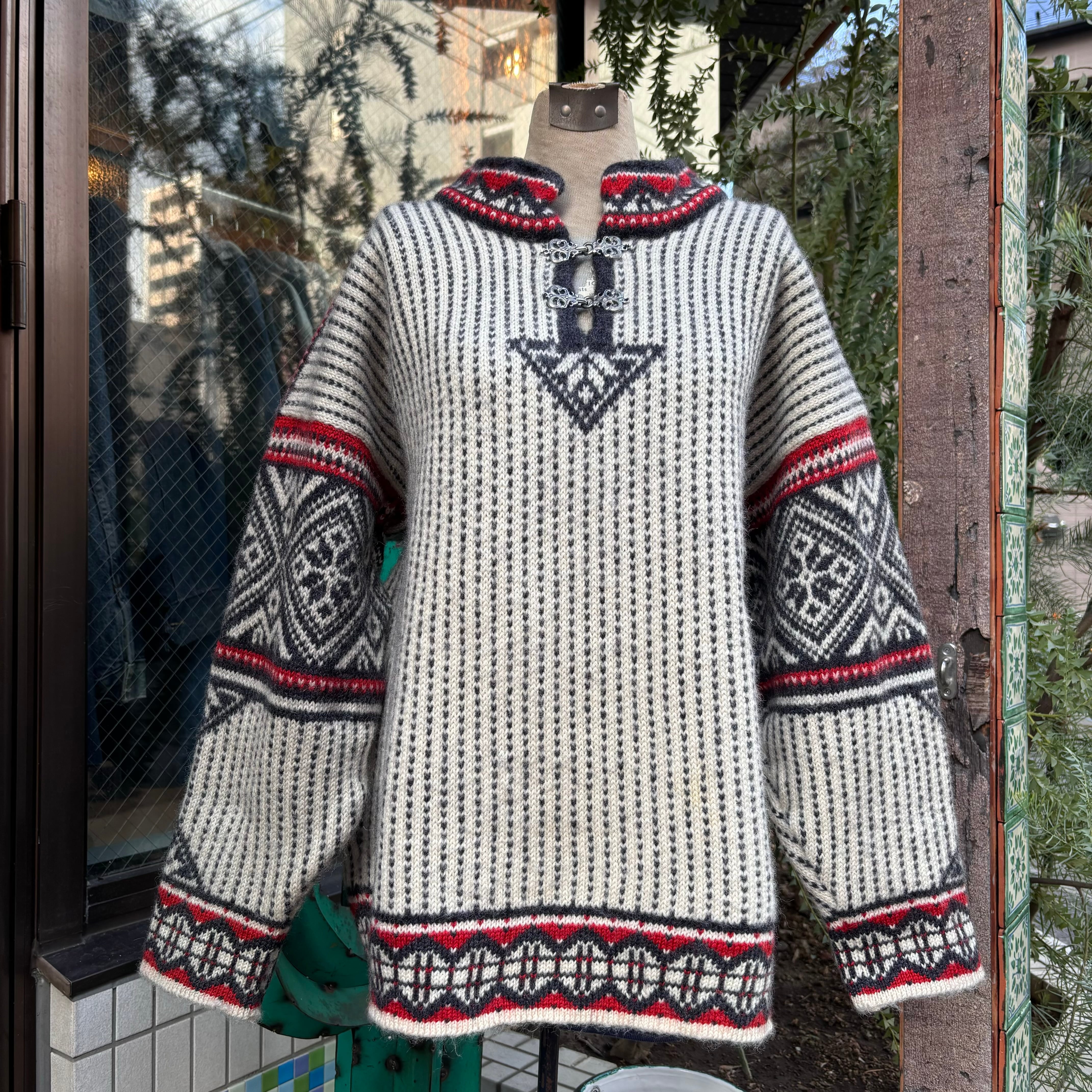 しっかりした厚みのウール素材。程よくゆとりのあるシルエット。幻想的な編み柄に、存在感のあるメタルフックタイプ。老舗ブランドのDALE OF NORWAY製。毎年人気の理由も頷ける確かな品質とクラシカルな雰囲気が魅力の優秀ニット。